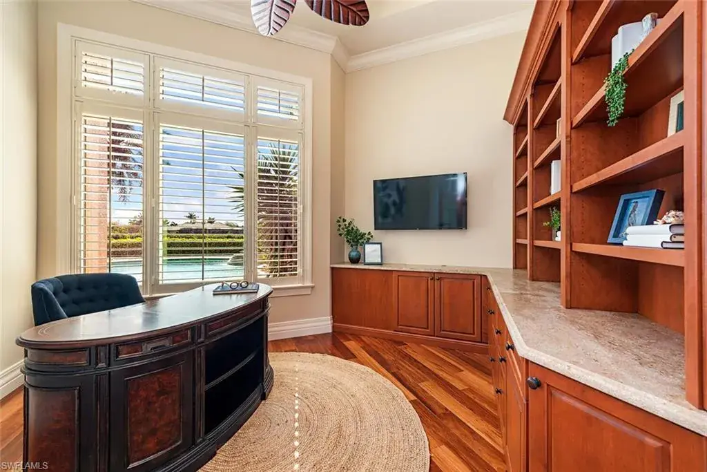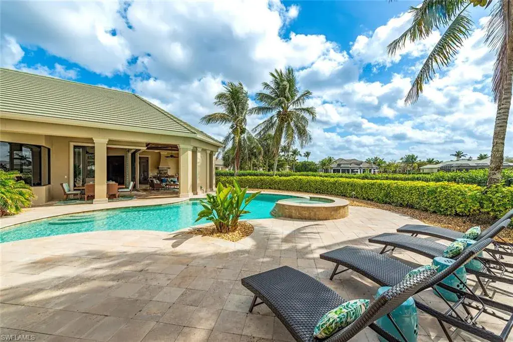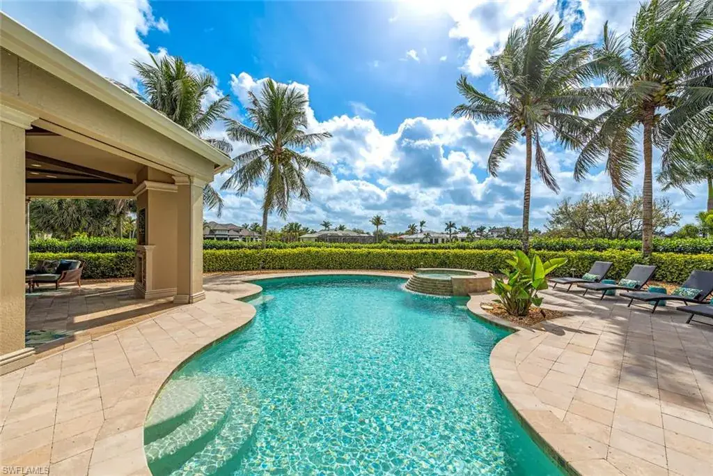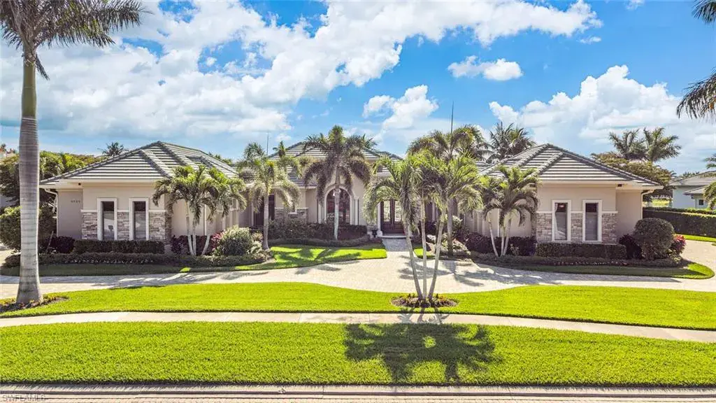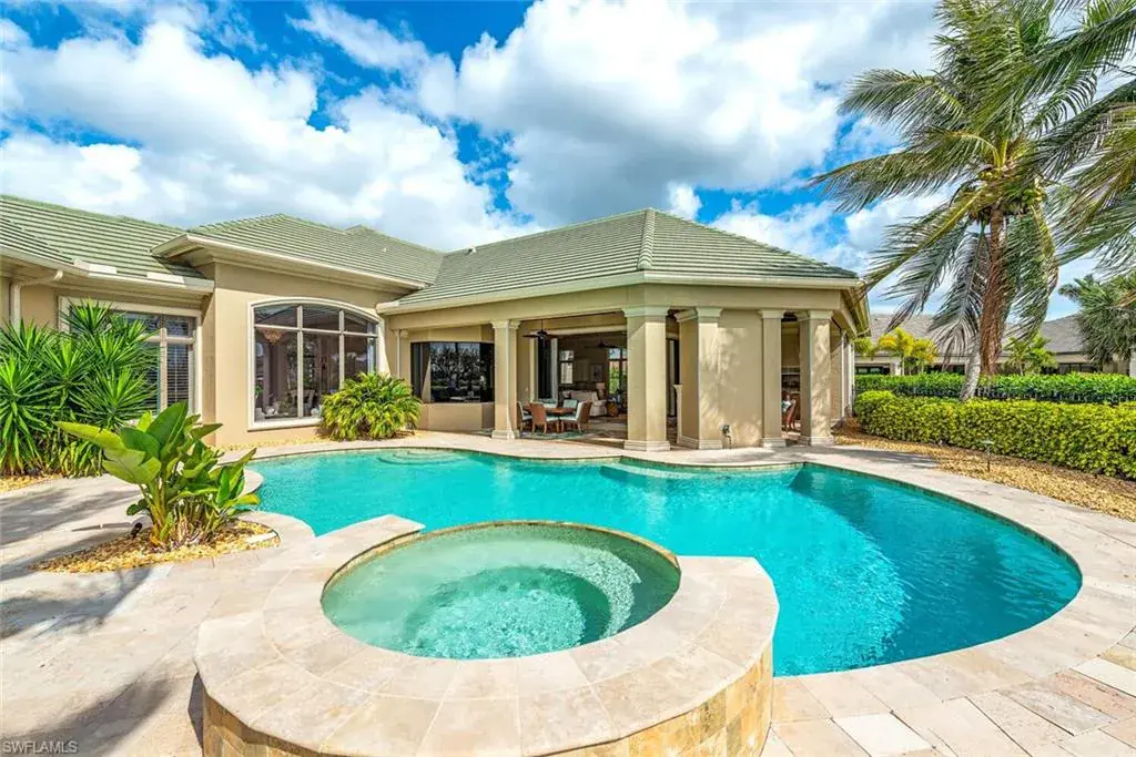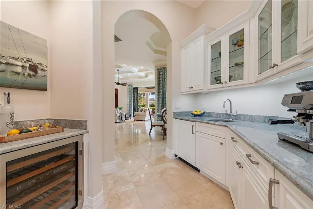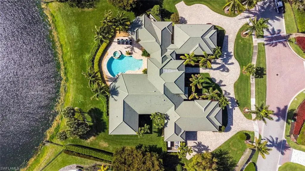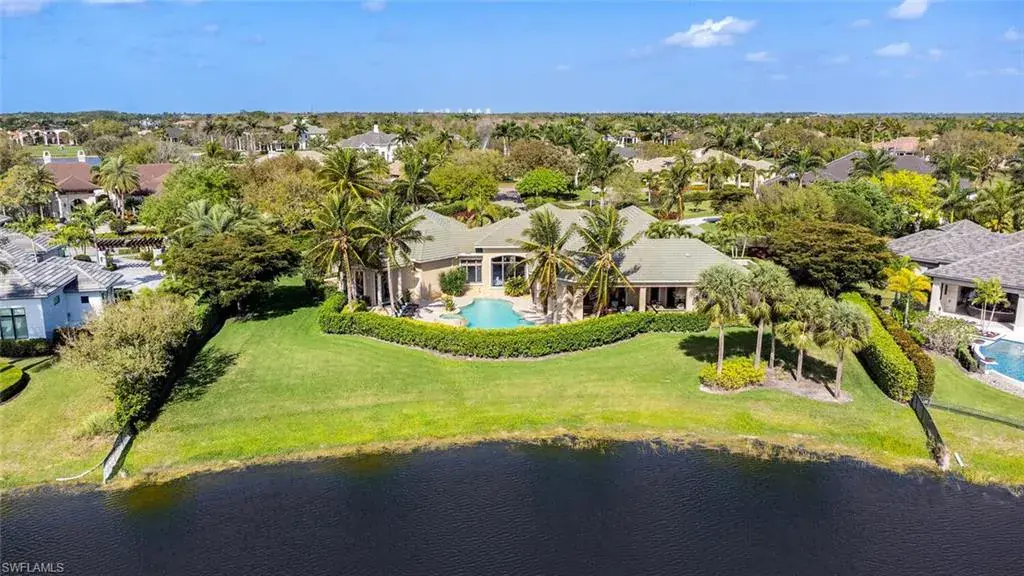 Transferrable House Membership included and Quail West’s new Resident Golf Member-in-Waiting Membership category is available and waitlist is short. Experience unmatched luxury living in this estate home built by McGarvey Custom Homes in 2013, nestled within the prestigious enclave of Quail West. Occupying a expansive 0.82-acre lot on a quiet street, this residence offers captivating water views and spans 4,758 square feet of living space on a single level. This spacious home includes 5 bedrooms with walk-in closets and 5 en-suite bathrooms, a study, nearly 850 square feet of outdoor covered lanai living space, air-conditioned garage parking for 4 cars and a fabulous custom pool and spa. The gourmet kitchen is open to the indoor and outdoor living areas and features a Wolf gas cooktop, double wall ovens, Sub-Zero refrigerator, a pantry, an island with a prep sink, a large bar for ample seating. The adjacent butler’s pantry offers a wine cooler, beverage fridge, ice maker and prep sink. Designed for year-round enjoyment, the expansive covered lanai features an outdoor gas fireplace, a beautifully crafted ceiling, a top-tier full outdoor kitchen with a 36” Wolf grill, Sub-Zero fridge, prep sink and bar for your guests. Motorized screens and shutters around the lanai provide protection from the elements, while the heated pool and spa provide the perfect space for relaxation and southern exposure sun-soaked lounging. The spacious primary suite offers a sitting area with a bay window, a tray ceiling, 2 custom walk-in closets and a spa-inspired bath. One of the 5 bedroom suites is a separate casita ideal for guests, accessed through the lanai and featuring lake views, a wet-bar, fridge and spacious bathroom with dual sinks. Highlights include soaring ceiling heights of 12’9 to 14’9 feet, floor-to-ceiling living room windows with pool and water views, a zero-corner pocket slider in the family room for seamless indoor-outdoor living, impact glass windows and doors throughout and a whole house generator. Other features include extensive crown molding, custom ceiling details, solid 8’ tall doors, in-ceiling speakers and wood planation shutters. Quail West offers a captivating lifestyle in an exquisite community with 36-holes of pristine Arthur Hills-designed championship golf, a 100,000 SF grand clubhouse that’s the hub of social activities with multiple dining options, an indoor lagoon-style Junior Olympic-sized pool and a rejuvenating full-service spa. The sports center area offers 8 clay hydro tennis courts, 4 pickleball courts, 4 bocce courts and a 2-story fitness & wellness building.