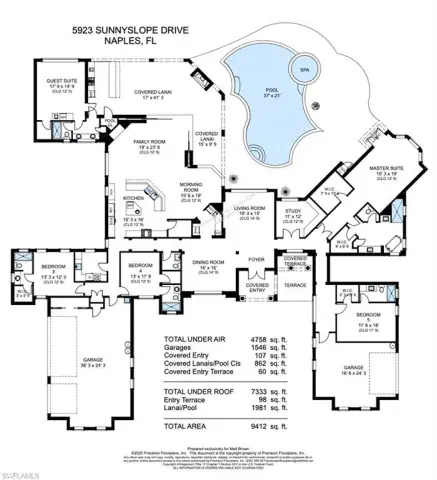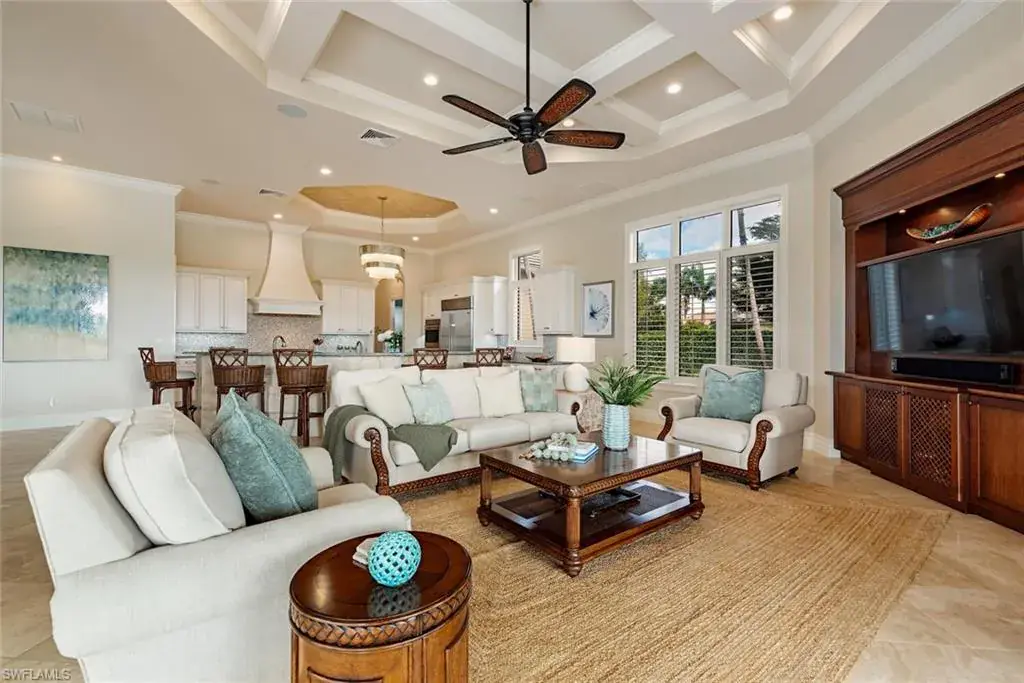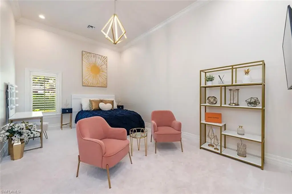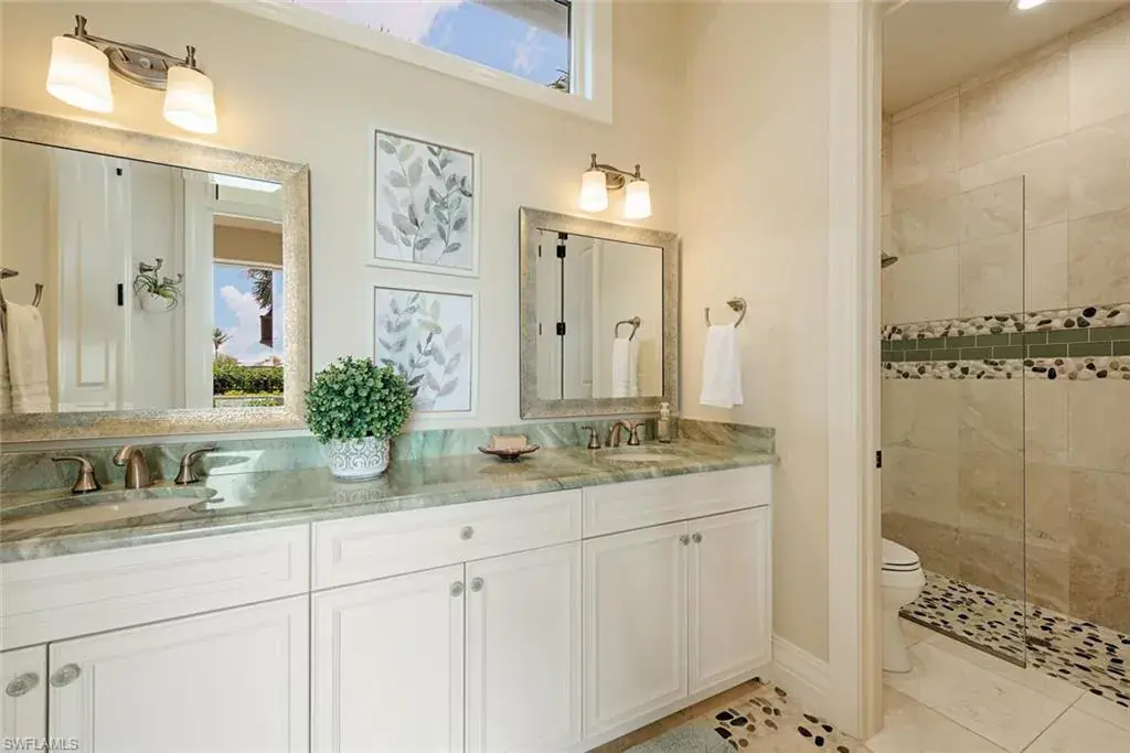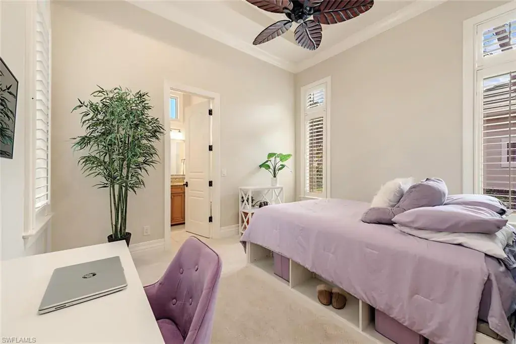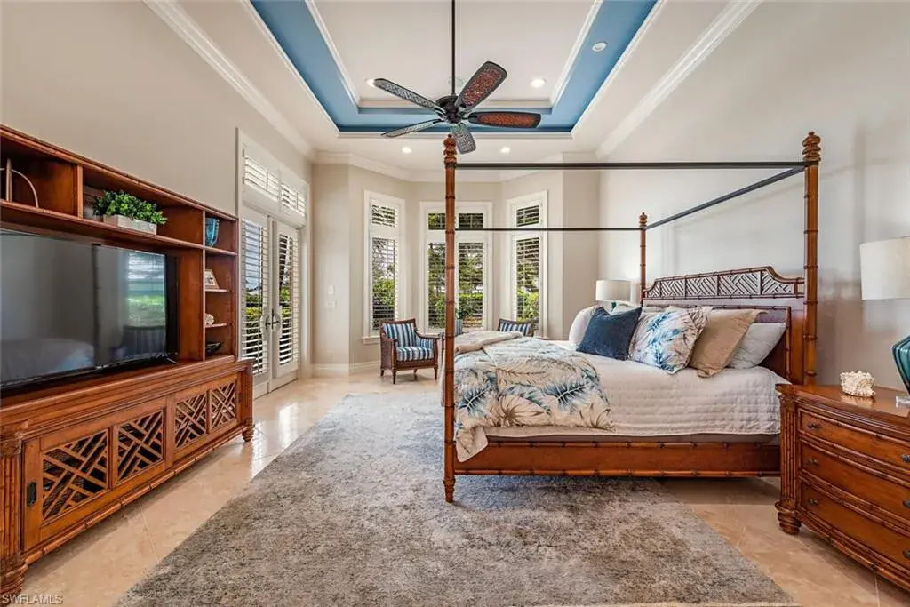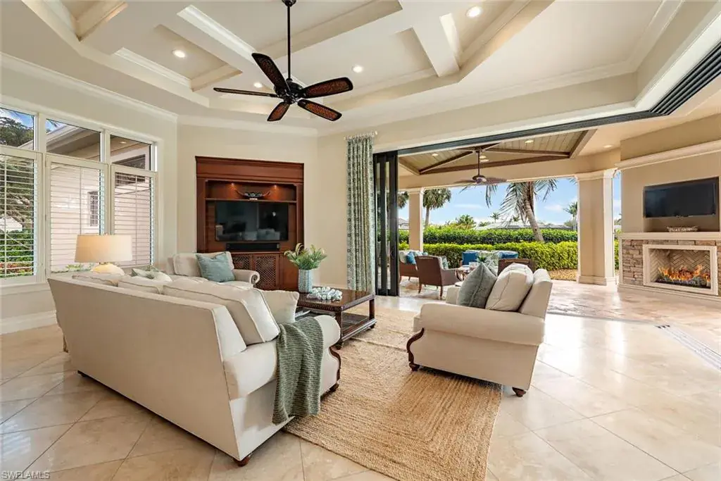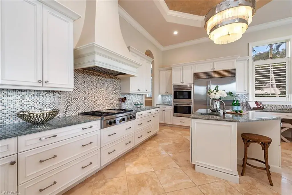 Transferrable House Membership included and Quail West’s new Resident Golf Member-in-Waiting Membership category is available and waitlist is short. Experience unmatched luxury living in this estate home built by McGarvey Custom Homes in 2013, nestled within the prestigious enclave of Quail West. Occupying a expansive 0.82-acre lot on a quiet street, this residence offers captivating water views and spans 4,758 square feet of living space on a single level. This spacious home includes 5 bedrooms with walk-in closets and 5 en-suite bathrooms, a study, nearly 850 square feet of outdoor covered lanai living space, air-conditioned garage parking for 4 cars and a fabulous custom pool and spa. The gourmet kitchen is open to the indoor and outdoor living areas and features a Wolf gas cooktop, double wall ovens, Sub-Zero refrigerator, a pantry, an island with a prep sink, a large bar for ample seating. The adjacent butler’s pantry offers a wine cooler, beverage fridge, ice maker and prep sink. Designed for year-round enjoyment, the expansive covered lanai features an outdoor gas fireplace, a beautifully crafted ceiling, a top-tier full outdoor kitchen with a 36” Wolf grill, Sub-Zero fridge, prep sink and bar for your guests. Motorized screens and shutters around the lanai provide protection from the elements, while the heated pool and spa provide the perfect space for relaxation and southern exposure sun-soaked lounging. The spacious primary suite offers a sitting area with a bay window, a tray ceiling, 2 custom walk-in closets and a spa-inspired bath. One of the 5 bedroom suites is a separate casita ideal for guests, accessed through the lanai and featuring lake views, a wet-bar, fridge and spacious bathroom with dual sinks. Highlights include soaring ceiling heights of 12’9 to 14’9 feet, floor-to-ceiling living room windows with pool and water views, a zero-corner pocket slider in the family room for seamless indoor-outdoor living, impact glass windows and doors throughout and a whole house generator. Other features include extensive crown molding, custom ceiling details, solid 8’ tall doors, in-ceiling speakers and wood planation shutters. Quail West offers a captivating lifestyle in an exquisite community with 36-holes of pristine Arthur Hills-designed championship golf, a 100,000 SF grand clubhouse that’s the hub of social activities with multiple dining options, an indoor lagoon-style Junior Olympic-sized pool and a rejuvenating full-service spa. The sports center area offers 8 clay hydro tennis courts, 4 pickleball courts, 4 bocce courts and a 2-story fitness & wellness building.