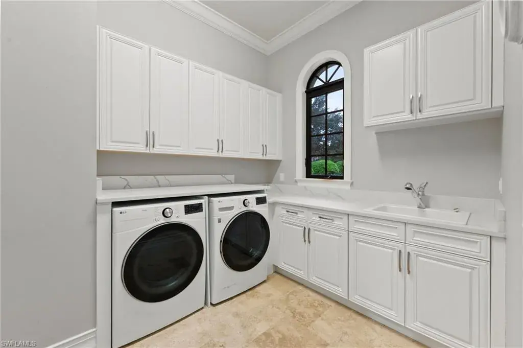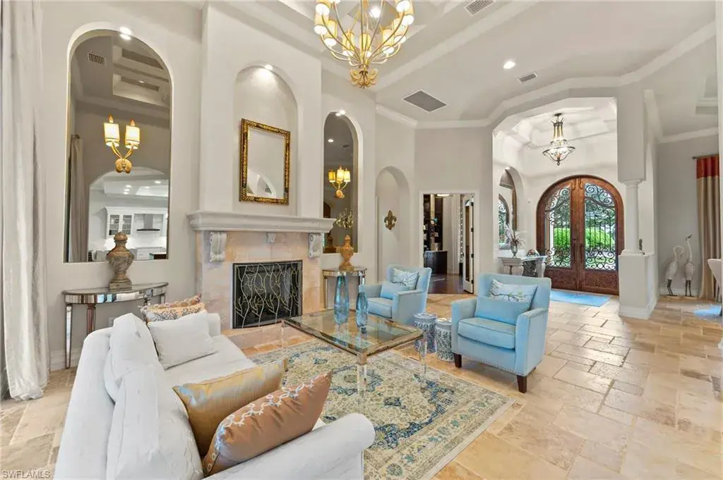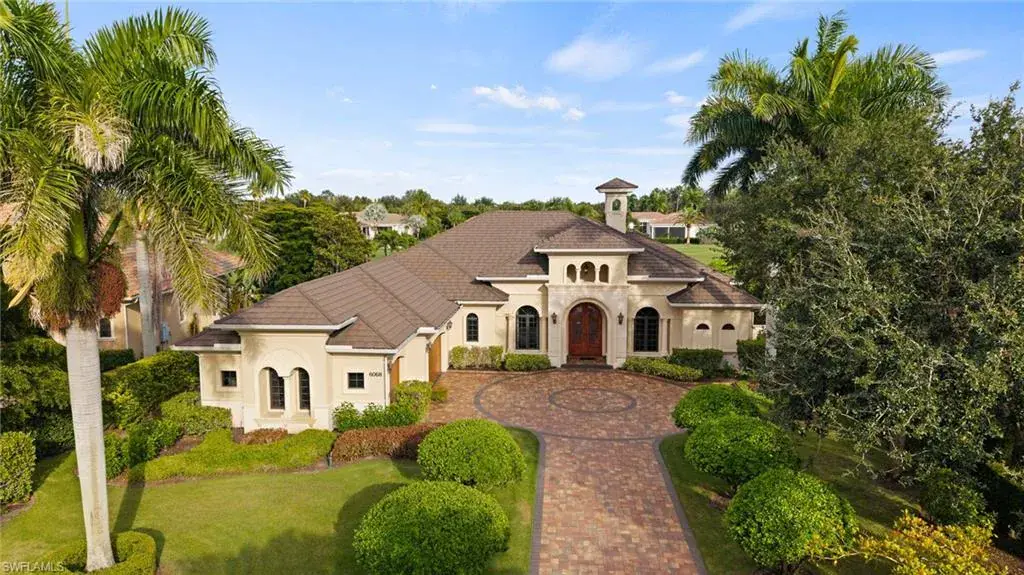 IMMEDIATE GOLF MEMBERSHIP AVAILABLE. Experience breathtaking views overlooking the 13th hole of The Lakes Golf Course from this exquisite residence, where every bedroom features its own en suite. Step through elegant double glass and metal-accented doors into a grand foyer that immediately showcases the home’s fine craftsmanship from the tumbled tile flooring to the soaring coffered and tray ceilings. The spacious living room centers around a gas fireplace and dramatic floor-to-ceiling windows that frame the picturesque outdoor living area .An entertainer’s dream, the residence features a stylish wet bar and a beautifully appointed office with custom built-in cabinetry. The gourmet kitchen seamlessly flows into the family room, showcasing dual islands, premium finishes, and expansive zero-corner sliders that open fully to the lanai—blurring the lines between indoor and outdoor living. Outside, enjoy the ultimate alfresco experience with a fully equipped outdoor kitchen, bar, and generous covered seating areas. The sparkling saltwater, gas-heated pool and integrated spa create a private resort setting, perfect for relaxing or entertaining against the backdrop of sweeping golf course vistas. Notable upgrades include spray foam insulation with an air-conditioned garage, updated HVAC systems, a whole-house generator, electric hurricane shutters, impact-resistant windows, a metal roof with a 50-year warranty, and 17-inch gutters.A perfect harmony of elegance and liveability, this remarkable residence embodies the very best of luxury golf course living in Southwest Florida.