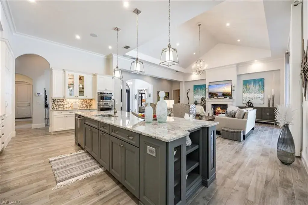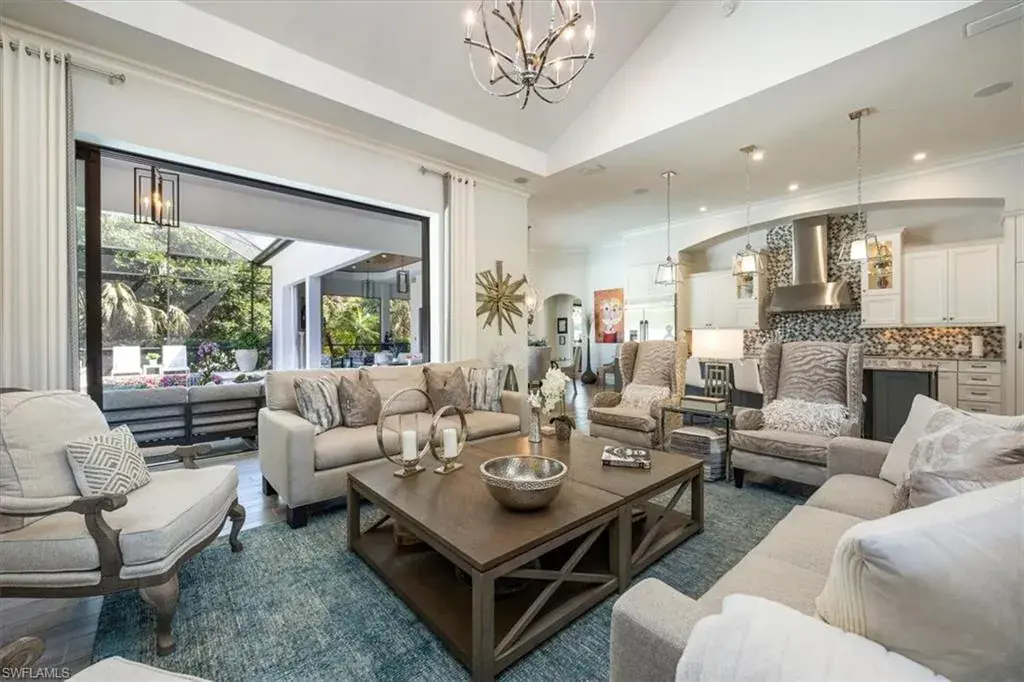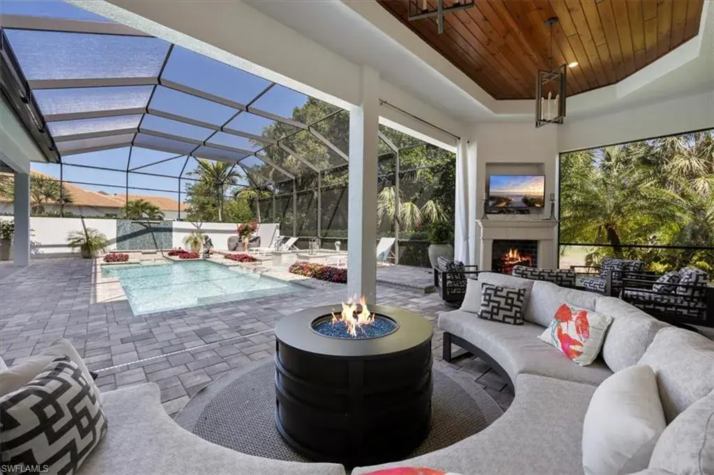 Behold this graciously appointed home sitting on the 9th tee of the preserve course. When you step thorough the double glass front door to the stunning foyer, you will immediately be immersed in luxury. The soaring ceilings greet you and offer the spectacular opening to the great room flanked by the formal dining room and den and leading your eyes to the luxurious lanai. A cozy fireplace and large kitchen island anchor the great room for fabulous entertaining and the additional flex room can be used for a multitude of purposes and opens also to the lanai with pocketing sliding doors. The kitchen is a delightful space to use your imagination and create culinary delights, double ovens, wall oven, gas cooktop, walk in pantry and all the bells and whistles you can ask for to release your inner chef! Immerse yourself in the gorgeous primary suite, generous and able to accommodate a seating area as well as your king-sized furniture and a private French door to the lanai for quiet respite. After a well enjoyed day in SWFL you can pamper yourself in the primary spa inspired bath with large shower, soaking tub and double vanities. 2 additional bedrooms and baths are simply divine for family and guests. The exceptional lanai features a wood ceilinged gathering space including a full outdoor kitchen, seating area with fireplace and dining space and all overlooking the superb inground heated pool/spa and water feature wall. Updates include HVAC in 2024/25. Offering a transferrable House Membership.