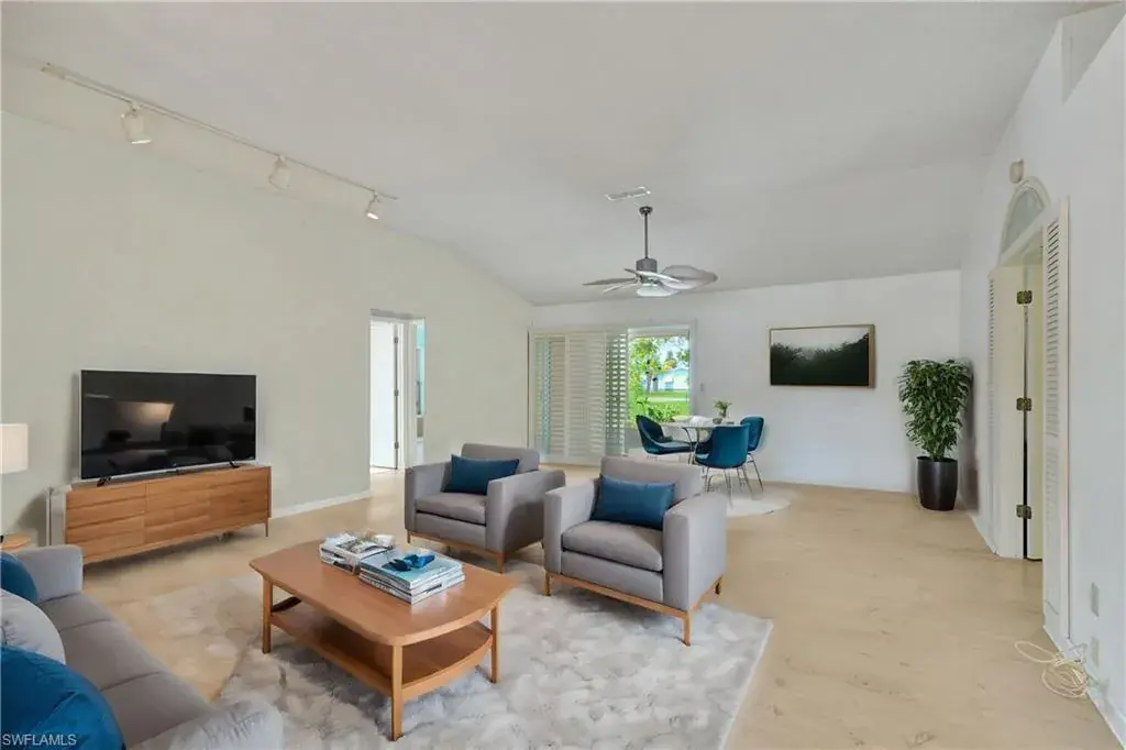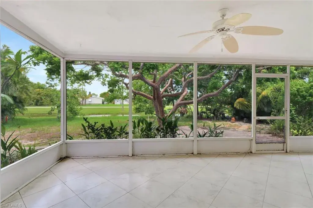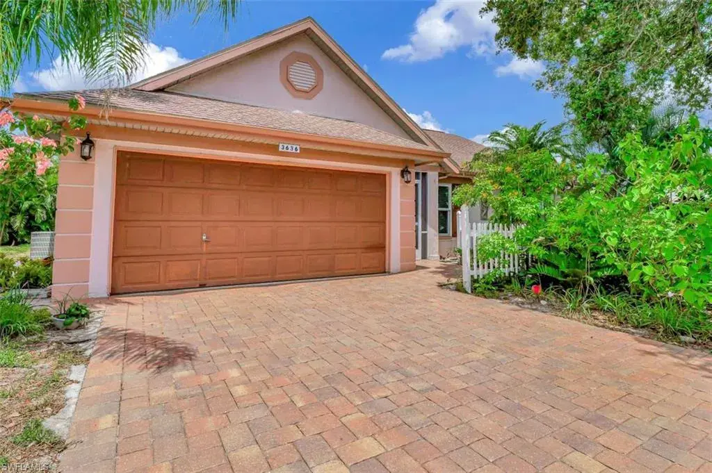 Welcome to this inviting 3-bedroom, 2-bathroom home located in the serene community of Queens Park at Lago Verde. NEW ROOF INSTALLED AUGUST 2024!! This property offers a perfect blend of comfort and practicality, enhanced by a spacious living room and dining area, as well as a kitchen equipped with a cozy breakfast area. The kitchen features granite countertops and cabinets providing a modern and functional space for culinary activities. The expansive master bedroom includes a glass slider door, allowing direct access to the lanai, where you can enjoy your morning coffee beside the lush fruit trees. The living room opens up to the lanai as well and it stretches the length of the house, offering an ideal space for relaxation and outdoor enjoyment. Neutral tile and laminate flooring in the home contribute to its clean, contemporary feel. Additional features include a 2-car garage and an extended paver driveway, providing convenient extra parking space. The home is also equipped with hurricane windows for added safety and peace of mind. Queens Park at Lago Verde is a beautifully landscaped community, surrounded by lovely homes. Its prime location is just 10 minutes from Naples downtown, 5th Avenue, pristine sandy beaches, and numerous dining and shopping options. The community offers the added benefit of low annual HOA fees of just $320. This home represents a unique opportunity to upgrade in your own style and to live in a desirable, well-maintained community. Schedule a viewing today to experience the charm and convenience this property has to offer. Home is offered AS-IS.