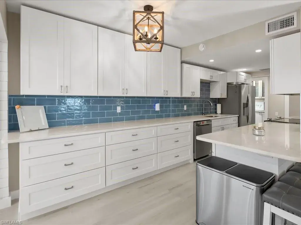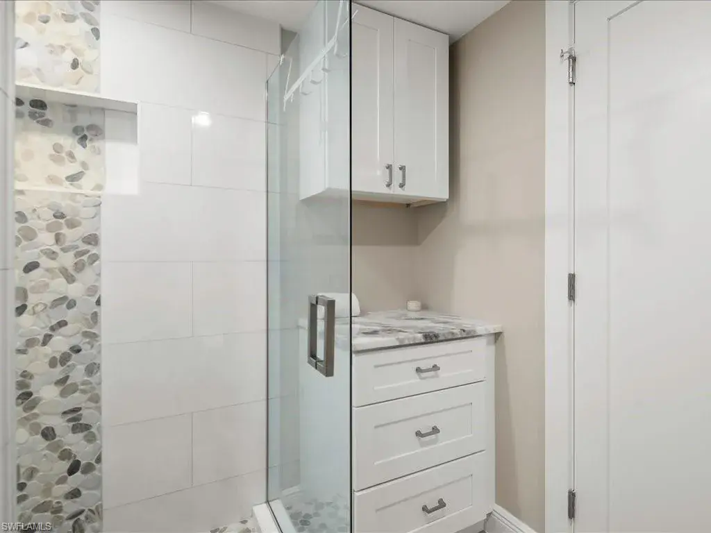 Rarely available 3 bedroom condo with Beach access and Private gated path to beach. Indirect Gulf access. South of Doctor’s Pass, Nestled between Doctor’s Pass and the Gulf of Mexico, 2 miles to 5th Avenue, 3 miles to Venetian Village. Three bedroom, 2 bath COMPLETELY remodeled, new ceramic tile, baseboards, shiplap, light fixtures, Quartz countertops, backsplashes, all new appliances. new water heater, new custom doors, new cabinetry throughout. Everything new floor to ceiling. Reverse osmosis water system newly installed. The Charleston Square Plaza and the newly opened Four Seasons Hotel is steps away for easy dining and shopping, while the white sandy beaches of Lowdermilk Park offers public beach access, showers, volleyball courts, and a beachside café just steps away. Presenting an exceptional opportunity to enjoy beachside living in Naples!