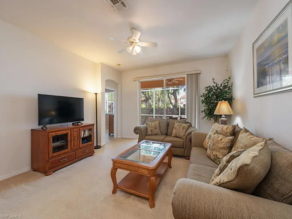 This slightly used attached villa with two car garage is located on a cul-de-sac, in a gated community, within