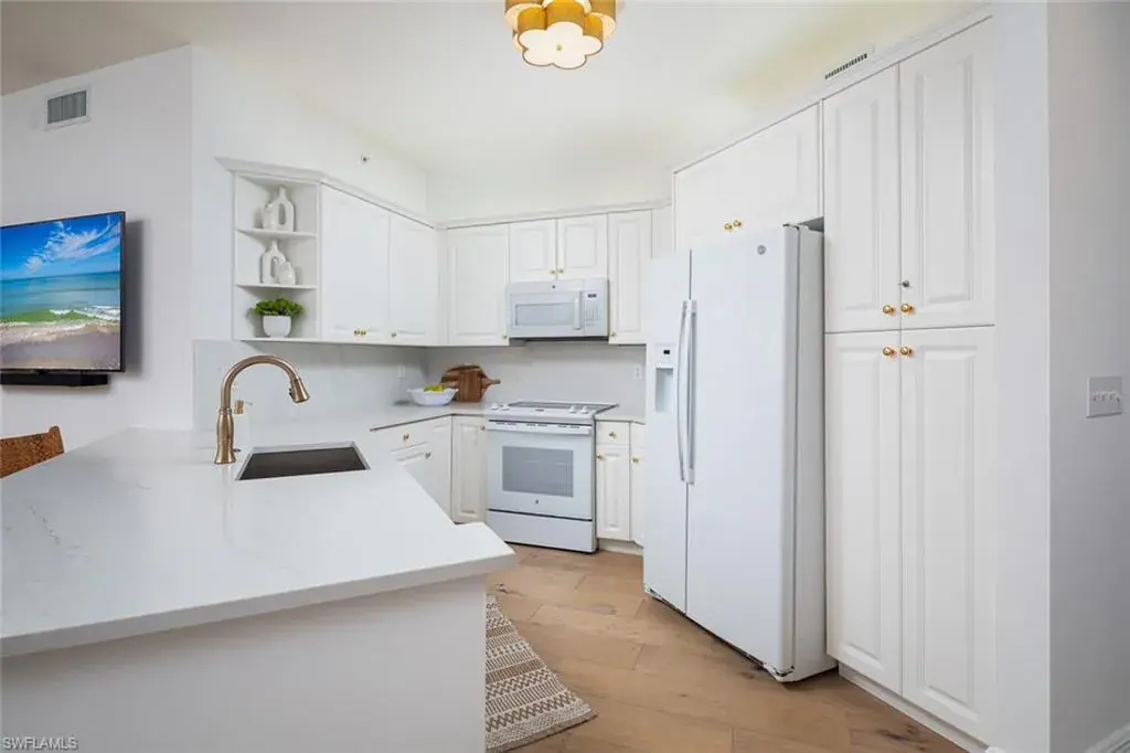 NOW AVAILABLE WITH AN IMPROVED PRICE! LUXURY MEETS SIMPLICITY. Discover a residence that seamlessly blends open living across approximately 1700 square feet, featuring a well-designed 3-bedroom, 2-bath layout. The kitchen has been revamped by eliminating soffits, creating an open and spacious area ideal for hosting and entertaining. The interior is bathed in natural light, offering a coastal ambiance perfect for bay front living. Attention to detail is evident throughout the interior. Enjoy the elegance of wood flooring, new baseboards and casing, complemented by the convenience of newer appliances, lanai screens, shutters, stylish light fixtures, and coastal-inspired furnishings. Regatta is a rare pet-friendly condominium, welcoming your furry companions into this upscale abode. Residents enjoy numerous amenities, from a tropical waterfall pool and relaxation pool to boat docks, fitness rooms, grilling areas, and more. RELAX AND ENJOY THE BEST IN LIFE! Just 500 yards from Vanderbilt Beach and steps from the renowned Ritz Carlton, this residence offers proximity to upscale attractions like Mercato, Pavilion, and Waterside shops. Indulge in designer boutiques, art galleries, diverse dining options, a cinema, and more. Tennis and pickleball courts are coming soon at the community park, enhancing the recreational offerings of this coastal retreat.For part-time residents, the flexible rental policy helps offset expenses. Regatta is a true gem—a waterfront haven that’s pet-friendly, secure, steps from the beach, and boasts a vibrant boating community. Move in with peace of mind – over $30,000 in assessments paid by the seller.