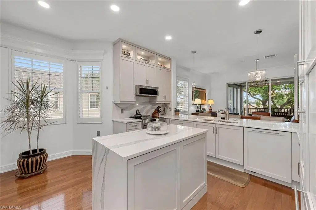 Your private elevator will transport you to 2900 square feet of living space in this luxury condo. Extensive kitchen remodel includes quartz counters, new cabinets extending to the ceiling, island with storage, extended opening to dining area, customized storage and more. Fresh, neutral paint throughout. New A/C 2022. Large lanai overlooks the 17th fairway. Regency Reserve is in a quiet location behind the gates of the Vineyards. Regency Reserve has its own recently renovated clubhouse offering a resort pool and fitness room. Vineyards Country Club offers 2 optional memberships.