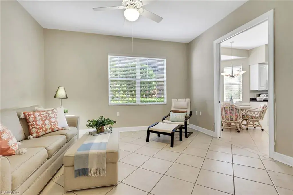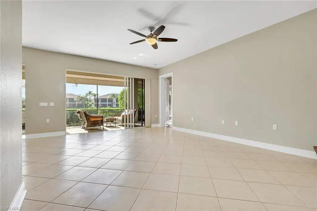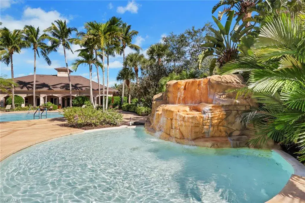 This ground floor, two bedrooms plus den end unit offers light filled spacious rooms with tile floors in the main living area and laminate wood flooring in the bedrooms. The large lanai with lake and fountain view is the perfect setting to enjoy outdoor living and dining. The space is further enhanced with electric hurricane shutters and storage closet. The attached two-car garage has an epoxy coated floor, work bench and extra refrigerator. Just a short walk away is the recently renovated resort style community clubhouse and pool is a tropical oasis with swaying palms, lush landscaping and waterfalls. The clubhouse has a full kitchen, fitness room, library, game room and large gathering space for socializing. Regency Reserve offers a combination of elements for living well – comfortable living space, exemplary community amenities, and sound financial management all within Vineyards gated area.