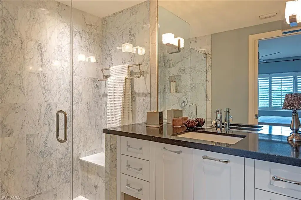 Experience beachfront living with one of the most breathtaking Gulf views and sunsets in all of Naples from this exceptional second-floor, third-level corner residence in the West building of Regency Towers. Southwest exposure fills the home with natural light, while the open, reconfigured floorplan features a large great room with custom built-ins, an open kitchen with expanded bar along the dining area, and an expansive covered balcony, perfect for entertaining or enjoying the sparkling waters. The primary suite includes a custom bathroom with soaking tub, separate shower, and dual sinks, complemented by two generously sized guest bedrooms with ensuite baths. In-residence laundry with additional facilities in the building, one assigned under-building garage space, guest parking, and a storage locker. Regency Towers is an intimate enclave of only 40 residences across two buildings, with amenities including direct beach access, an updated lobby, on-site manager, a newly renovated beachside oasis with patio, large heated pool with spa and lounge areas, updated social room, bbq area and fitness center. Furniture package included if desired.