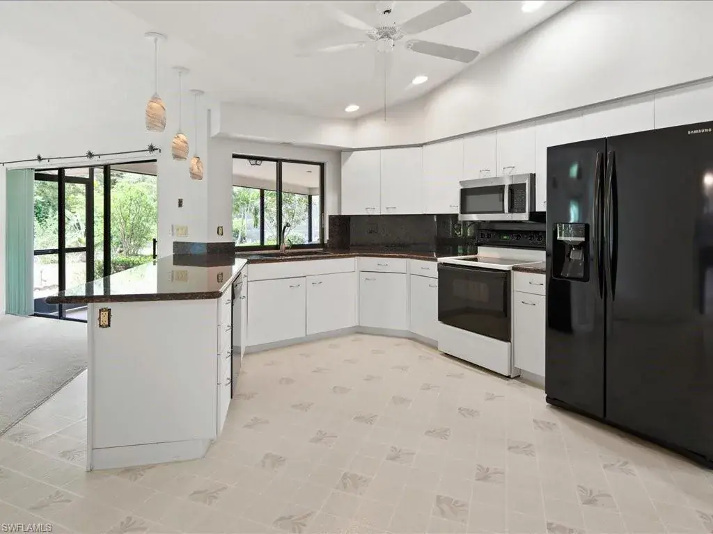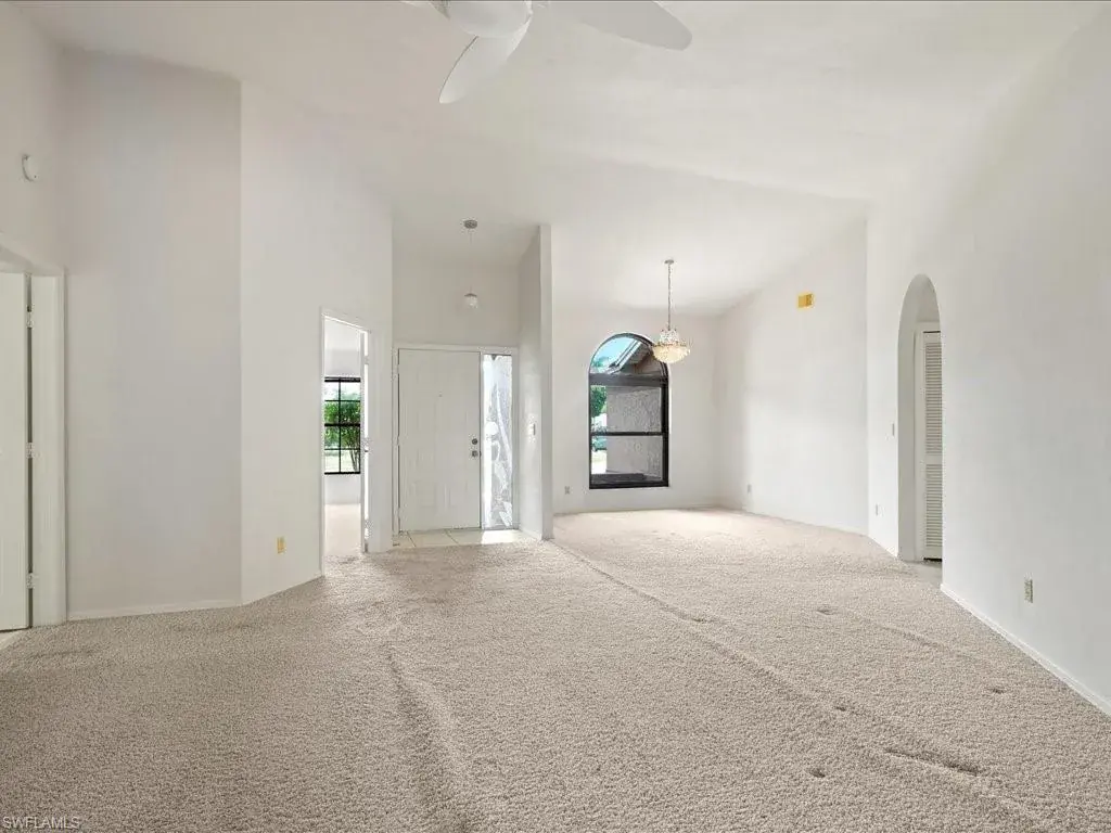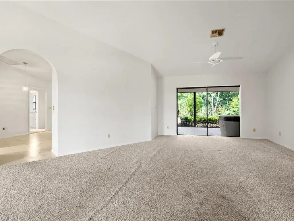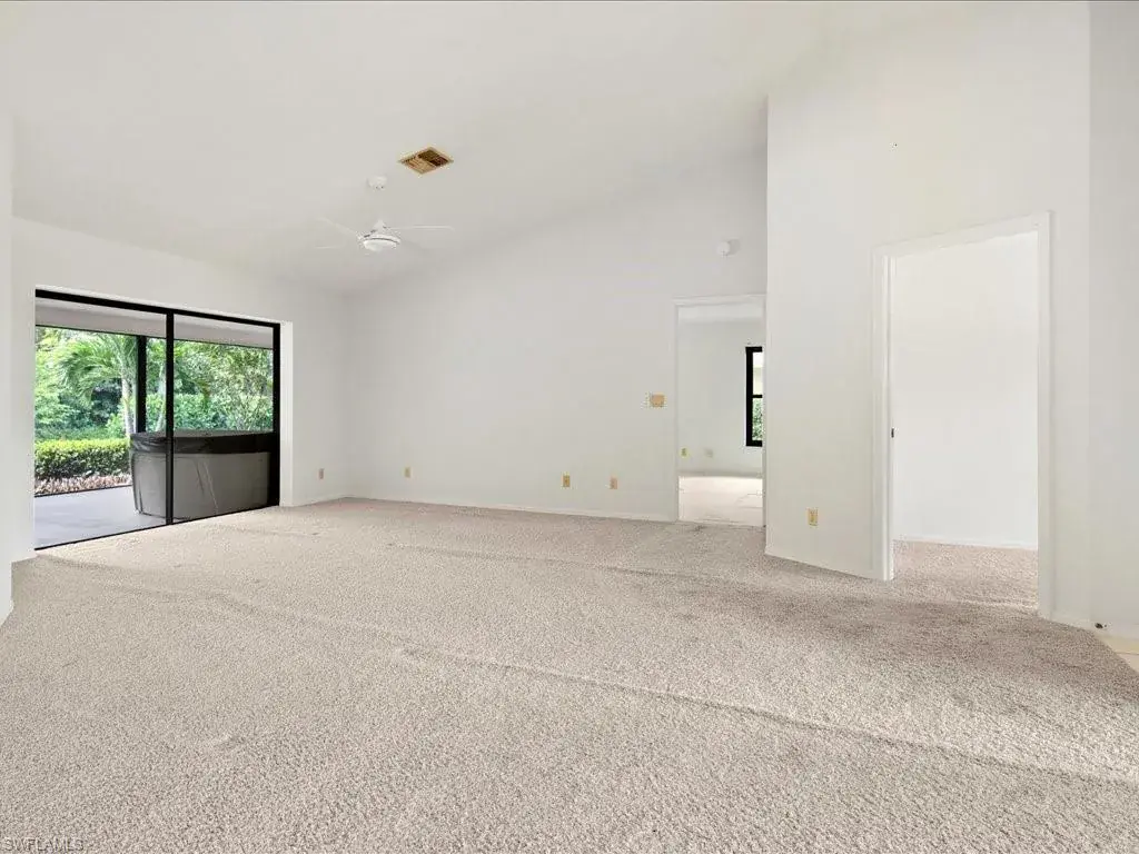 NORTH NAPLES RENOVATION OPPORTUNITY! Value priced FOUR BEDROOM single family in a great family neighborhood. Split bedroom floor plan. Vaulted ceilings in the main living area. Large private master suite. Separate living/dining room plus family room off the kitchen as well as a large, screened lanai. New garage door 2017, new HVAC 2018, new brick-pavered driveway 2021 plus new roof and 7 impact windows installed in 2022. Situated on a quarter acre Southern facing lot with room for a pool. Fences are permitted with HOA approval. The SUPER LOW HOA FEE of $335/yr. provides access to a large, heated community pool as well as lighted tennis/basketball courts. Prime North Naples location close to everything and not located in a flood zone. This home has good bones, great potential and is looking for someone to put a happy face on it. Regent Park is a great place to call home and a little sweat equity can go a long way and likely pay dividends down the line.