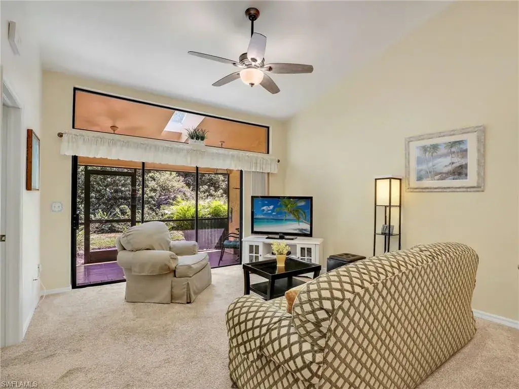Charming FHA-Approved Villa in North Naples Community! Welcome home to this beautiful attached villa, perfectly located in a non-flood zone community with fantastic amenities! This home features vaulted ceilings, a split floor plan, and a spacious front AND back lanai space—perfect for relaxing or entertaining. This unit is backed up to a wooded area for ultimate privacy. With a newer roof (2018) and one of the few FHA-approved communities in Naples, this is an excellent opportunity for first-time homebuyers! Enjoy access to two community pools, a tennis court, and a basketball court, all just steps from your door!