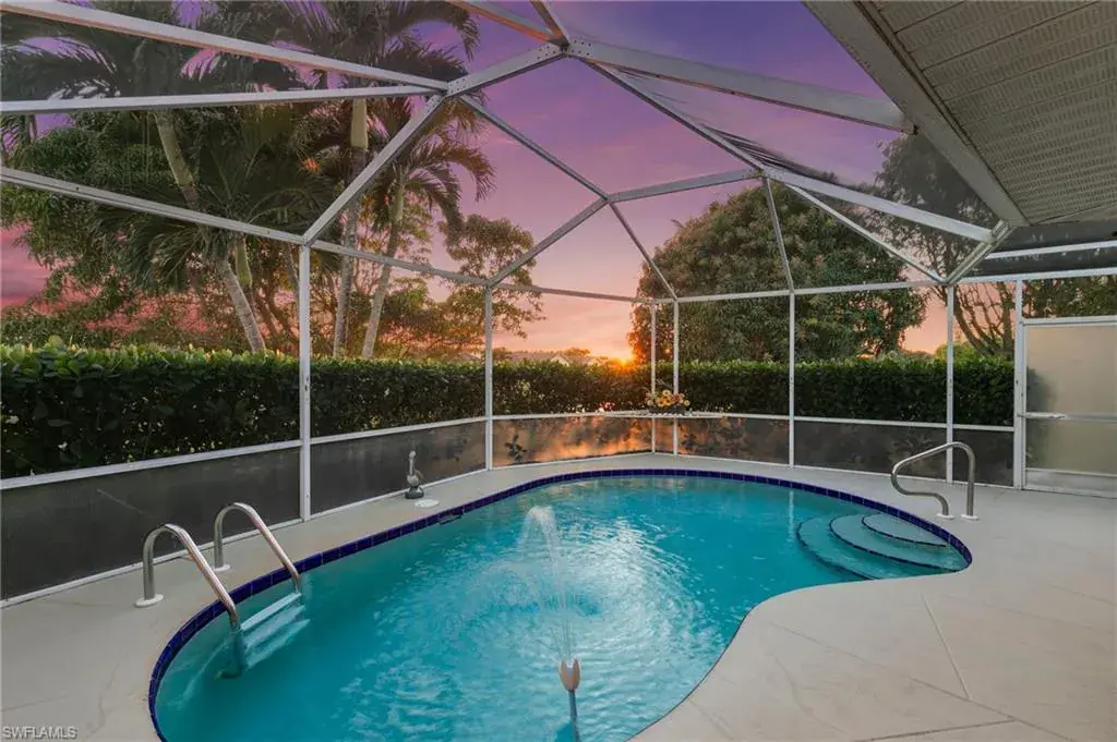 Discover the perfect blend of comfort, style, and tranquility in this stunning 3-bedroom, 2-bath lakefront home located in the highly desirable Regent Park community. With its southern exposure, this home is bathed in warm natural light, accentuating the open layout and volume vaulted ceilings. The spacious living area flows seamlessly to a screened lanai, complete with a private pool, privacy hedge, and a covered seating area, making it the ideal space for both relaxation and entertaining. The kitchen is a chef’s delight, featuring stainless steel appliances, Silestone countertops, and a dry bar for added convenience. Recent upgrades, including a new roof in 2024, and hurricane impact windows paired with manual shutters, ensure peace of mind and modern efficiency. The home’s thoughtful design continues with a 2-car attached garage and lush, mature landscaping that enhances its curb appeal. Residents enjoy access to Regent Park’s amenities, which include a community pool, tennis courts, and a BBQ-picnic area, all while benefiting from low HOA fees. This home’s prime location, luxurious features, and serene lakefront setting make it a true sanctuary. Don’t miss this opportunity to own a beautifully maintained home in a vibrant, yet peaceful community.