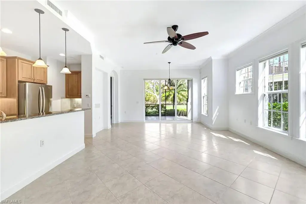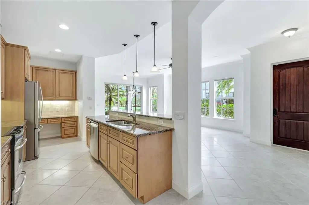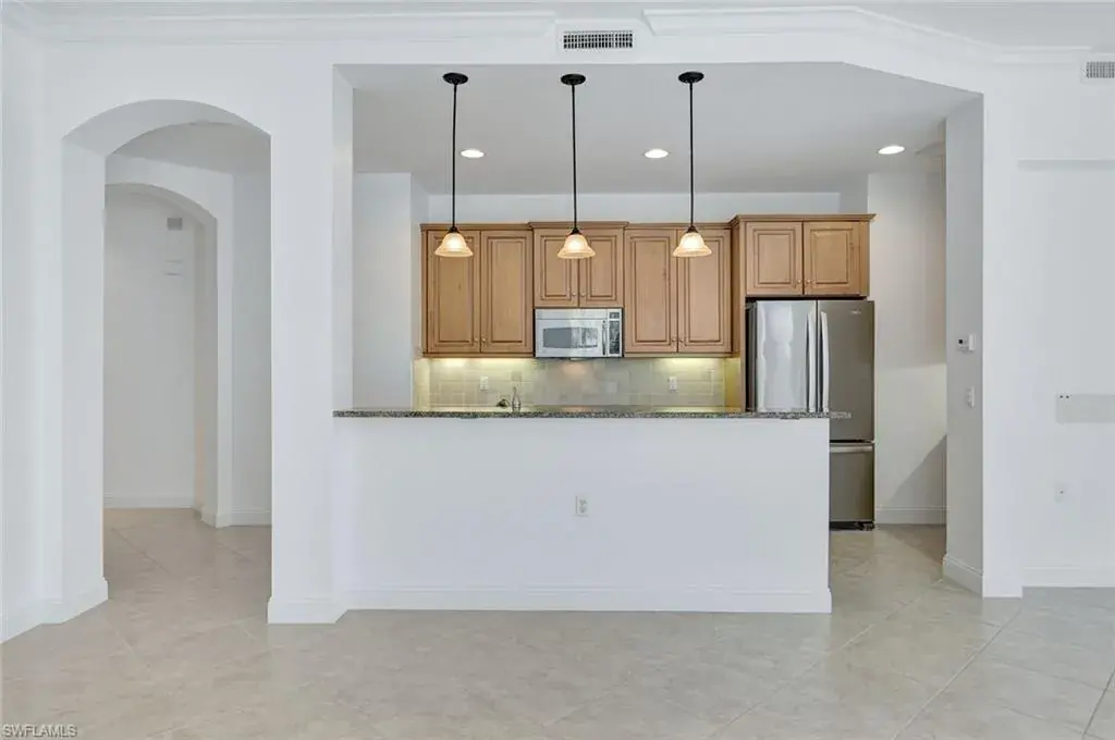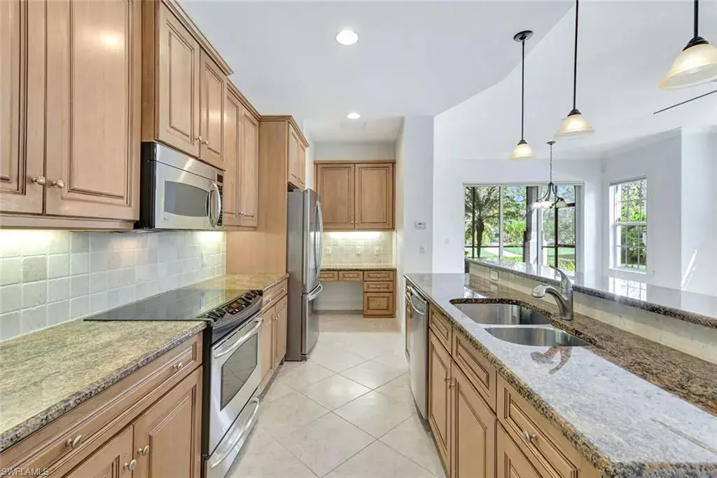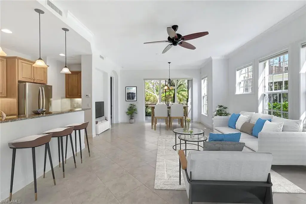 Well appointed Coach Home, ideally located in North Naples, minutes from Naples pristine beaches, fine dining, entertainment and shopping, including Waterside Shoppes, Mercato and Granda Shoppes. This coach home features great room floor plan with 2 bedrooms, 2 full baths, hurricane impact windows and doors and 2 car garage. A cozy, fully equipped kitchen designed for efficieny and style featuring stainless steel appliances, wood cabinets with granite countertops, breakfast bar, large pantry and built-in desk. Spacious Master Suite, with linen closet, walk-in closet with custom built-ins, private bath with two separate wood vanities, granite countertops, walk-in shower and jetted tub. Large Laundry Room offers plenty of cabinets for storage. Porcelain tile floors, 5 1/2″ crown moldings and baseboards, window casings throughout and brand new air conditioner in 8/25. Amenities include private Clubhouse with catering kitchen, grilling area, fitness center, large pool deck and heated resort style pool and spa. New roofs and exterior painting was completed in 2021.