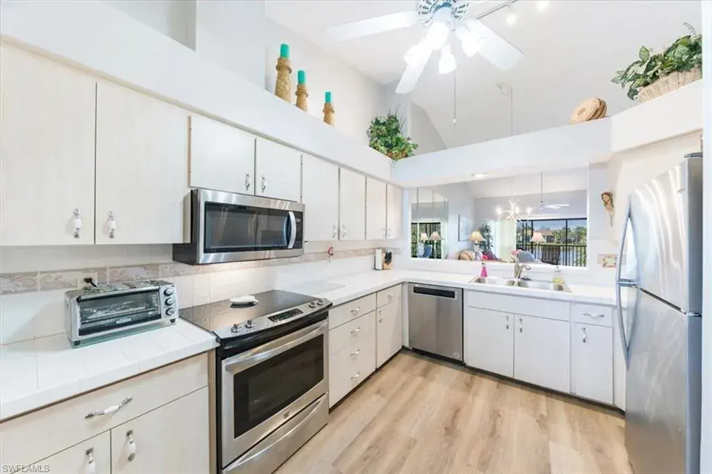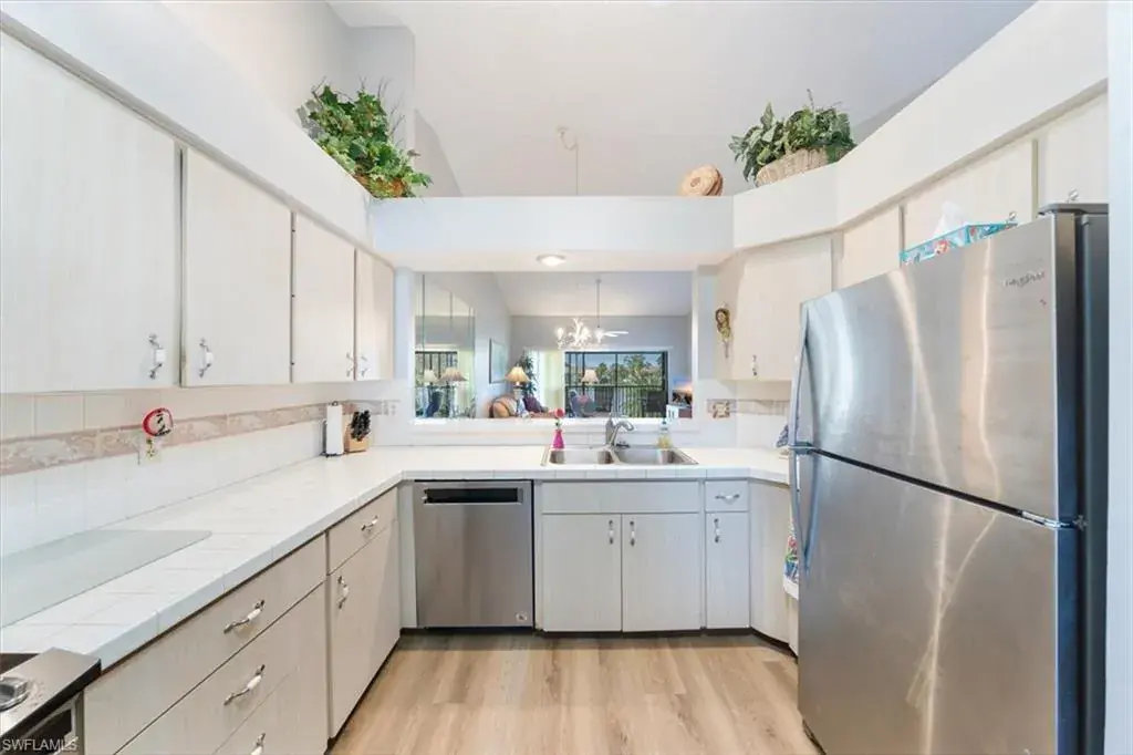 Peace of mind with IMPACT GLASS WINDOWS and electric hurricane shutter on lanai. This Adorable 3 bedroom/2 bath, END UNIT W/BEAUTIFUL LAKE VIEWS complete with detached garage awaits YOU! Being Sold Turnkey and move in ready! Open Kitchen with tiled counter tops and backsplash, Lake views from kitchen, living and Master Bedroom. Soaring ceilings with Coretex Luxury Vinyl flooring in living area & middle bedroom/den and carpet in 2 bedrooms. Large laundry room for extra storage with washtub. The Retreat offers scenic walkways with wooden bridges along the wildlife estuary that winds along miles of bike and jogging paths. Minutes to Vanderbilt, Bonita, or Wiggins State Park white sandy beaches. the Retreat is a gated and 24hr. patrolled community, w/back gate off Vanderbilt for easy access. One small pet up to 25lb is allowed. Enjoy the heated/Saltwater Community pool w/grills and spa just steps away from unit. Bring your family and start making new memories today!