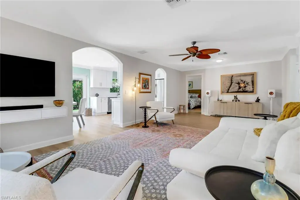 Discover the beauty of 14 Rivard, a hidden gem in the heart of Naples! This fully renovated designer-furnished home is move-in ready and offers a unique blend of elegance, personality and comfort. This free standing home features a newer roof, central air system, stainless appliances, solid wood cabinetry & doors, all enhanced with wood grain ceramic flooring throughout.