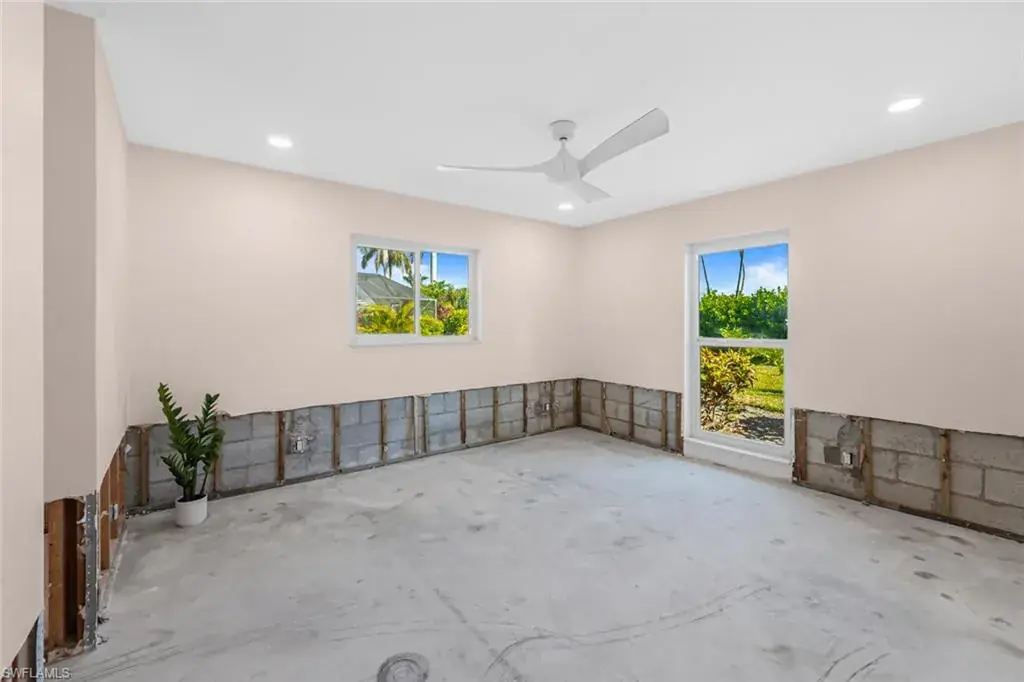 Rivard Villas is a small development of 20 single family homes. This property is 1 of only 8 lots with extra space (one and a half lot). It is situated at Cul-de-sac for more privacy. It has 2 bedroom/2 Bathrooms split floor plan. The house was fully renovated and remodeled in September 2024 with high-end kitchen features: quartz countertops and backsplash throughout, drinking water filtration system Everpure H-300, 30” “Silgranit” Italian kitchen sink and faucet Blanco, flush-style (cabinet-depth) microwave Whirlpool with outdoor air ducted vent, ZLINE 30” Alpine Series Convertible Range hood (ALO70IS-30) air ducted outdoors, LG built-in cooktop and oven, LG dishwasher, LG French doors refrigerator, and 16 bottle Dual Zone wine cooler. Both the range hood and the microwave fan are air-ducted to a vent outside the house. This allows for a second portable cooking station under the microwave.