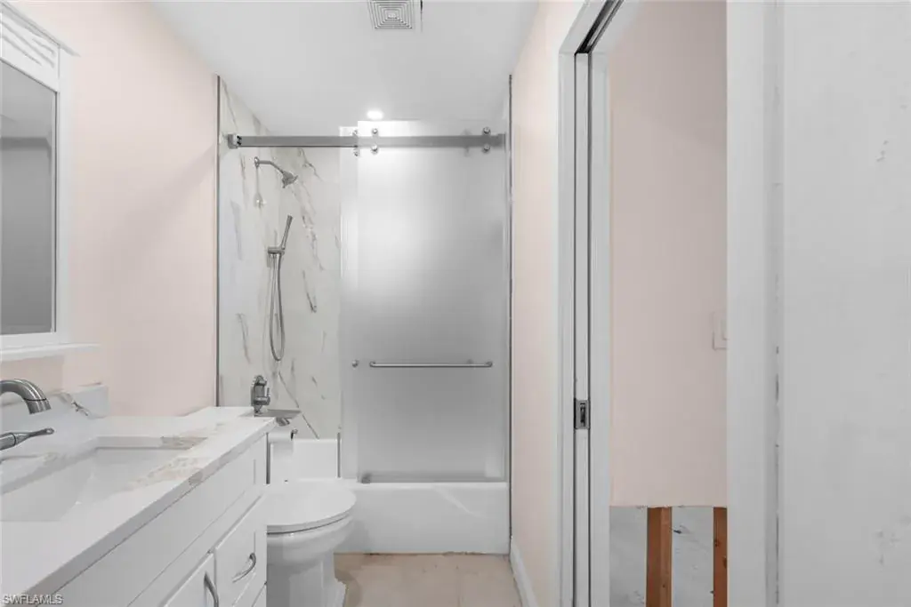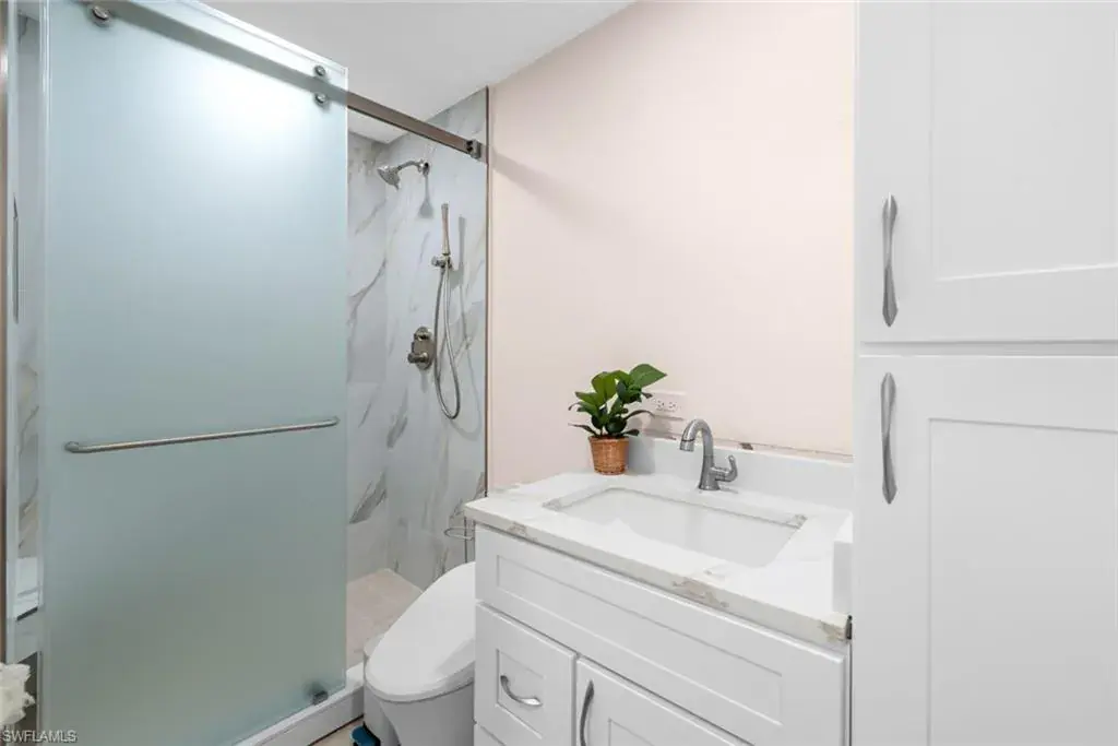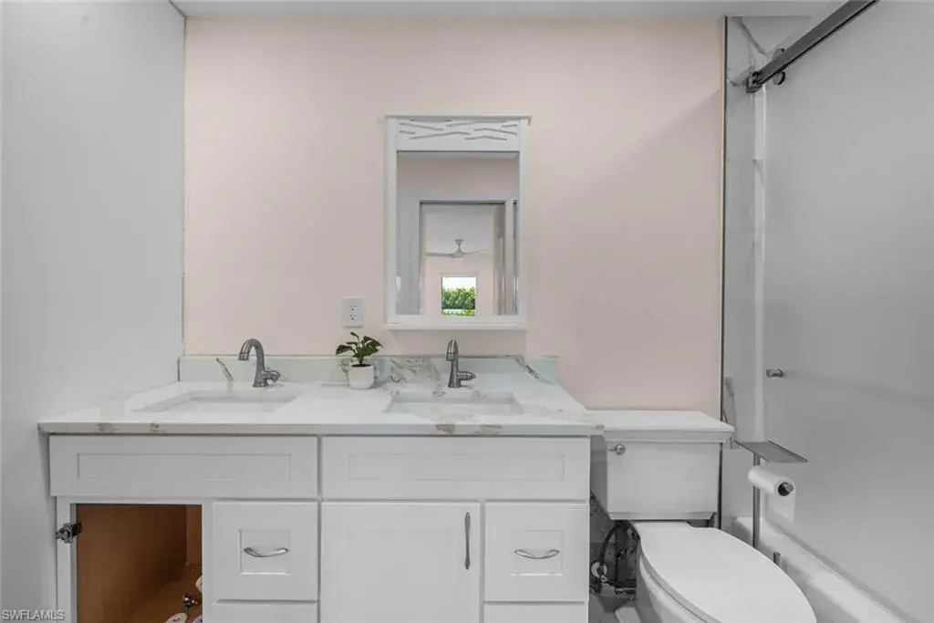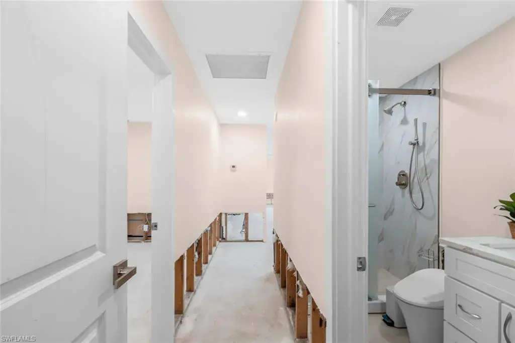 The upgraded bathrooms include brand new Delta and Moen fixtures, privacy-glass sliding doors, one Kohler “Memoirs” and one Kohler “Veil with Cleansing Seat” (bidet) toilets, quartz countertops, and shower tiles to the ceiling. The house is equipped with a new LG tower ventless washer and dryer (10yrs warranty) in the prime bathroom. There is a new water Heater installed 6/2025t (Rheem Gladiator). The roof was replaced in 2018.