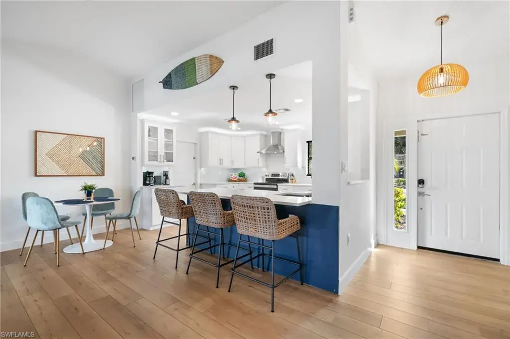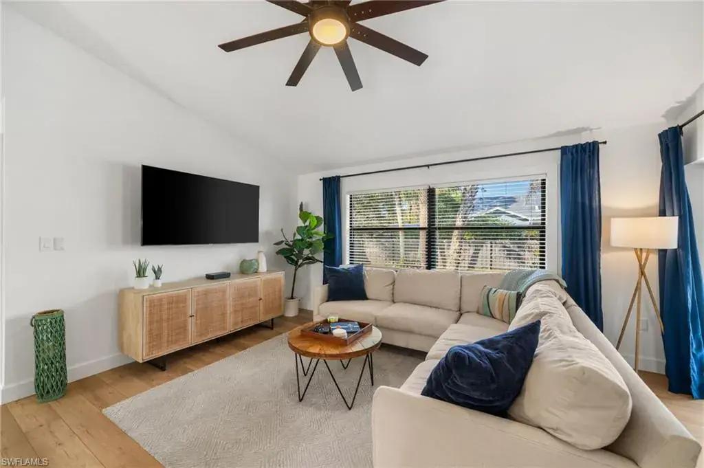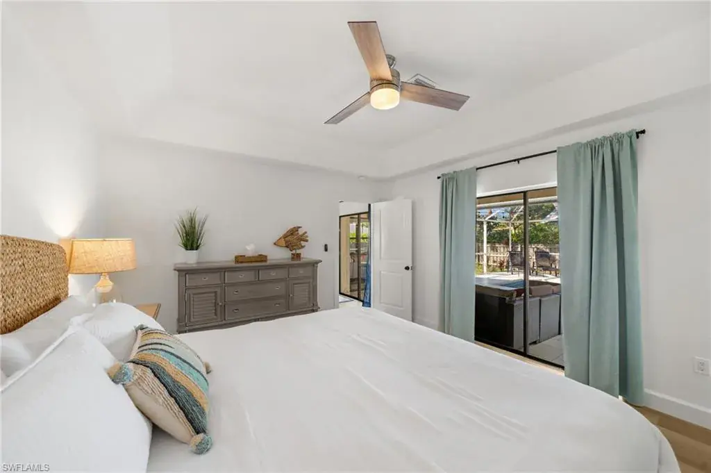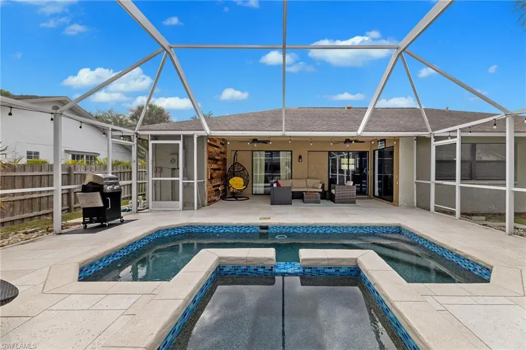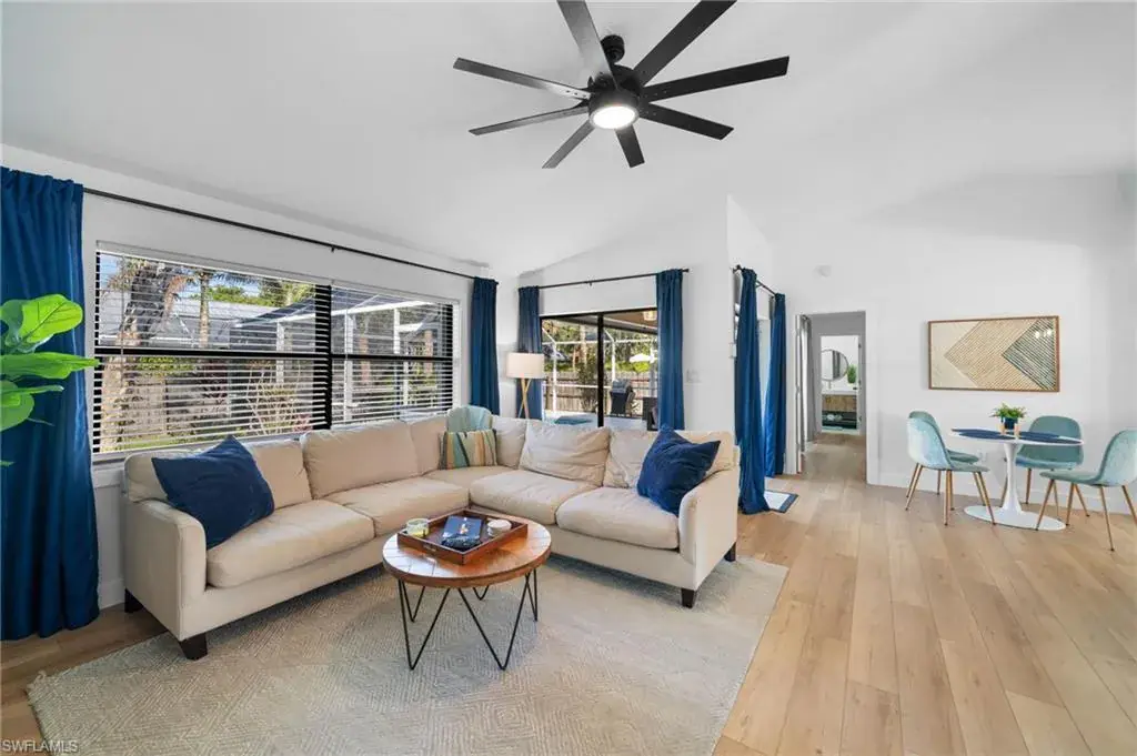 Light and bright 3 bedroom, 2 bathroom home with pool in the sought-after community of River Reach! This stunning, fully renovated 3-bedroom, 2-bathroom single-family home with a 2-car garage offers the perfect blend of modern elegance and Old Florida lifestyle. Situated on a spacious 0.22-acre lot, this concrete block-built home was masterfully redesigned in 2023 with top-quality craftsmanship and attention to detail. Step inside and be greeted by soaring vaulted ceilings that enhance the open floor plan, filling the home with natural light. The thoughtfully designed split layout offers privacy and functionality, making it perfect for families or guests. The main living area flows seamlessly to the covered lanai and screened-in pool area through sliding glass doors, creating an ideal indoor-outdoor living space. The large master suite is a retreat of its own, featuring a huge walk-in closet and a redesigned ensuite bathroom with a frameless glass shower and a marble-top custom vanity. Two additional guest bedrooms share use of an updated bathroom with a combination shower & tub, providing ample space for relaxation or home guest’s use. The screened-in pool and spa, resurfaced in 2023, are complemented by a new electric heater, ensuring year-round enjoyment. The expansive deck and covered lanai provide the perfect setting for entertaining, lounging, or outdoor dining. The fully fenced backyard offers privacy and versatility, with a generous side yard for storing a trailered boat or RV—an uncommon and valuable feature in Naples. This home is not just a personal oasis but also a fantastic investment opportunity. Rarely found in Naples, short-term rentals are allowed in River Reach. The property is already optimized as a high-performing rental, boasting nearly 40 five-star reviews and a strong history of top-dollar bookings. Whether you’re a part-time resident or an investor, this home offers incredible income potential while maintaining your own slice of paradise. River Reach is a low-fee community with an annual HOA of only $520. Residents also have the optional privilege of joining nearby Coconut River Estates, granting access to a private boat ramp, community pool, and playground. The location is unbeatable—just minutes from downtown Naples’ historic dining and shopping, pristine Gulf beaches, and navigable boat access points. For those seeking a turnkey option, this home is available with negotiable designer furnishings from Robb & Stucky, Pottery Barn, Ballard Designs, and more, adding a layer of convenience and style to your move-in experience. This beautifully renovated home offers an unparalleled combination of modern luxury, investment potential, and prime Naples location. Whether you’re looking for a full-time residence, a vacation home, or a high-performing rental property, this gem in River Reach checks all the boxes. Schedule your private showing today!