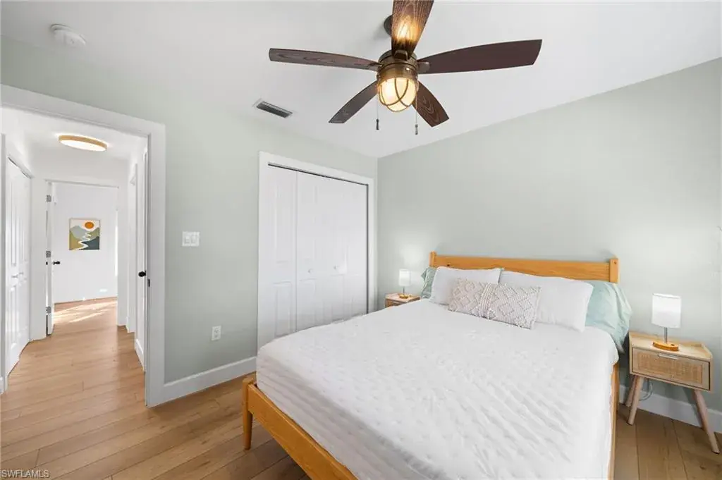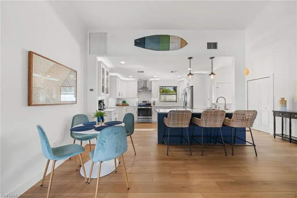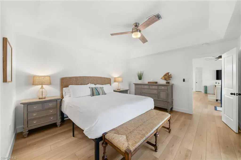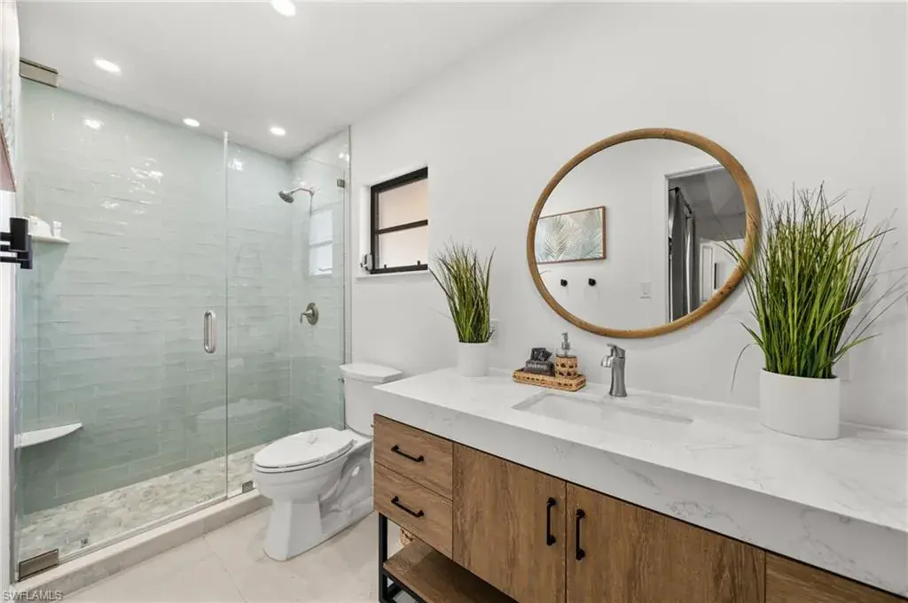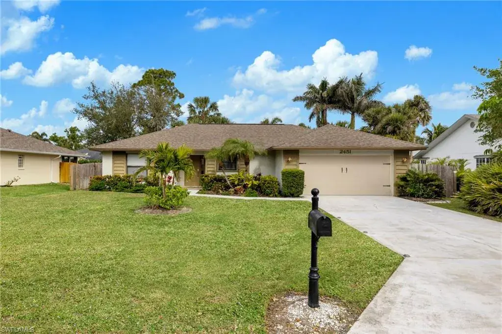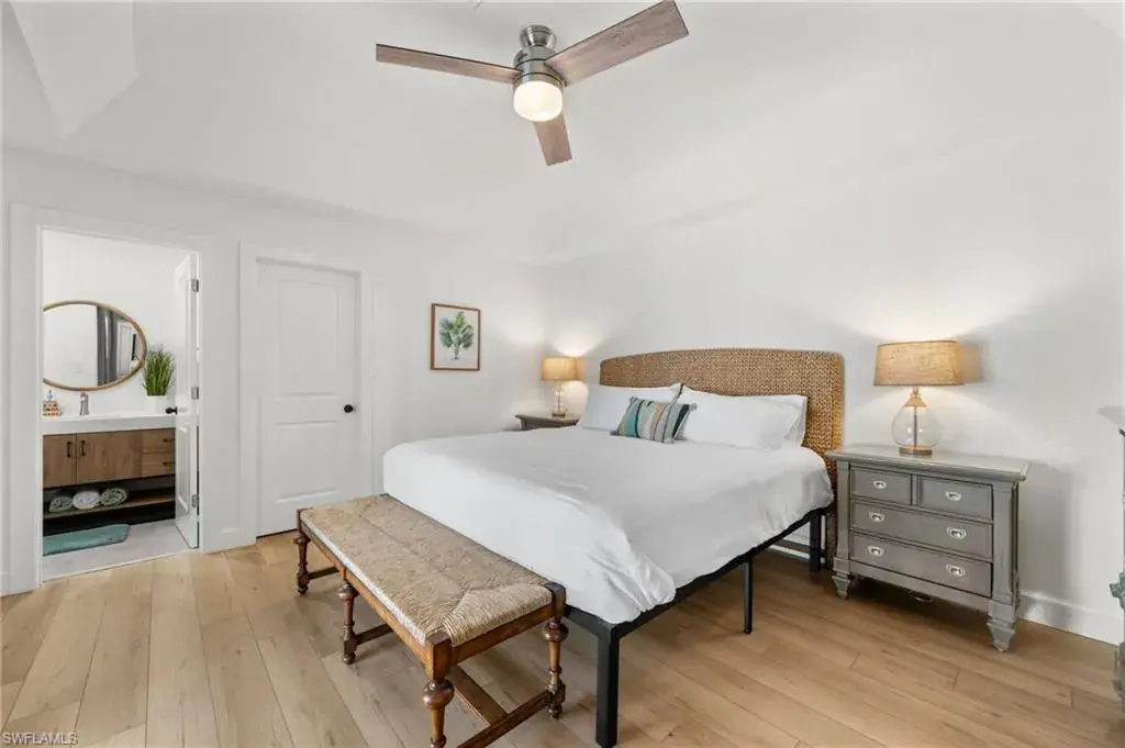 Light and bright 3 bedroom, 2 bathroom home with pool in the sought-after community of River Reach! This stunning, fully renovated 3-bedroom, 2-bathroom single-family home with a 2-car garage offers the perfect blend of modern elegance and Old Florida lifestyle. Situated on a spacious 0.22-acre lot, this concrete block-built home was masterfully redesigned in 2023 with top-quality craftsmanship and attention to detail. Step inside and be greeted by soaring vaulted ceilings that enhance the open floor plan, filling the home with natural light. The thoughtfully designed split layout offers privacy and functionality, making it perfect for families or guests. The main living area flows seamlessly to the covered lanai and screened-in pool area through sliding glass doors, creating an ideal indoor-outdoor living space. The large master suite is a retreat of its own, featuring a huge walk-in closet and a redesigned ensuite bathroom with a frameless glass shower and a marble-top custom vanity. Two additional guest bedrooms share use of an updated bathroom with a combination shower & tub, providing ample space for relaxation or home guest’s use. The screened-in pool and spa, resurfaced in 2023, are complemented by a new electric heater, ensuring year-round enjoyment. The expansive deck and covered lanai provide the perfect setting for entertaining, lounging, or outdoor dining. The fully fenced backyard offers privacy and versatility, with a generous side yard for storing a trailered boat or RV—an uncommon and valuable feature in Naples. This home is not just a personal oasis but also a fantastic investment opportunity. Rarely found in Naples, short-term rentals are allowed in River Reach. The property is already optimized as a high-performing rental, boasting nearly 40 five-star reviews and a strong history of top-dollar bookings. Whether you’re a part-time resident or an investor, this home offers incredible income potential while maintaining your own slice of paradise. River Reach is a low-fee community with an annual HOA of only $520. Residents also have the optional privilege of joining nearby Coconut River Estates, granting access to a private boat ramp, community pool, and playground. The location is unbeatable—just minutes from downtown Naples’ historic dining and shopping, pristine Gulf beaches, and navigable boat access points. For those seeking a turnkey option, this home is available with negotiable designer furnishings from Robb & Stucky, Pottery Barn, Ballard Designs, and more, adding a layer of convenience and style to your move-in experience. This beautifully renovated home offers an unparalleled combination of modern luxury, investment potential, and prime Naples location. Whether you’re looking for a full-time residence, a vacation home, or a high-performing rental property, this gem in River Reach checks all the boxes. Schedule your private showing today!