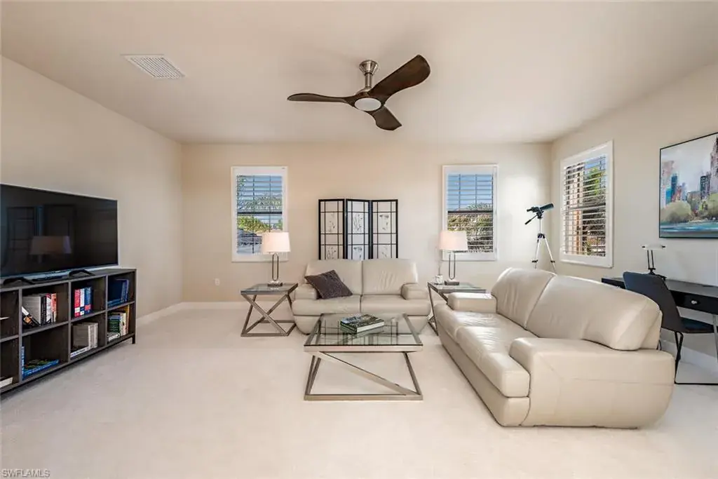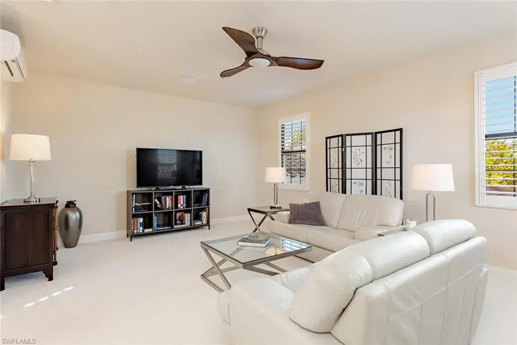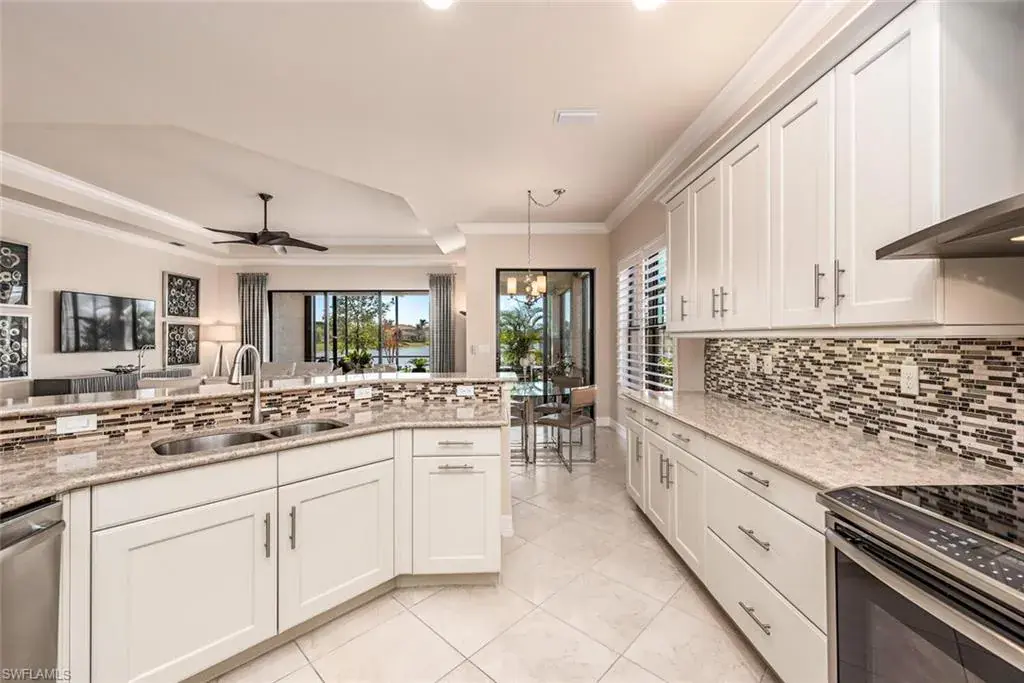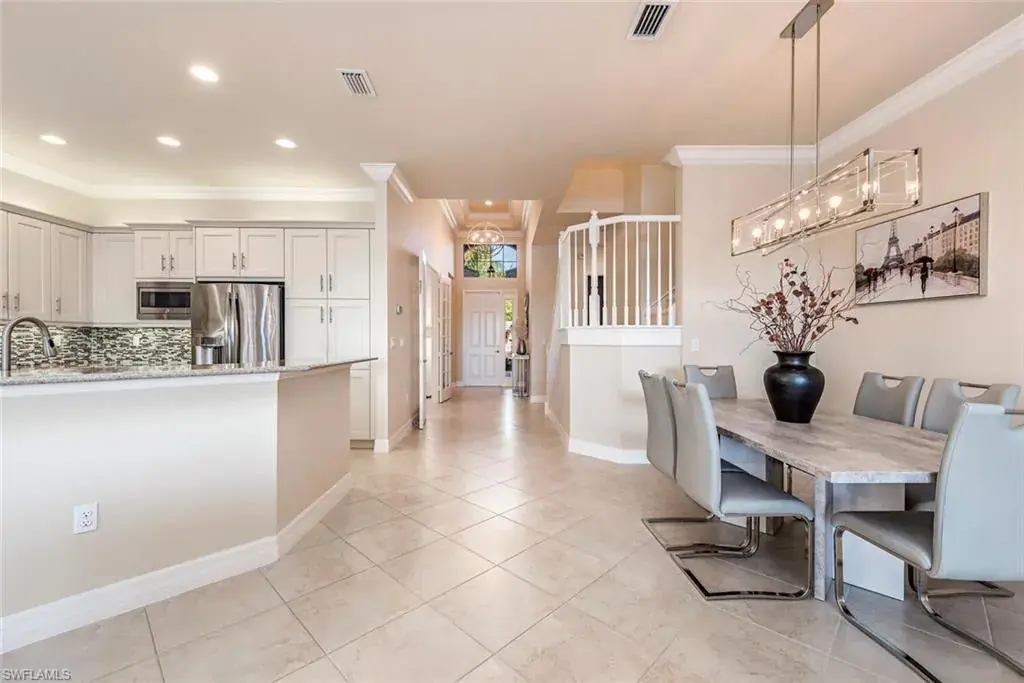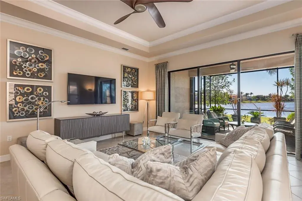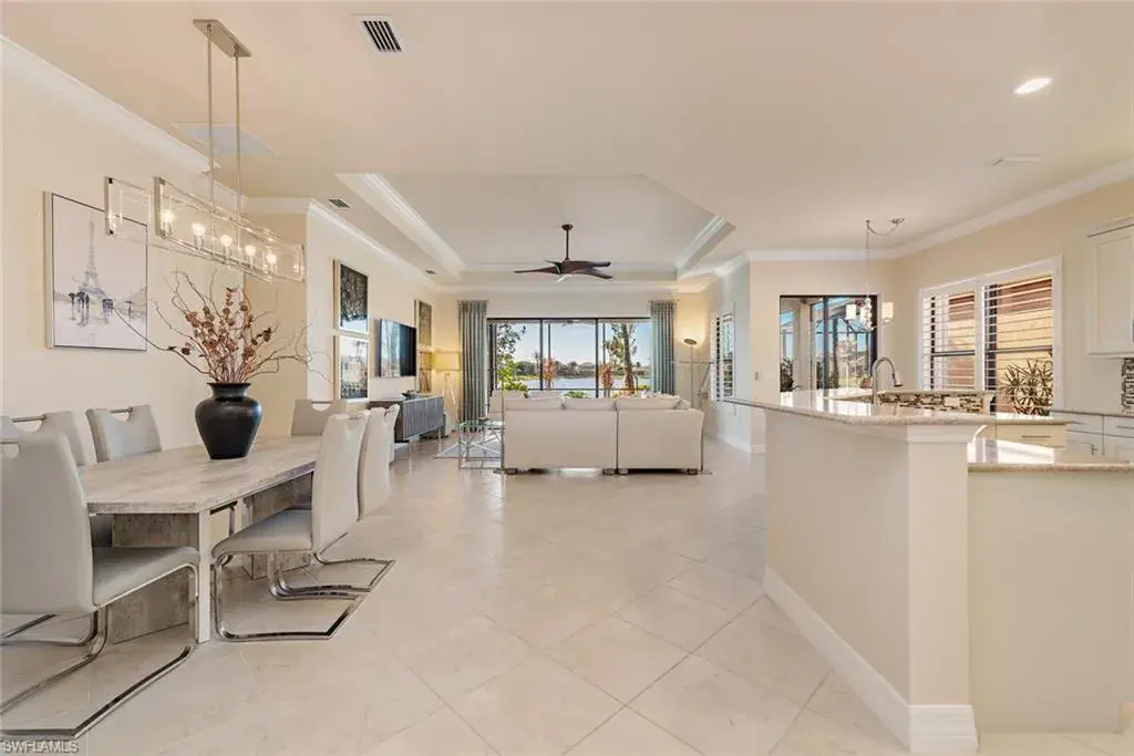Introducing a rare opportunity to own an impeccably maintained home with stunning long lake views, beautifully upgraded and move-in ready, allowing you to instantly embrace the coveted Naples lifestyle. This thoughtfully designed 2,863 SF home features 4 spacious bedrooms and 3 full bathrooms on the main level, plus a large bonus room with a half bath upstairs—ideal for both everyday living and entertaining. Upon entering, you’ll be welcomed by a grand foyer that opens to a light-filled open-concept living space. The heart of the home includes a generous great room, formal dining area, casual dining space, and a beautifully appointed kitchen. The kitchen is a true highlight, with upgraded alabaster soft-close cabinetry, granite countertops, a vented hood, stylish tile backsplash, and ambient cabinet lighting. The split-bedroom layout offers privacy, with the luxurious master suite thoughtfully separated from the guest rooms. The master retreat also looks over the lake and features two walk-in closets and a spa-like en suite bath. One of the downstairs bedrooms would also make a nice den or office. Additional premium upgrades include fresh interior paint, new carpeting, plantation shutters, frameless shower doors, crown molding, and sophisticated decorator lighting and fans. The laundry room is equipped with custom cabinetry for extra storage. Step outside to enjoy breathtaking southern lake views from the expansive screened lanai, which offers ample space for both seating and dining. The “L” shaped lanai is ideal for entertaining or simply relaxing while watching sunrises and sunsets paint the sky. Storm Smart electric hurricane screens provide protection & privacy and accordion shutters on the windows provide peace of mind. Brand-new air conditioners ensure comfort year-round. Riverstone offers a vibrant, vacation-inspired lifestyle for residents of all ages. Located in North Naples, just minutes from I-75 and zoned for “A” rated schools, this community features exceptional amenities including a fitness center, social hall, resort-style pool, lap pool, spa, 5 lighted tennis courts, outdoor basketball-pickleball courts, a full indoor basketball court, a tot lot, children’s water play area, game room, and an on-site activities coordinator. Paradise is calling, now is the time to experience the Southwest Florida lifestyle you’ve always dreamed of.