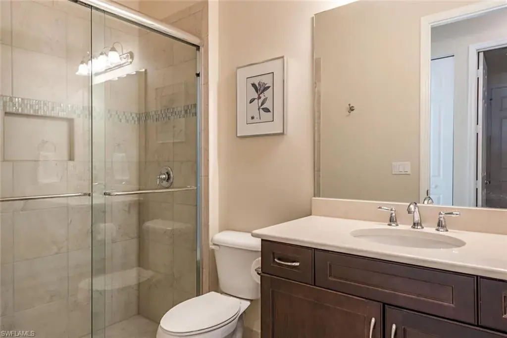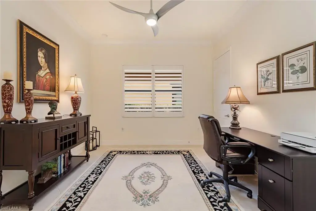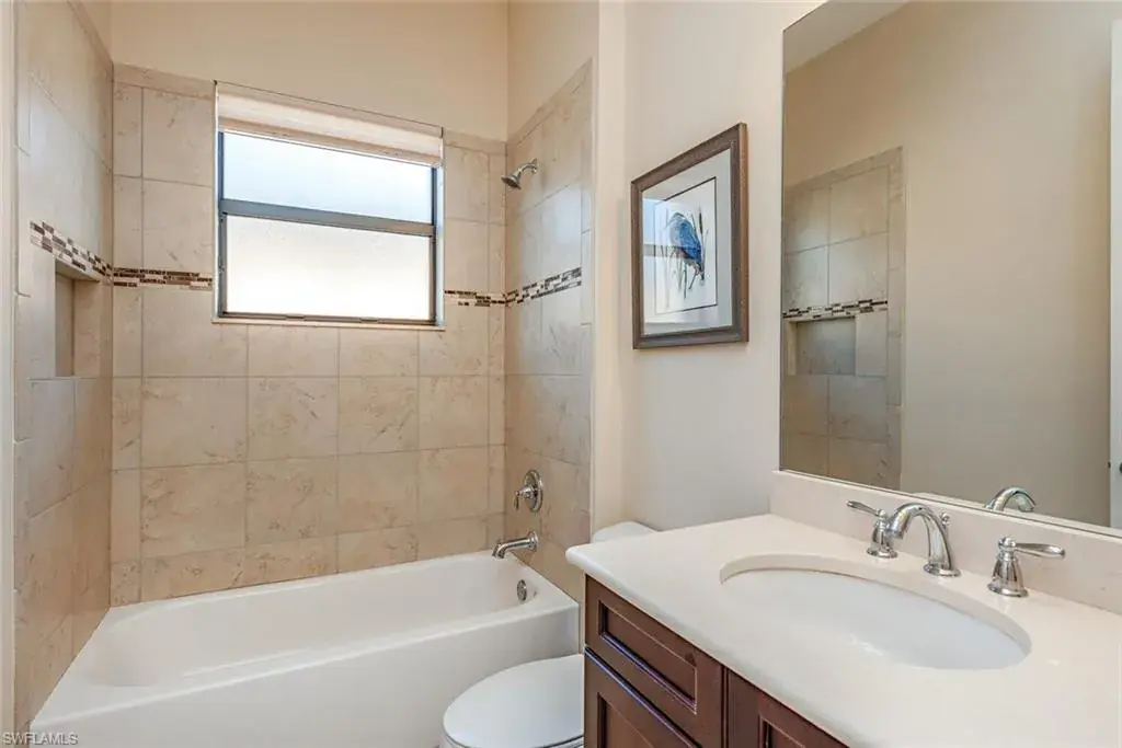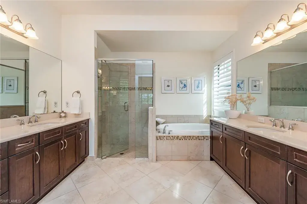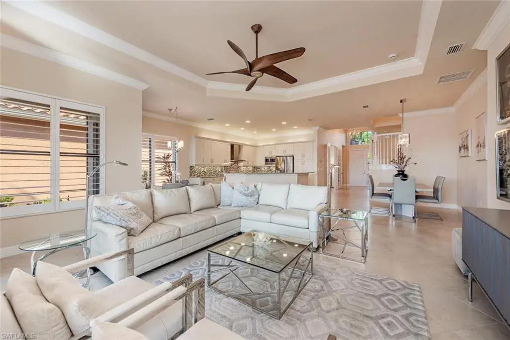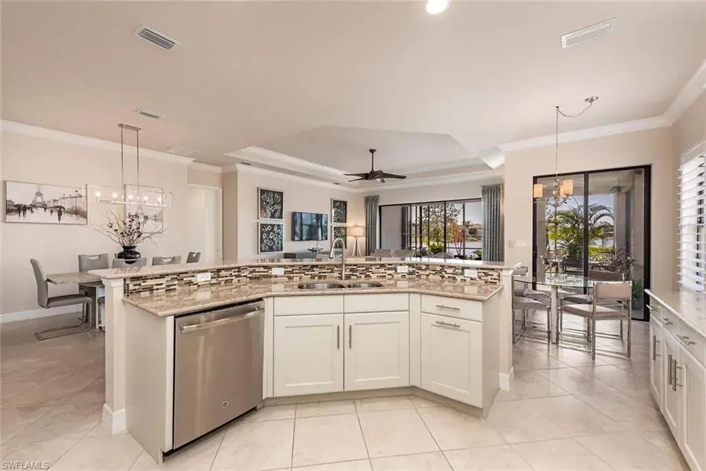 Introducing a rare opportunity to own an impeccably maintained home with stunning long lake views, beautifully upgraded and move-in ready, allowing you to instantly embrace the coveted Naples lifestyle. This thoughtfully designed 2,863 SF home features 4 spacious bedrooms and 3 full bathrooms on the main level, plus a large bonus room with a half bath upstairs—ideal for both everyday living and entertaining. Upon entering, you’ll be welcomed by a grand foyer that opens to a light-filled open-concept living space. The heart of the home includes a generous great room, formal dining area, casual dining space, and a beautifully appointed kitchen. The kitchen is a true highlight, with upgraded alabaster soft-close cabinetry, granite countertops, a vented hood, stylish tile backsplash, and ambient cabinet lighting. The split-bedroom layout offers privacy, with the luxurious master suite thoughtfully separated from the guest rooms. The master retreat also looks over the lake and features two walk-in closets and a spa-like en suite bath. One of the downstairs bedrooms would also make a nice den or office. Additional premium upgrades include fresh interior paint, new carpeting, plantation shutters, frameless shower doors, crown molding, and sophisticated decorator lighting and fans. The laundry room is equipped with custom cabinetry for extra storage. Step outside to enjoy breathtaking southern lake views from the expansive screened lanai, which offers ample space for both seating and dining. The “L” shaped lanai is ideal for entertaining or simply relaxing while watching sunrises and sunsets paint the sky. Storm Smart electric hurricane screens provide protection & privacy and accordion shutters on the windows provide peace of mind. Brand-new air conditioners ensure comfort year-round. Riverstone offers a vibrant, vacation-inspired lifestyle for residents of all ages. Located in North Naples, just minutes from I-75 and zoned for “A” rated schools, this community features exceptional amenities including a fitness center, social hall, resort-style pool, lap pool, spa, 5 lighted tennis courts, outdoor basketball-pickleball courts, a full indoor basketball court, a tot lot, children’s water play area, game room, and an on-site activities coordinator. Paradise is calling, now is the time to experience the Southwest Florida lifestyle you’ve always dreamed of.