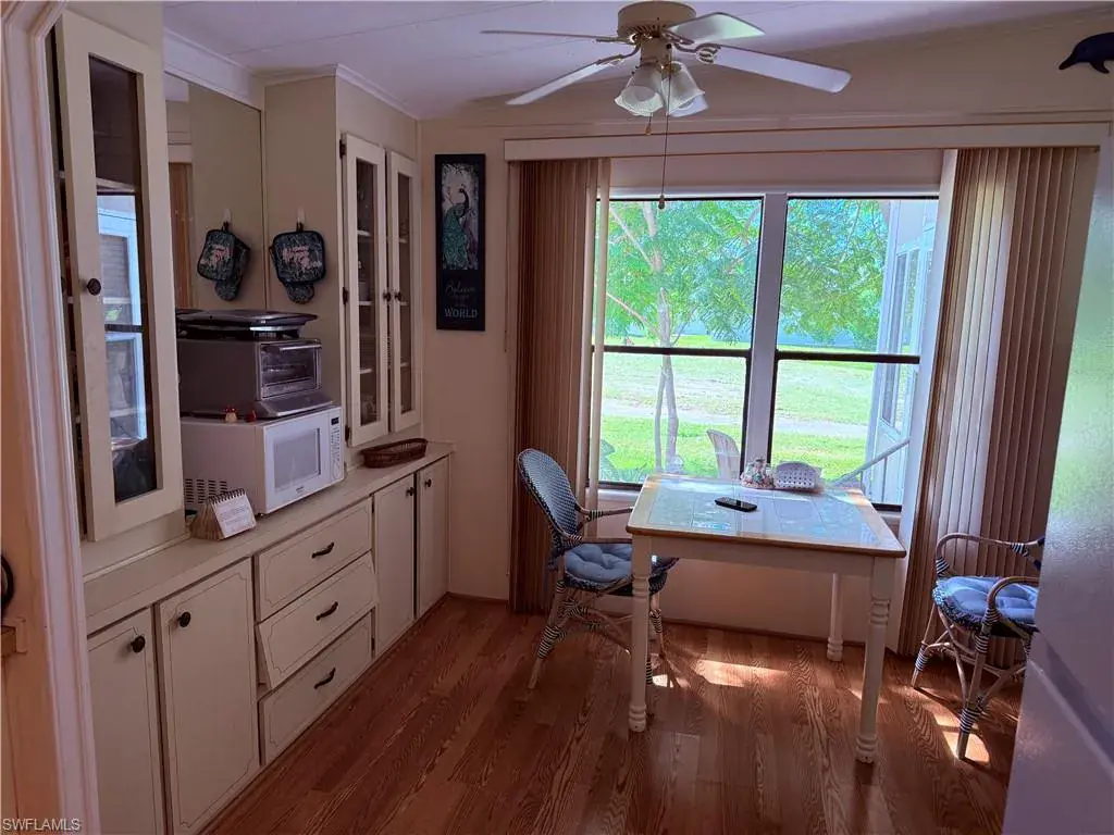 This lovely Mobil home is located in the community of Riviera Golf Estates 55+ community. Enjoy stunning golf course views of the 7th tee and fairway from the bright glass-enclosed lanai, which can also serve as a comfortable third bedroom or flex space. A screened lanai off the carport adds extra room for relaxing or entertaining. It features a newer 2020 A/C and a 2017 roof, providing comfort and peace of mind. Conveniently situated just a few miles from Downtown Naples, beautiful beaches, shopping, and dining, this property offers the perfect opportunity to enjoy the best of the Florida lifestyle in a quiet and active neighborhood.