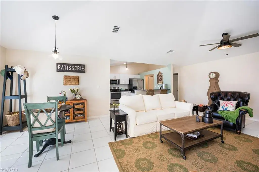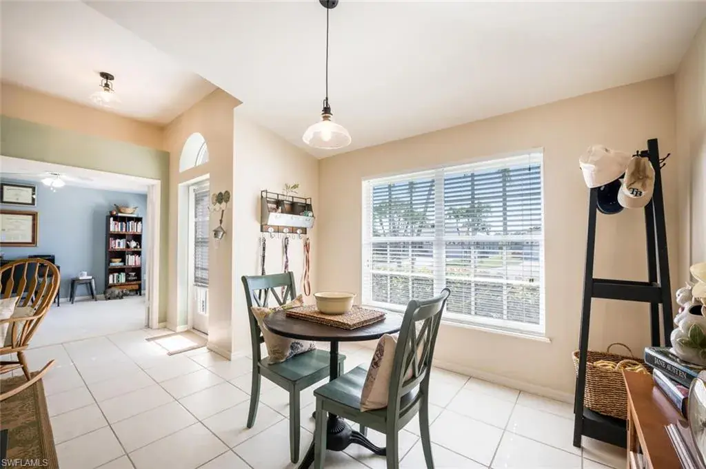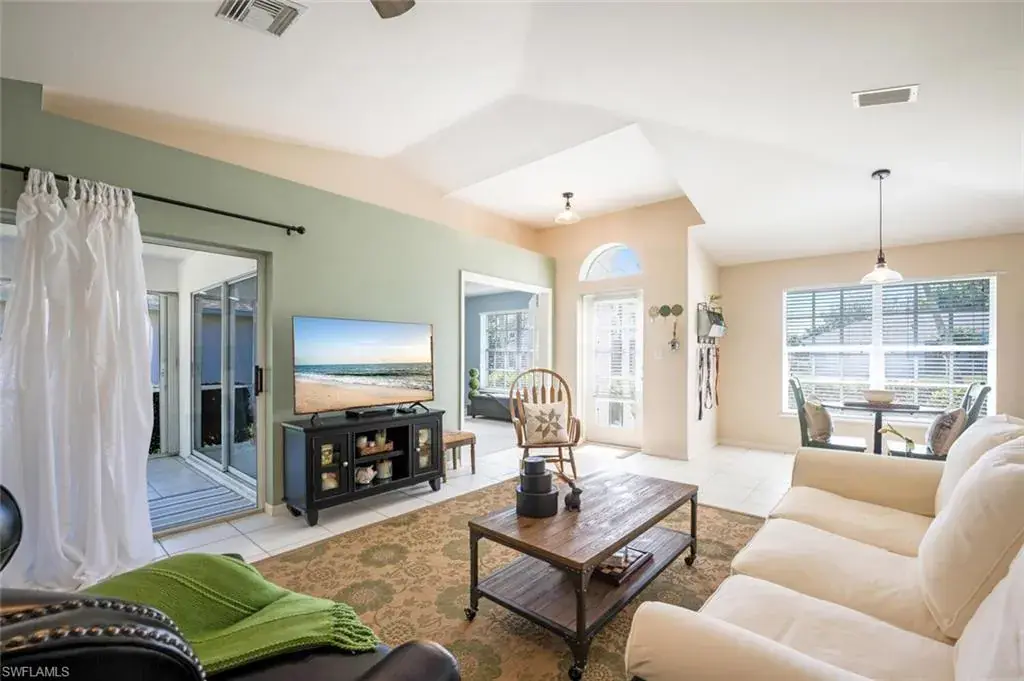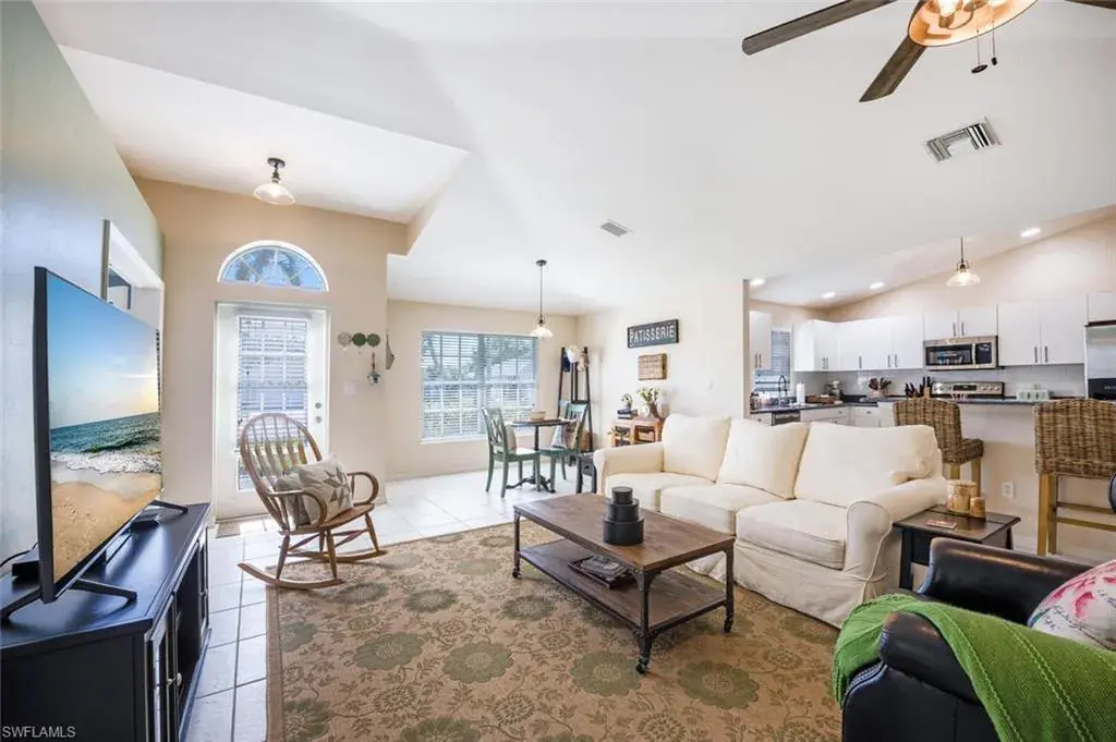 This attractive and well-maintained 2BR plus den home has excellent curb appeal, a bright spacious interior via the open floor plan, over-sized lanai (398 s/f) accessible from three different rooms, and is priced to sell! There are vaulted ceilings and tile flooring in the main living areas. The kitchen has charcoal gray quartz countertops and stainless-steel appliances. The washer/dryer (which are in the utility room), A/C, sprinkler heads/control panel, and the bathroom fixtures were all replaced in 2023. A new roof was put on in 2021 and there are storm shutters for all the windows. The den could easily be used as a third bedroom. This home is the definition of move-in ready and is not in a flood zone. The community has an HOA fee of just $144/mo. (includes your basic internet) and its many amenities include a newer solar-heated saltwater pool with lap lanes, tennis/pickleball/shuffleboard/bocce courts, exercise room, billiards room, library, and a large clubhouse with a very active social calendar. Riviera Golf Estates is just a short drive from Downtown Naples, gorgeous beaches, and many shopping and fine dining options, and is hands down one of the best deals you’ll find in all of Naples!
