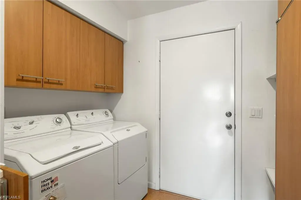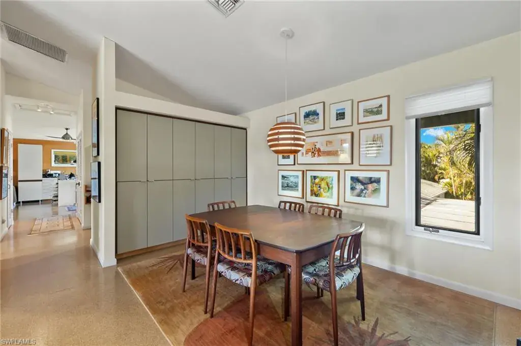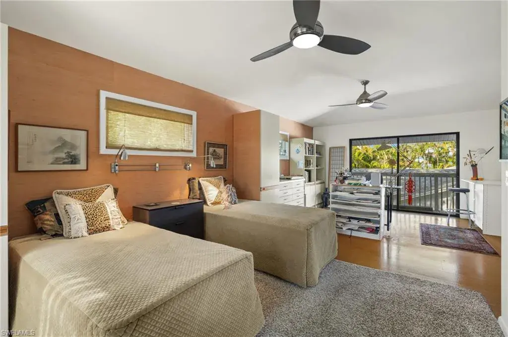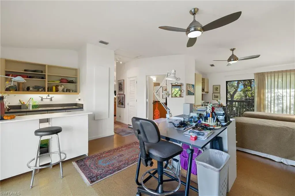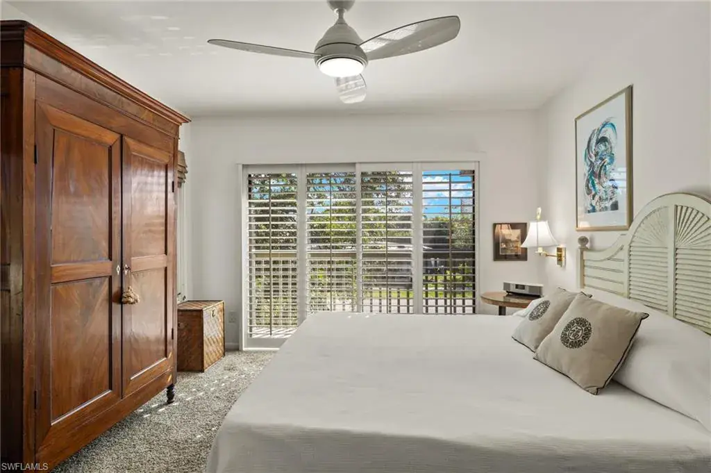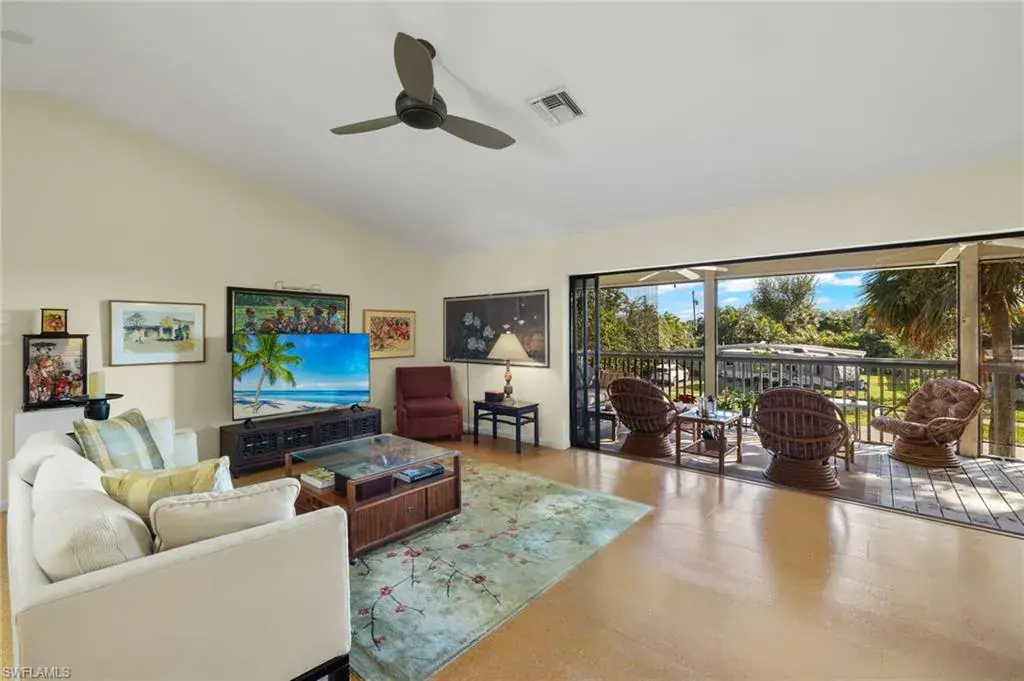 Discover this custom home located minutes from Olde Naples, White sand beaches beaches and shopping dining and entertainment of 5th Ave. South, and 3rd St. South. This distinctive home features a spacious second-floor layout, complete with an oversized screened porch perfect for unwinding and enjoying the peaceful views. Each unique room is designed with special touches, including a gourmet kitchen equipped with a gas and electric cooking options. The expansive living room and dining area boast wall-to-wall sliding doors that open to a generous porch, enhancing the indoor-outdoor living experience. The master bedroom suite includes a well-organized walk-in closet, double vanities, and a tiled walk-in shower. The extra-large second bedroom can easily be adapted into two rooms or utilized as a spacious mother-in-law suite, complete with a full bath. As an added bonus, the first floor features a roomy air-conditioned studio with a private entrance, a separate workshop, and two large carports with roofing. This meticulously maintained home includes impact windows, a new roof, and a new A/C system. Do not miss your opportunity to own a one-of-a-kind home in the heart of Naples!