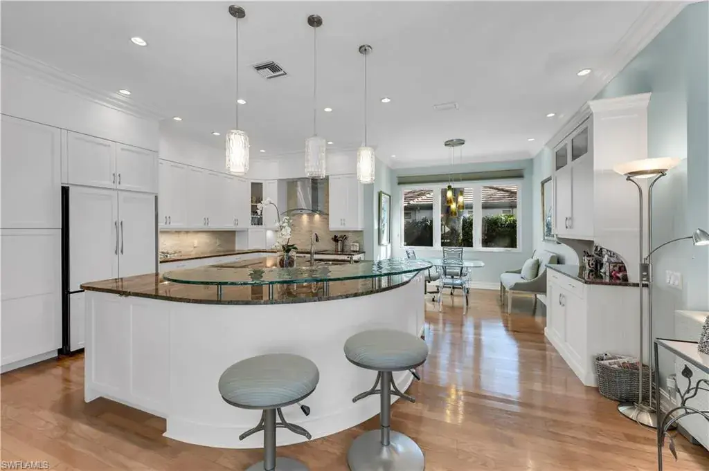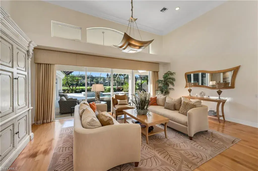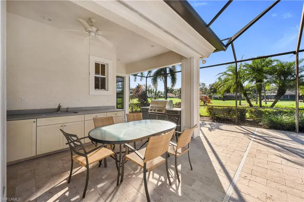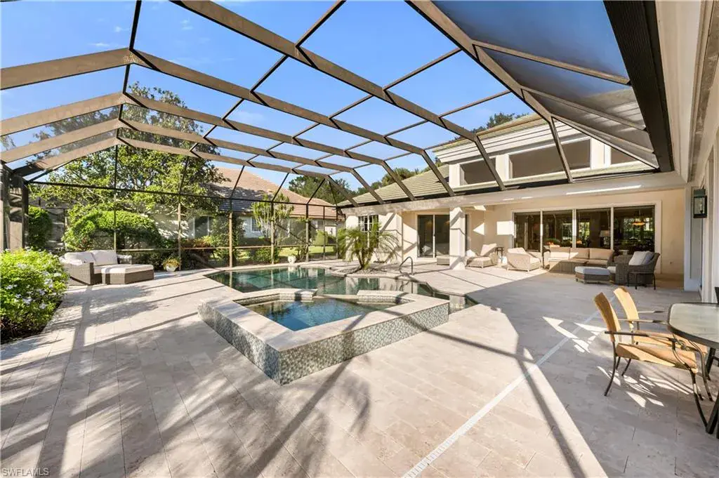 Located in the gorgeous Wyndemere development of Rosemeade, we are proud to feature this spacious recently renovated 4 bedroom, 3.5 bath estate home which features over 3500 square feet on over a third of an acre lot. Renovations include encompassing the outdoor patio into the kitchen, adding 100 square feet to the room. The kitchen island and cabinets were redesigned as well as the dry bar. Wood flooring has been installed through the living room, kitchen and into the family room area. All four of the bathrooms have also recently been renovated. The primary bedroom features a sitting room with views of the pool area. The pool and deck have also recently been refurbished. The outdoor area features a 30’ X 15’ pool, hot-tub and an outdoor kitchen and terrific views of the 2nd hole on the White Golf Course. Three air conditioner units including one for the garage. Very private on street with large homes and beautiful landscaping, quiet cul de sac. Wyndemere Country Club is conveniently located minutes to the beach and downtown Olde Naples. Wyndemere offers a 27-hole golf course which was designed by Arthur Hills, 10 Har Tru tennis courts, 7 pickleball courts, bocce, croquet and fitness center with spa.