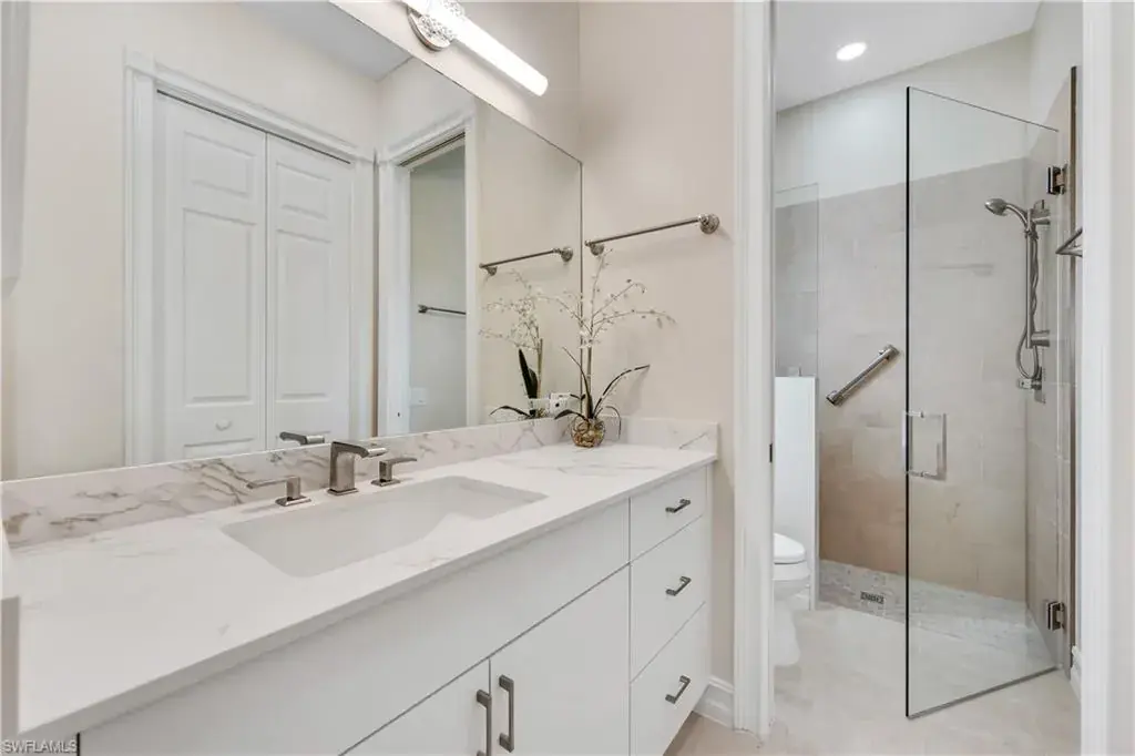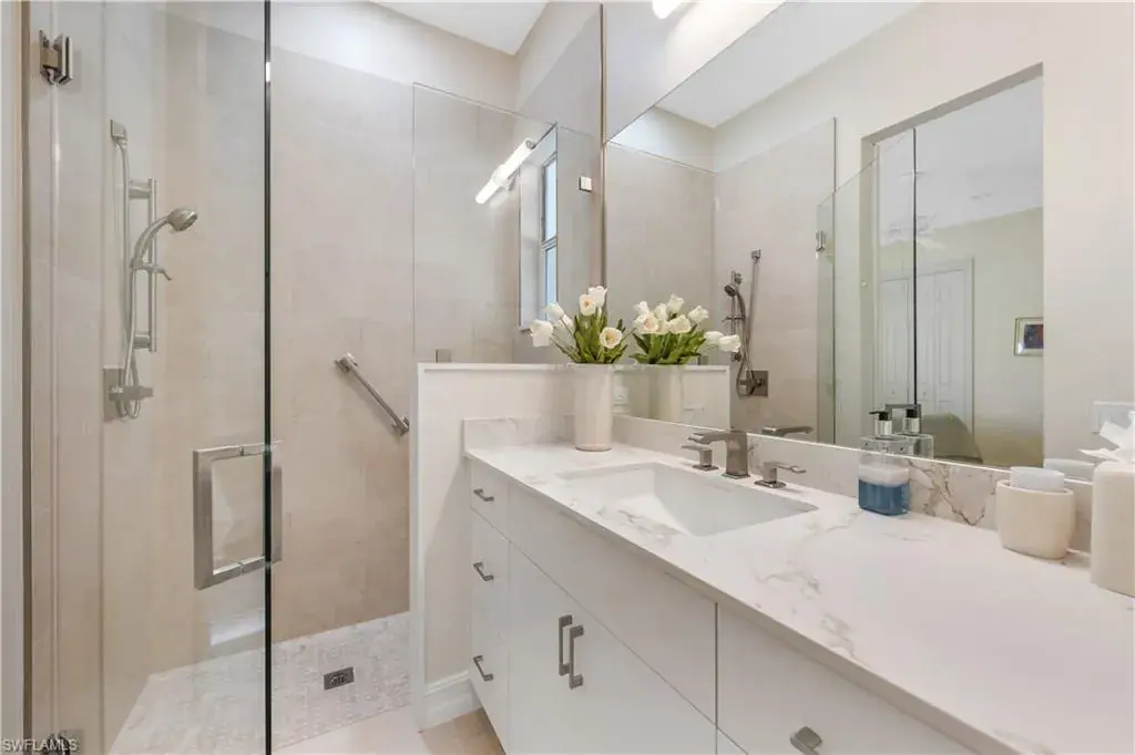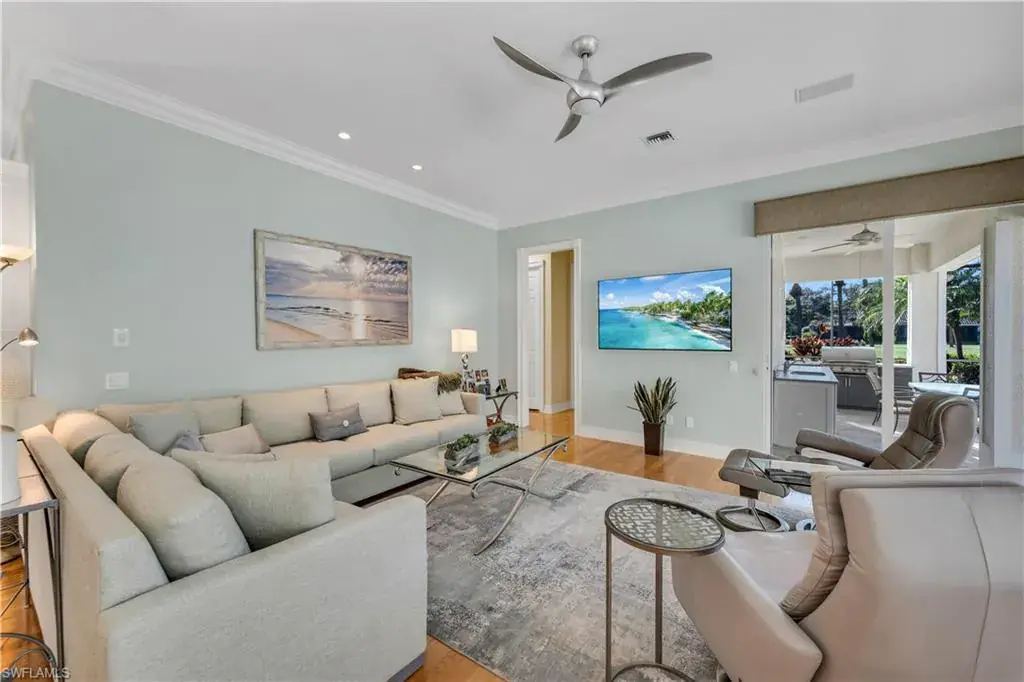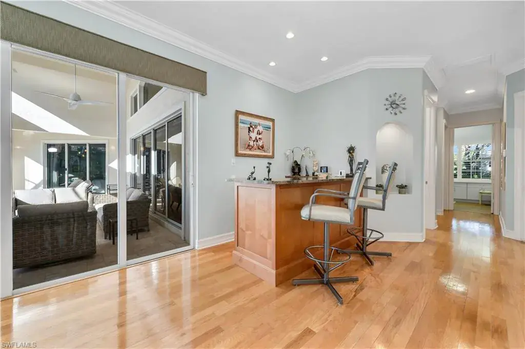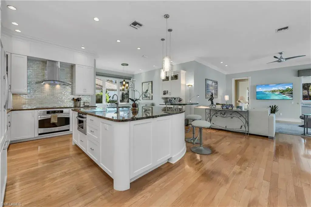Located in the gorgeous Wyndemere development of Rosemeade, we are proud to feature this spacious recently renovated 4 bedroom, 3.5 bath estate home which features over 3500 square feet on over a third of an acre lot. Renovations include encompassing the outdoor patio into the kitchen, adding 100 square feet to the room. The kitchen island and cabinets were redesigned as well as the dry bar. Wood flooring has been installed through the living room, kitchen and into the family room area. All four of the bathrooms have also recently been renovated. The primary bedroom features a sitting room with views of the pool area. The pool and deck have also recently been refurbished. The outdoor area features a 30’ X 15’ pool, hot-tub and an outdoor kitchen and terrific views of the 2nd hole on the White Golf Course. Three air conditioner units including one for the garage. Very private on street with large homes and beautiful landscaping, quiet cul de sac. Wyndemere Country Club is conveniently located minutes to the beach and downtown Olde Naples. Wyndemere offers a 27-hole golf course which was designed by Arthur Hills, 10 Har Tru tennis courts, 7 pickleball courts, bocce, croquet and fitness center with spa.