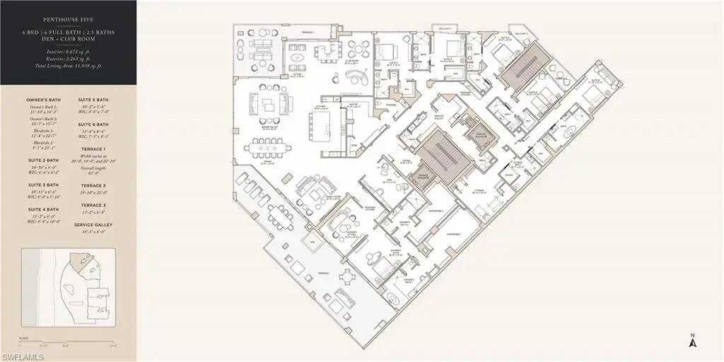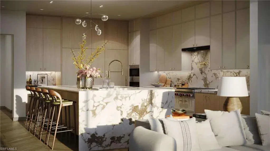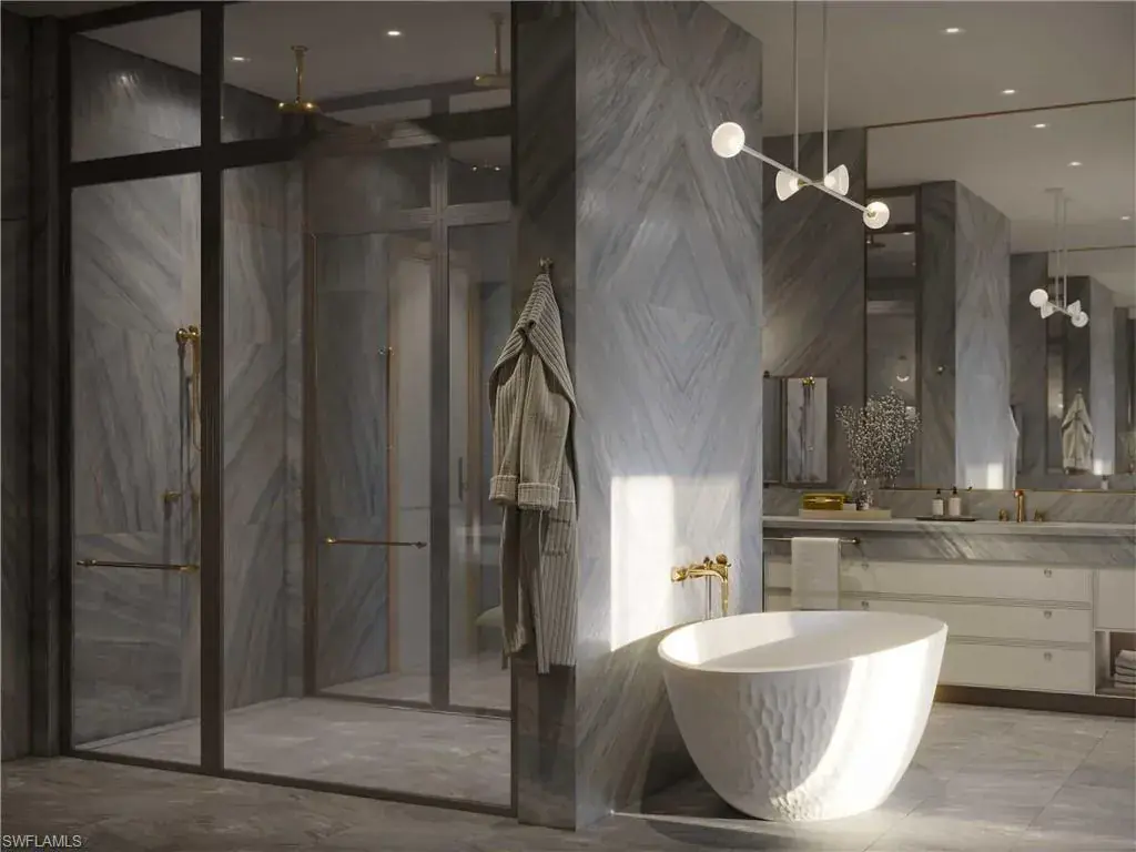 A True One-of-a-kind Penthouse. Located on Naples Miracle Mile on 5 pristine acres of direct beachfront, Rosewood Residences Naples offers a collection of 42 stylized, artful, customizable residences with unobstructed Gulf of Mexico views. Floor Plans vary from 4,226 to 9,673 square feet of living space, ceilings heights up to 11’6” to 12’6” and each offers expansive sunset terraces. Sophisticated design by MHK Architecture. Elegant and elevated interior design by Lillian Wu Studio, NYC. Managed by Rosewood Hotels and Resorts, the leading global lifestyle and hospitality management group known for their one-of-a-kind luxury hotels, resorts, and residences in 21 Countries. 24/7 concierge, security and valet. Exceptional indoor and outdoor facilities offer an intimate, private club atmosphere. Private, Resident only, waterfront dining, world-class fitness center with options for private training & yoga, sun deck, 75-ft zero-edge lap pool, resort-style pool, pool shelf chaises, poolside cabanas, day beds, multiple spas and firepits, and bocce courts. Towel, food & beverage service. Cold jet showers, sauna & steam room & private massage/treatment rooms. Soc. lounge, game room, 3 guest suites. Beach chair and umbrella service. Outdoor pursuits program including kayaking & Stand Up Paddle boards. Bicycle storage. Association-owned Residents use street legal golf carts. Residence features and Finishes include Expansive kitchen: Wolf, Sub-Zero, Waterworks plumbing fixtures, Rocky Mountain hardware and Irpinia cabinets. Summer kitchen with gas grill. Separate service galley with washer, dryer, sink, refrigerator/freezer, microwave, oven, dishwasher.