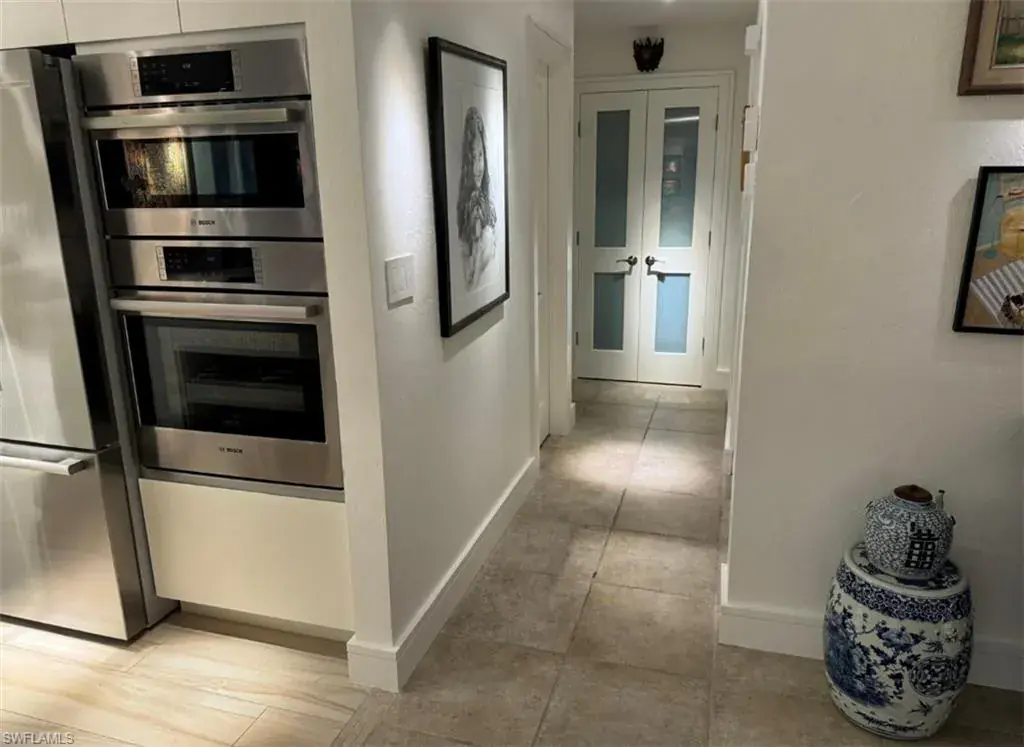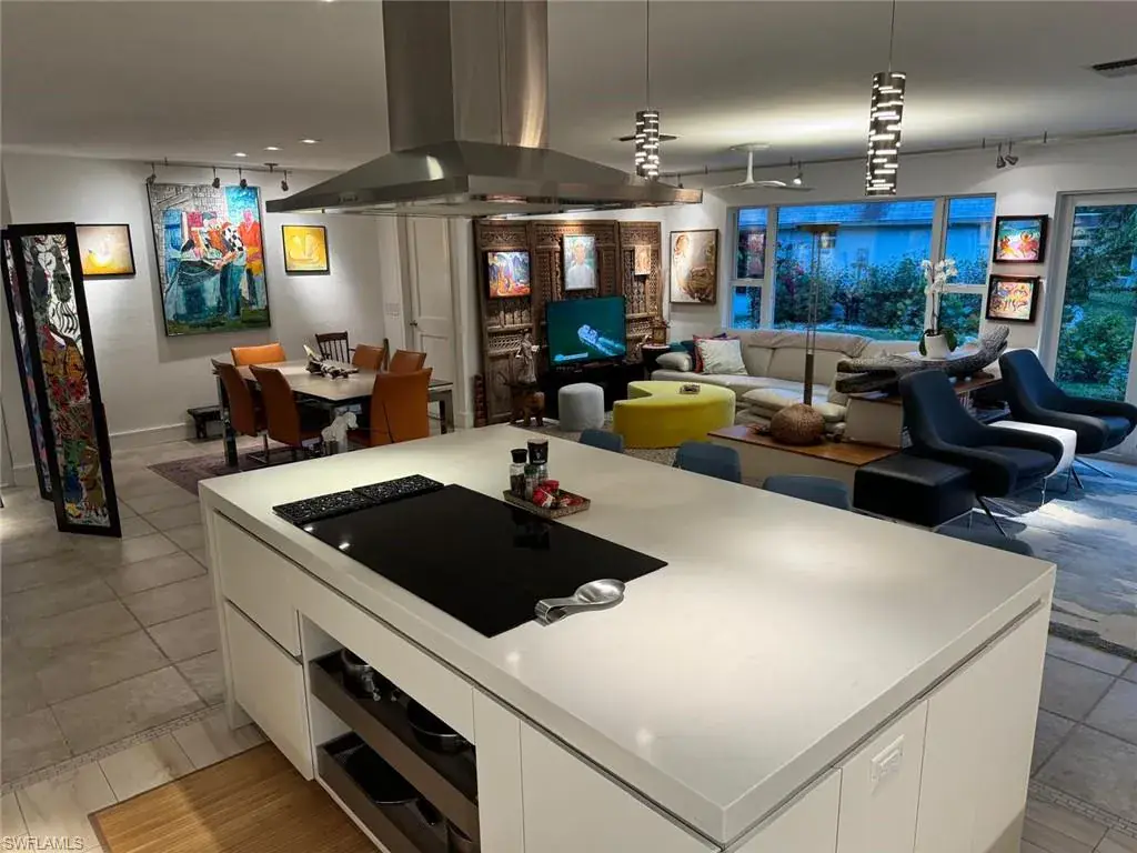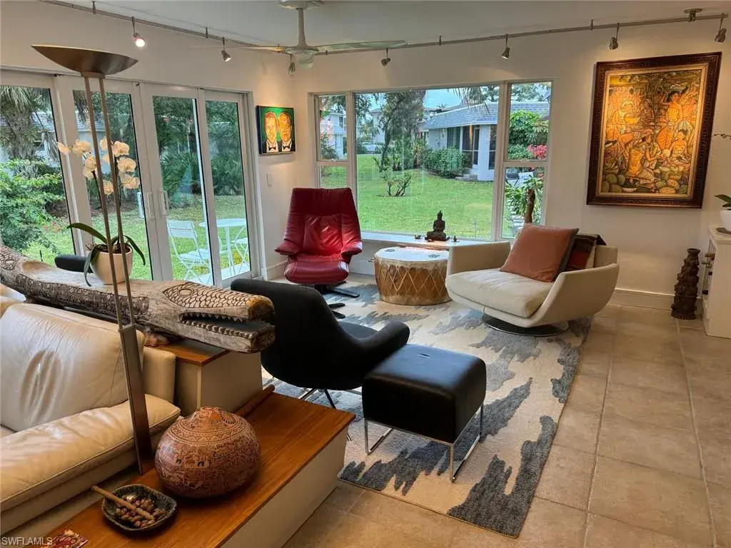 Experience modern convenience in this exquisitely renovated two-bedroom, two-bath detached villa, ideally located just one mile from Old Naples’ 5th Ave. S & the City of Naples’ beaches. Bathed in natural light from south and west exposures, the generous Great Room seamlessly combines a deluxe kitchen, dining area for ten, cozy TV lounge, and sunroom with serene garden views framed by new hurricane-rated windows and sliding doors. The kitchen is a culinary dream, featuring sleek custom cabinetry, white quartz countertops with a waterfall island, a stainless farmhouse sink, metallic and glass tile backsplash, and premium Bosch appliances, including a five-burner induction cooktop. Custom designer bathrooms with tile accents and walk-in closets complement the home’s elegance, while a state-of-the-art Lutron web-controlled lighting system enhances the ambiance. With thoughtful upgrades throughout, including new appliances, A/C, and hot water systems, this stunning home offers a seamless blend of modern sophistication and functional comfort, just moments from the heart of Old Naples. Notable features & Improvements: – Lighting package from Wilson Lighting – Quartzite countertops in bathrooms and kitchen with waterfall kitchen island with stainless overhead vent – Bosch appliance package – Custom cabinetry throughout by Inspired Woodworking – New A/C system, hot water heater, refrigerator, dishwasher, and washer/dryer.