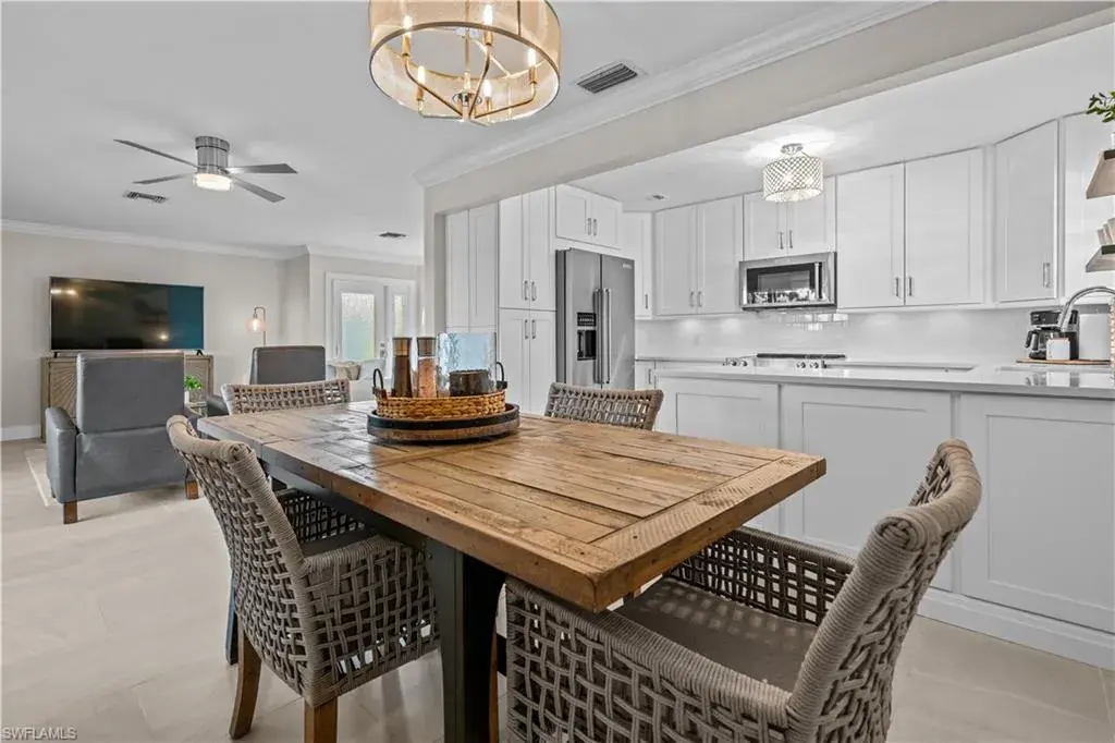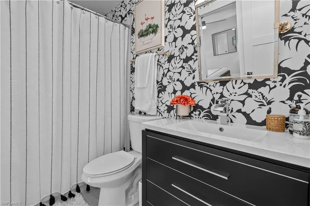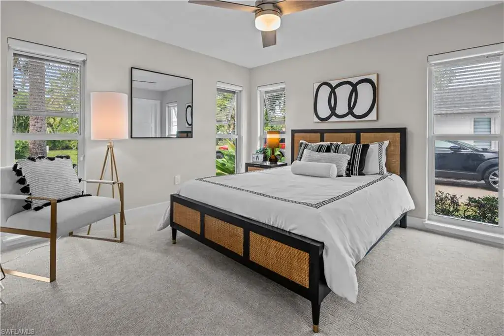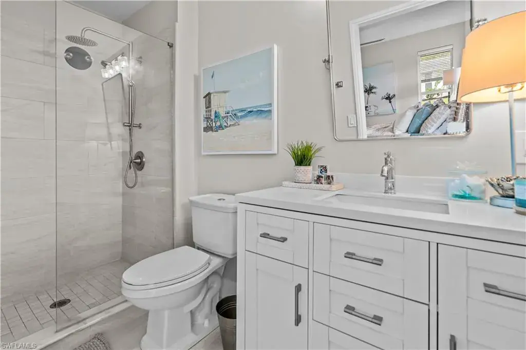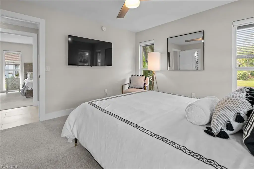 Incredible investment opportunity in a PRIME Naples location! Just 2 miles from the beaches and iconic 5th Avenue, this beautifully updated Coastal Chic 2-bedroom, 2-bath home with a private garage offers a bright, open living space. This property has been thoughtfully upgraded with a new roof (2022), new brick-paver driveway, HVAC replaced in 2022, and full hurricane protection including impact glass, 12-foot sliding doors, and hurricane-rated front and garage doors. The lanai features motorized privacy shades, and a retractable screen on the front door allows for breezy indoor-outdoor living. Inside, the kitchen boasts flat-panel cabinetry, soft-close drawers, slide-out shelving, upgraded island and pantry panels, and KitchenAid stainless appliances. Additional high-end touches include upgraded 18×36 tile flooring, Karastan carpeting, solid wood 3-panel doors, chrome hardware, 6-inch baseboards, shiplap accent walls, and custom closet organizers throughout. With its unbeatable location, premium finishes, and low-maintenance upgrades, this property is move-in ready and an exceptional investment property for seasonal renting, full-time living, or a high-demand vacation rental.