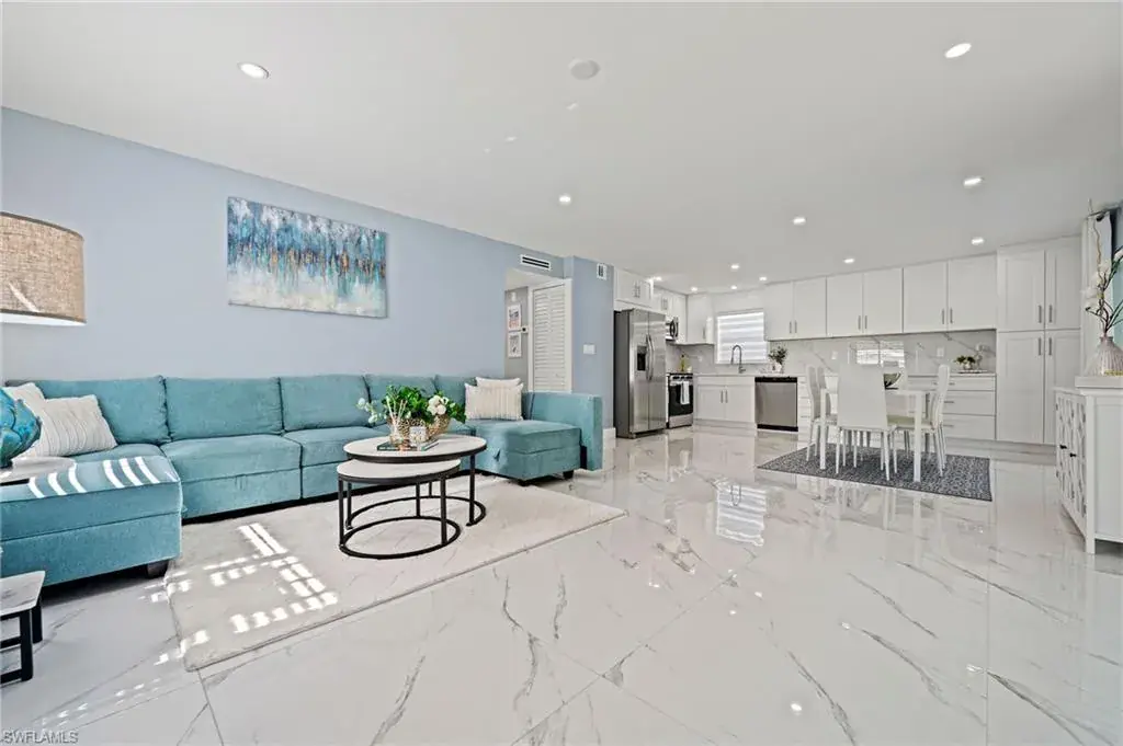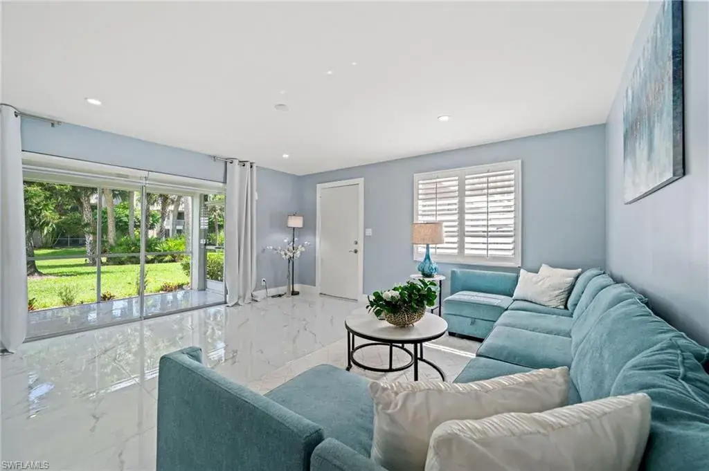 Are you ready to embrace the Naples lifestyle? Welcome to your new home—fully designer upgraded construction including a new floor plan from the studs back a 2-bedroom, 2-bathroom w/ added storage room, private laundry, and expansive sought after southern exposure 28-foot lanai right in the heart of Old Naples! Just steps away from pool, pickleball, and tennis courts, and within walking distance to downtown shopping, dining, and fishing spots, plus a quick bike ride to the beautiful beaches—this location can’t be beaten- Only 2 miles to the beach! Easy access to all the outdoor activities Naples has to offer. Fees include nice reserves cable, internet, TV, water, sewer, etc. making life here hassle-free. Recently renovated in 2024, this condo features important upgrades including impact windows, new electrical & plumbing, new baths & kitchen, new roof & buildings scheduled for this year with no assessment, 2023 water heater, and reliable 2016 A/C. The open layout connects the living room, dining area, and kitchen, which comes equipped with designer upgrades—perfect for entertaining or casual meals. This incredible condo is ready for you to move in and start enjoying the Naples lifestyle! We’ve provided an alternate furniture pkg as well. Don’t miss out—schedule a showing today and see for yourself what makes this place so special!