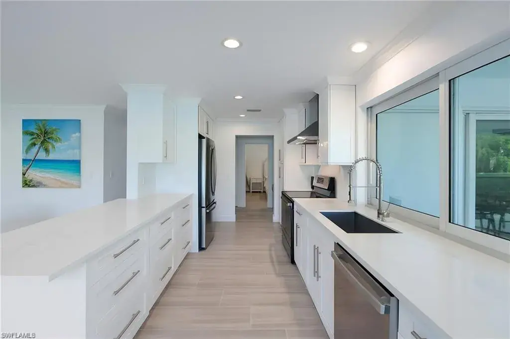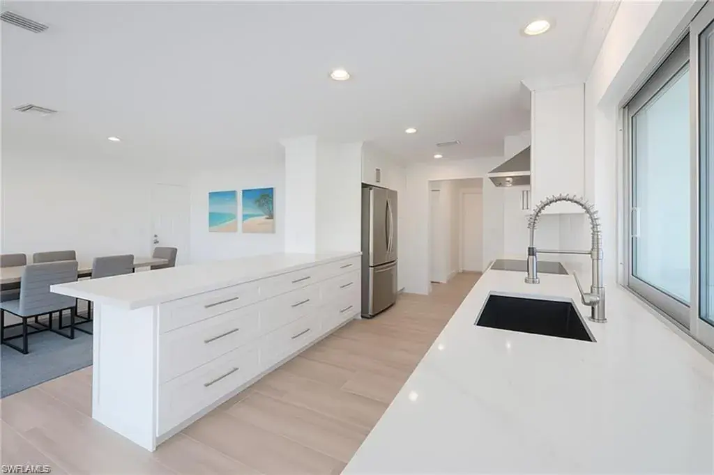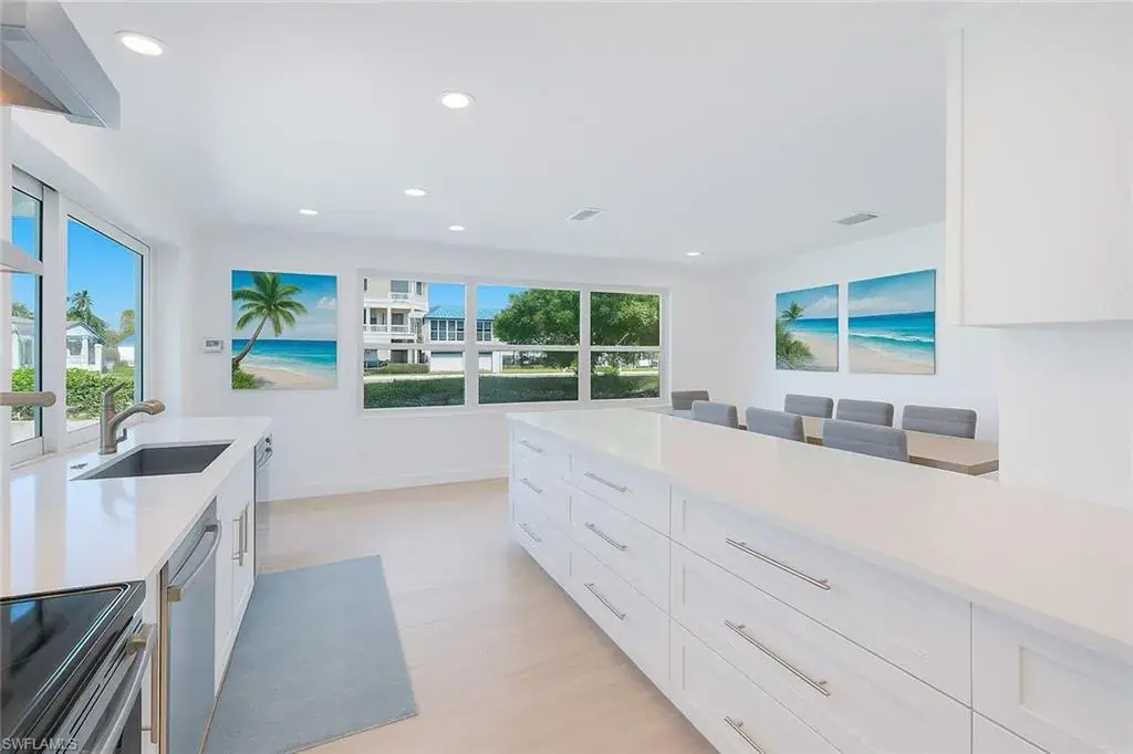 125 feet of waterfront on a tranquil cul-de-sac in Royal Harbor sets the stage for this exceptional Naples residence—an ideal retreat for boating enthusiasts and those seeking the quintessential coastal lifestyle. Located just off prestigious Kingfish Road, this stunning property provides direct no-bridge access to the Gulf of America, with a private boat dock and lift offering effortless exploration of Naples’ scenic waterways. Your boat is well protected from the wake of the bay and gulf, ensuring a calm and secure setting rarely found in such a prime location. Completely remodeled and move-in ready, the home features 3 bedrooms plus a den and 2 bathrooms, blending modern luxury with functional design. PGT hurricane impact windows, doors, and sliders throughout ensure peace of mind, enhanced energy efficiency, and elegant curb appeal. Inside, a spacious updated kitchen boasts abundant counter space and new stainless steel appliances, opening to a large living area designed for both comfort and entertaining. A pass-through kitchen window and expansive sliding doors create a seamless indoor-outdoor flow. Step outside to the fenced lanai, where a sparkling pool and spa are surrounded by lush landscaping, creating a private oasis for relaxation or entertaining. The roomy primary suite includes a walk-in closet and a beautifully finished bathroom. Beyond the property itself, the location is unbeatable—just minutes from 5th Ave S, Downtown Naples, the Naples Pier, Naples Airport, and a wide array of dining and shopping options. Whether you’re looking for a day on the water, a sunset on the beach, or an evening in town, everything Naples has to offer is right at your fingertips. This is one of the last opportunities to own a buildable lot on the coveted fingertip streets off Kingfish Road—the most desirable streets in Royal Harbor. Don’t miss your chance to make this exceptional Royal Harbor property yours—schedule your private showing today.