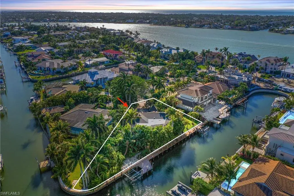 (Never flooded!) The only available Royal Harbor buildable homesite offering almost 200 feet of waterfront on a premier fingertip cul-de-sac. Positioned at a higher elevation than neighboring streets, ensuring added protection and peace of mind from hurricane surge. This exceptional property offers a brand-new roof, a freshly painted exterior, and a rare opportunity to live the ultimate Florida lifestyle. Whether you’re a retiree looking for a beautifully renovated waterfront home or a visionary ready to design your dream estate, this property delivers the perfect canvas. With almost 200 feet of prime waterfrontage, this boater’s paradise features a new composite dock and two boat lifts, which could be easily adapted to accommodate a large yacht. Situated at a higher elevation, this home remained unaffected by Hurricane Ian’s flooding, ensuring peace of mind for future owners. Tucked away in a tranquil cul-de-sac with no through traffic, the property offers a private, serene setting with an enchanting blend of Old Naples charm and modern luxury. The interior is a masterpiece of design, with imported Italian cabinetry, elegant Italian tile flooring, and custom-cut granite throughout. Premium appliances from Wolf, Sub-Zero, Bosch, and Miele elevate the kitchen and living spaces. The spacious master suite features a custom open-closet system and a private patio overlooking the pool and expansive water views, perfect for enjoying stunning sunsets. The guest bath is a true sanctuary, complete with art glass tile and custom granite detailing. Step outside to your private pool and spa, surrounded by lush, meticulously designed landscaping, including towering palms and a park-like atmosphere. Whether relaxing by the water or strolling down to your dock to watch dolphins play, you’ll feel like you’re living in your own secluded paradise. With no-bridge access to the Gulf of Mexico, you can set sail from your backyard directly into the open waters. This is a rare opportunity to secure a prime waterfront location to live in now or build the home of your dreams. Don’t miss out—this property won’t last long.