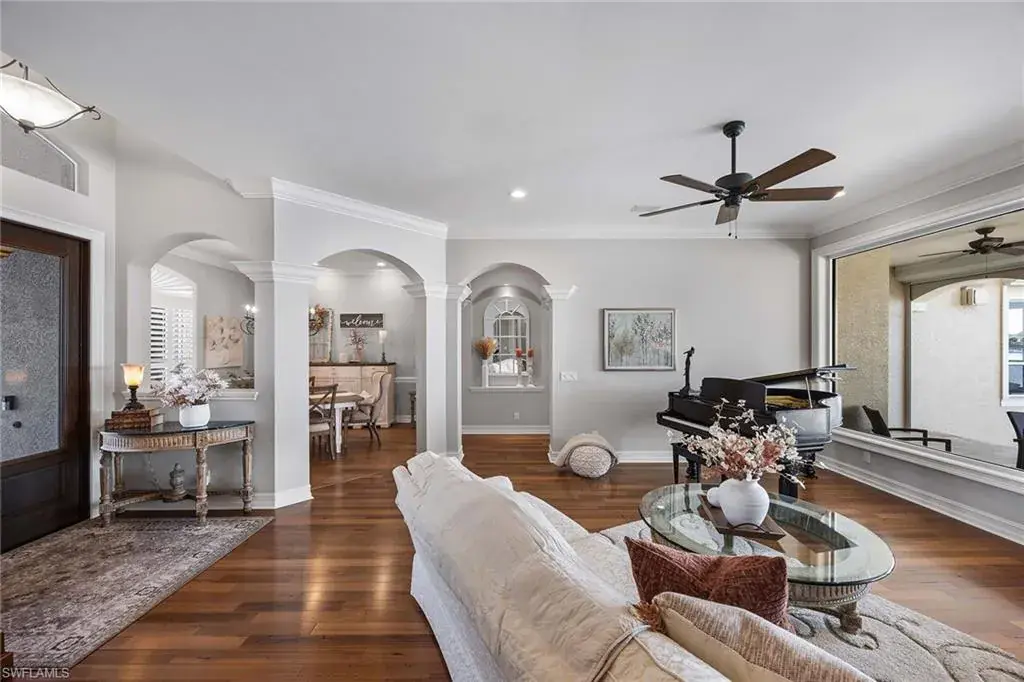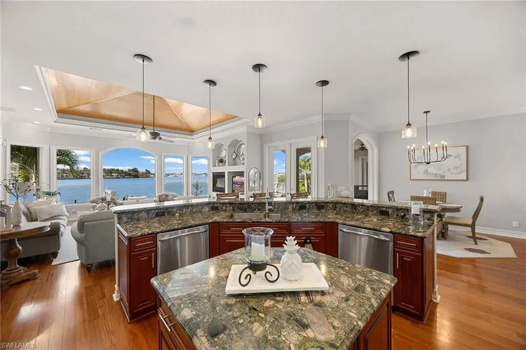 On a prized Kingfish Road open-bay lot in the exclusive Royal Harbor community, this impeccably renovated four-bedroom, four-bath residence, with an additional dedicated office, offers one of Naples exceptional assets: expansive western exposure with panoramic views of Naples Bay. Designed to maximize its breathtaking setting, the home is positioned to capture unparalleled sunsets that paint the sky with vivid color each evening. During the day, you will be able to watch sailboats glide through the Bay. High ceilings and walls of glass invite abundant natural light, framing sweeping water views from nearly every room, and creating a seamless connection between indoor luxury and outdoor beauty. The open-concept interior flows effortlessly for contemporary living and elegant entertaining. A chef-inspired kitchen serves as heart of the home, featuring a gas cooktop, top-tier appliances, stylish custom cabinetry and an oversized island with ample seating, ideal for gatherings of any size. Within five miles of Naples renowned beaches and just moments from the famed dining and boutique shopping of 5th Avenue South, this home blends waterfront tranquility with unmatched convenience. A rare opportunity to own a beautifully updated, sunset-facing estate on one of Royal Harbor’s desired open-bay parcels, where every day feels like a postcard.