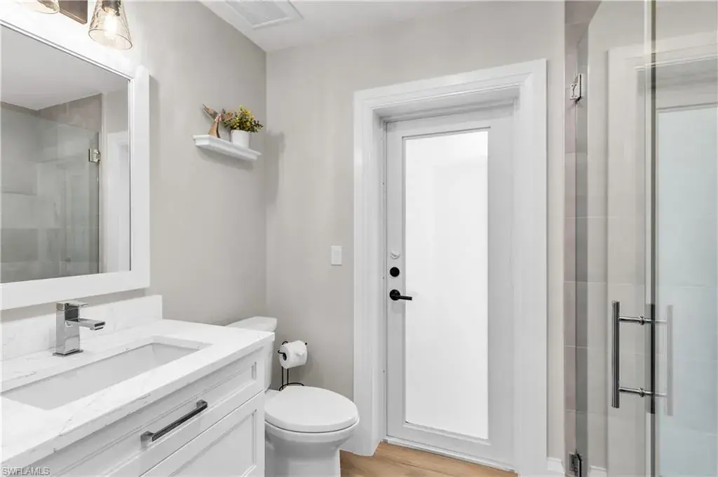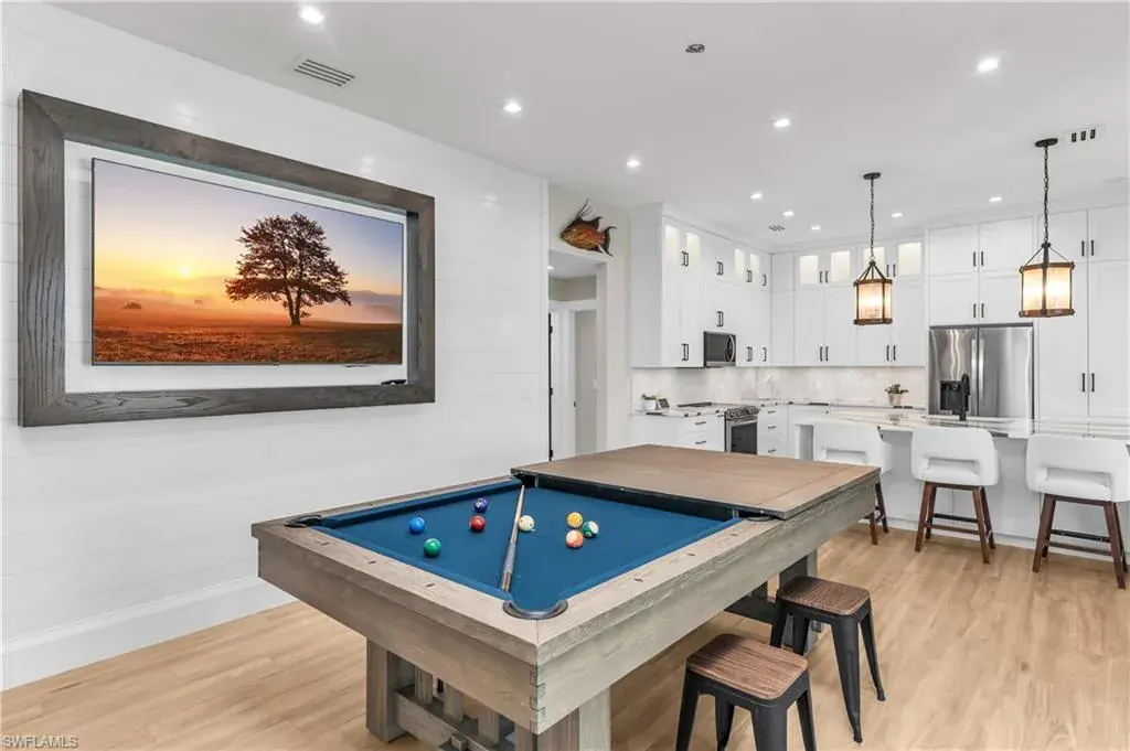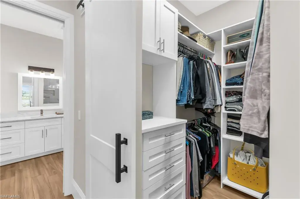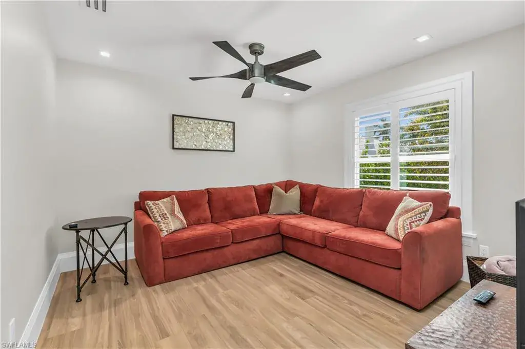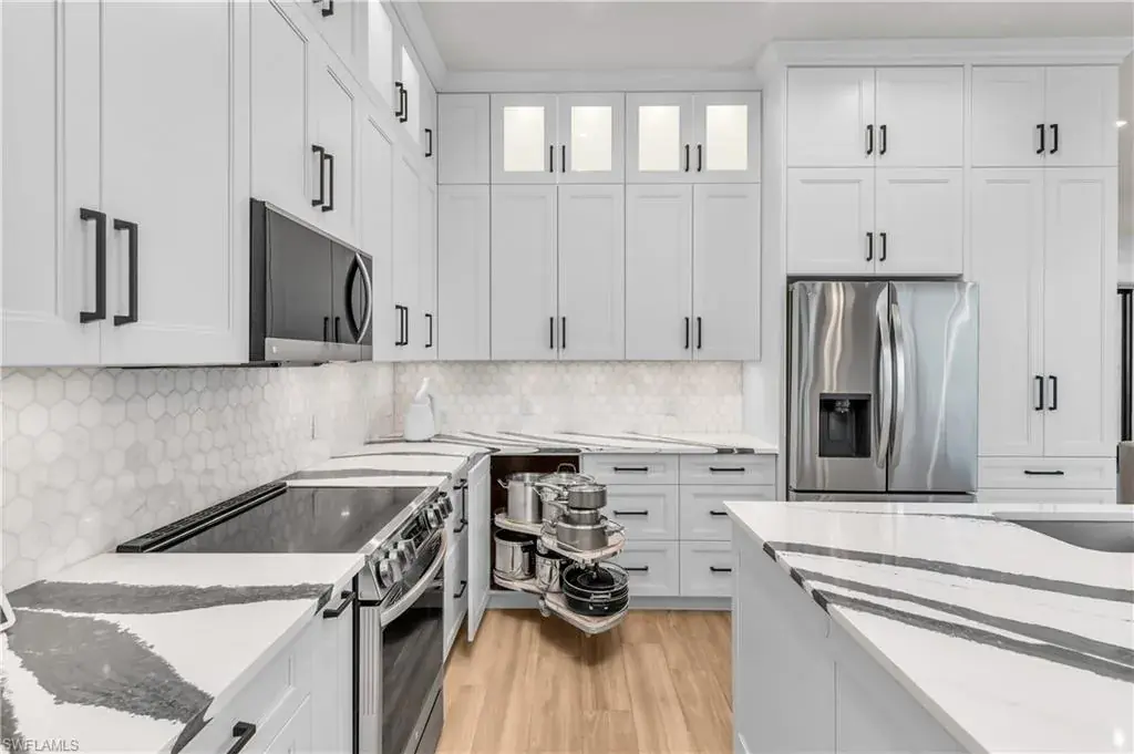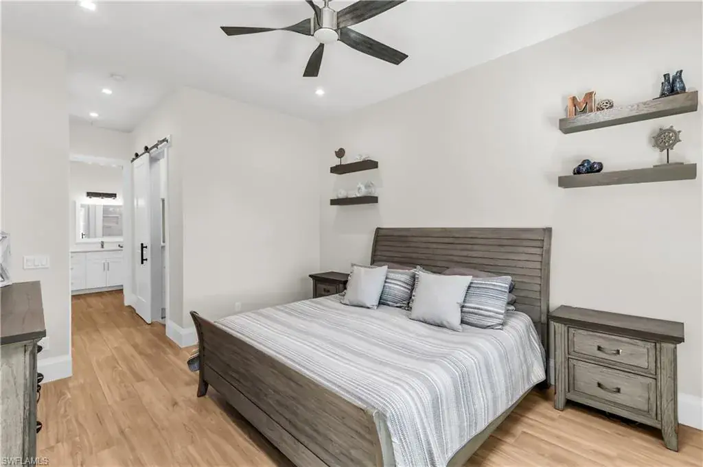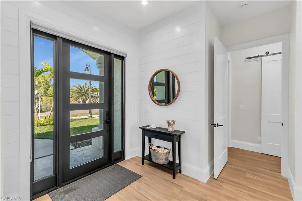 Welcome to your dream home in Royal Palm Golf Estates, a serene community featuring an 18-hole championship-level golf course. A BRAND-NEW POOL was just added, offering the perfect space to relax and entertain! This beautifully designed 4-bedroom, 3-bathroom home offers tranquil lake views and impeccable coastal Florida elegance. Step into the foyer and be greeted by an open-concept floor plan bathed in natural light. High-end finishes and thoughtful details abound, including 8” nickel gap paneling, custom LED lighting, and wood plantation shutters throughout. The chef’s kitchen is a true masterpiece, featuring floor-to-ceiling custom cabinetry with pull-out wood drawers, a built-in pantry, and a stunning Bentley quartz island. A beverage bar with a double-drawer beverage center and a custom-built dining area make this space perfect for entertaining. The home also includes a den with a seamless glass entry door, offering flexibility as a home office or additional living space. The master suite is a private retreat with two closets – one a walk-in with custom wood cabinetry and inserts – and a spa-like master bath with dual vanities and a walk-in shower. Additional highlights include an air-conditioned 2-car garage, hurricane-impact windows and doors, and elegant tile flooring throughout. Custom floating shelving adds a modern touch to the family and master bedrooms, while solid-core doors with exquisite hardware showcase the meticulous attention to detail in this home. Step out to your screened-in lanai, the perfect spot to enjoy your morning coffee as you take in the peaceful sunrise over the lake. The NEW beautiful pool is complete with a paver deck and a fence, creating the ultimate backyard oasis. Imagine relaxing in your private pool, enjoying the Florida sunshine in complete tranquility. Located in a quiet, serene community, this home offers the perfect balance of nature and convenience, just minutes from downtown Naples, beautiful beaches, and world-class amenities. Don’t miss this opportunity to live your Florida dream!