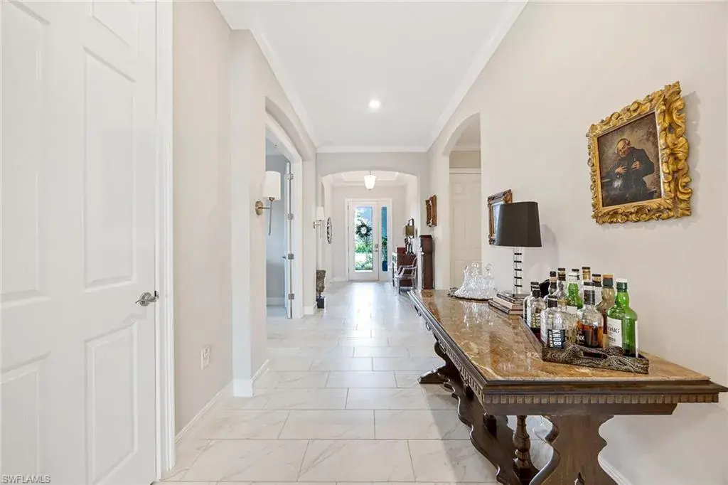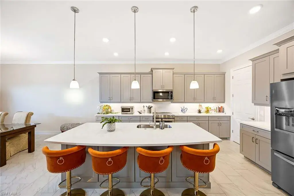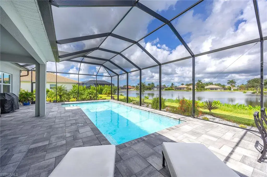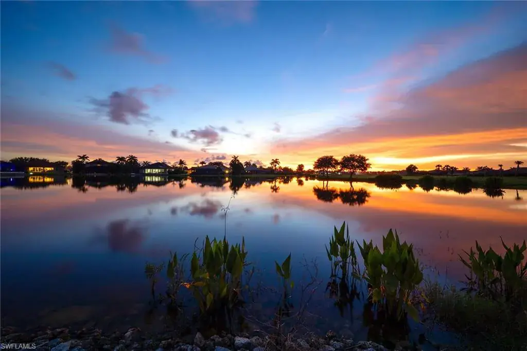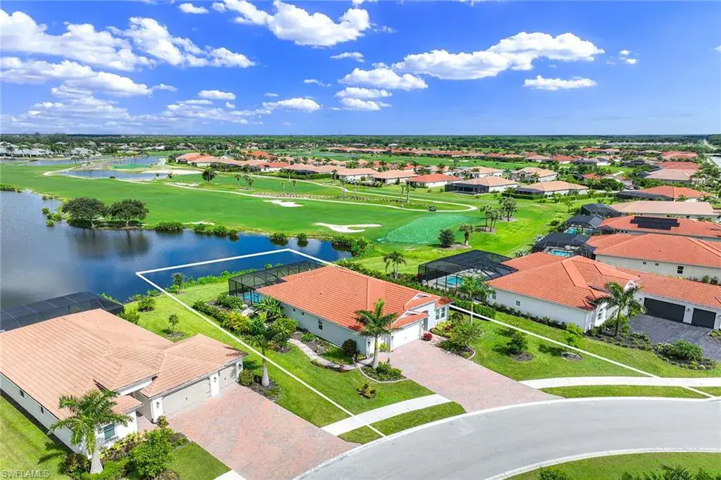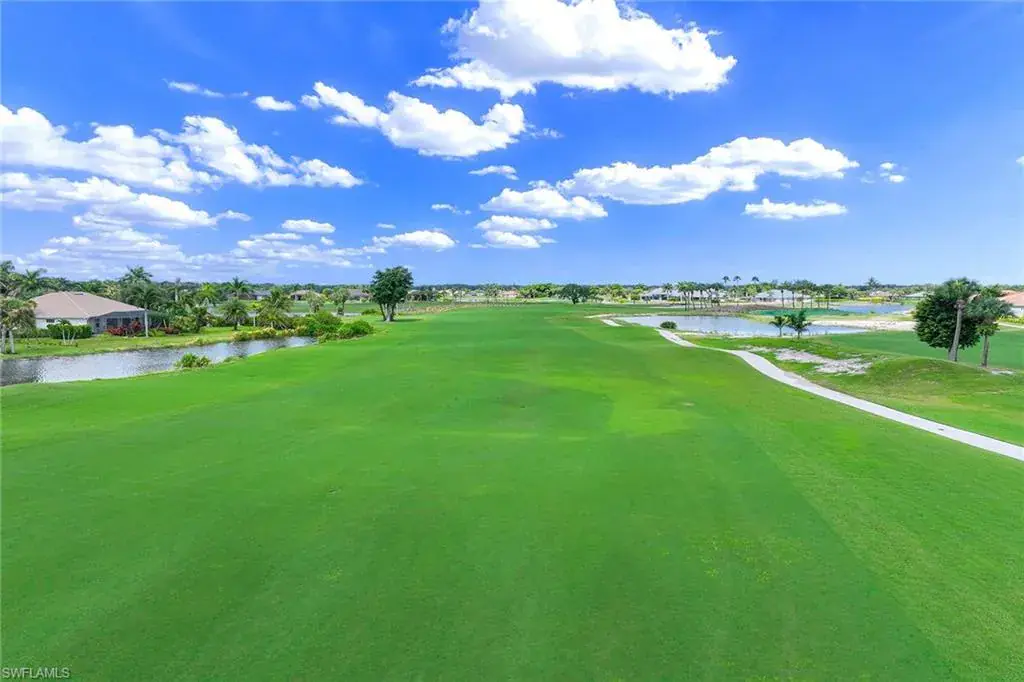 Enjoy refined Florida living in this impeccably maintained residence located at 18652 Royal Hammock Boulevard in Royal Palm Golf Estates. Positioned along the 10th fairway and green of Eagle Lakes Golf Course, this three-bedroom plus den, three-and-a-half-bath home spans 2,585 square feet and offers sweeping golf and water views ideal for sunset enthusiasts. The interior features soaring tray ceilings and statuario-style white tile flooring throughout the main living areas. A wall of 8-foot sliding glass doors in the great room invites natural light and seamless indoor-outdoor living. The gourmet kitchen showcases bright quartz countertops, soft close cabinetry, a spacious center island, ample prep space and a large walk-in pantry—ideal for culinary pursuits. The primary suite is a private retreat with two walk-in closets and a spa-style bath featuring a dual-sink vanity, glass-enclosed shower and linen closet. The dining room, with glass panel windows, offers tranquil views of the expansive lanai and pool. The outdoor living area is designed for entertaining, featuring a custom pool within a screened enclosure and a dedicated outdoor kitchen hookup. A three-car garage and brick-paver driveway provide ample parking and storage. Set on an expansive homesite, this residence blends privacy with proximity to the best of Southwest Florida. Royal Palm Golf Estates is celebrated for its large lots and panoramic golf course vistas. Optional club membership is available, with all residents enjoying access to the community’s restaurant, lounge and pro shop. With optional golf, low HOA fees and no CDD, this home represents one of Naples’ finest values. Experience unparalleled luxury, comfort, and location here, an absolute must-see. Each office is independently owned and operated. Equal Housing Opportunity.