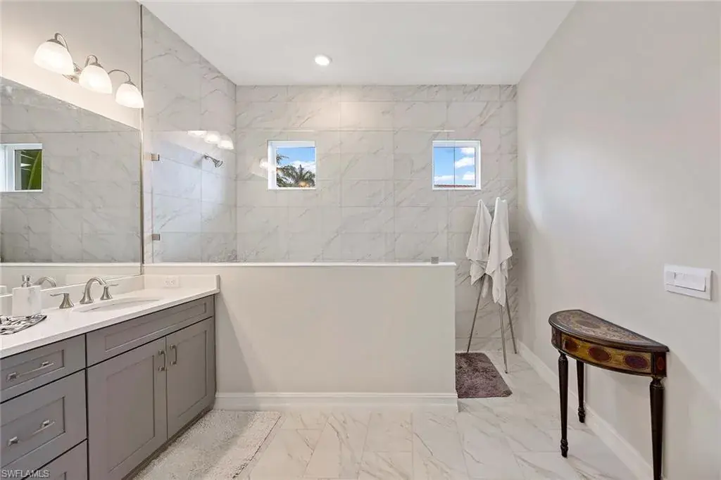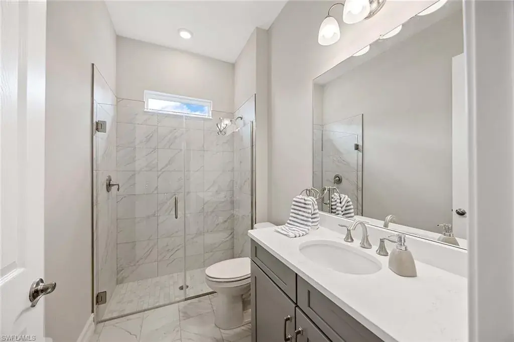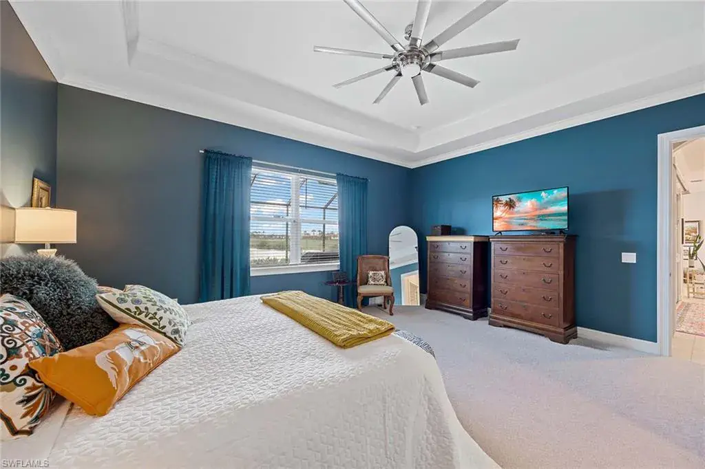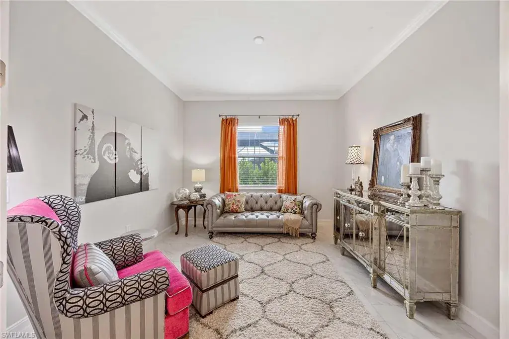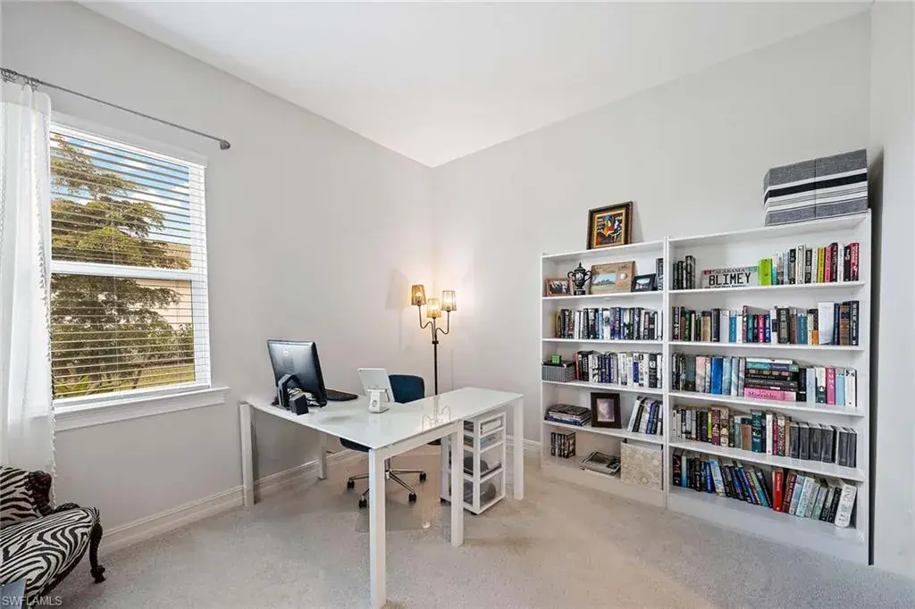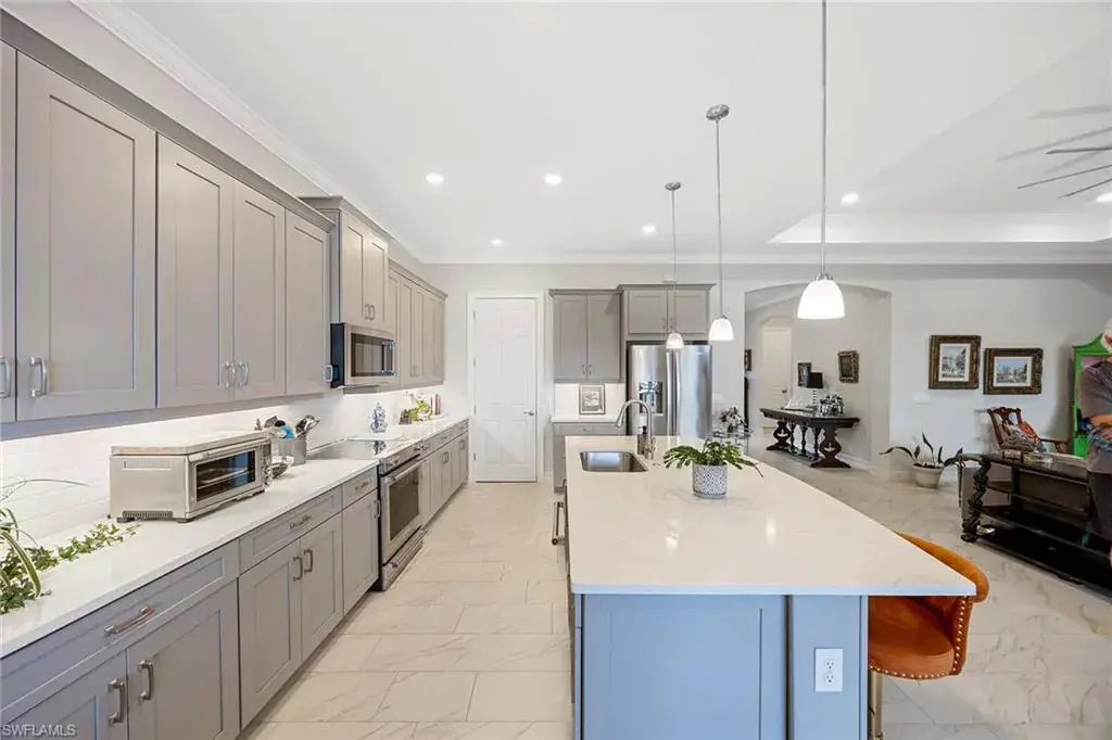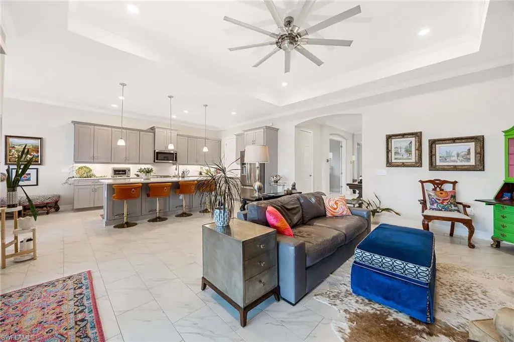 Enjoy refined Florida living in this impeccably maintained residence located at 18652 Royal Hammock Boulevard in Royal Palm Golf Estates. Positioned along the 10th fairway and green of Eagle Lakes Golf Course, this three-bedroom plus den, three-and-a-half-bath home spans 2,585 square feet and offers sweeping golf and water views ideal for sunset enthusiasts. The interior features soaring tray ceilings and statuario-style white tile flooring throughout the main living areas. A wall of 8-foot sliding glass doors in the great room invites natural light and seamless indoor-outdoor living. The gourmet kitchen showcases bright quartz countertops, soft close cabinetry, a spacious center island, ample prep space and a large walk-in pantry—ideal for culinary pursuits. The primary suite is a private retreat with two walk-in closets and a spa-style bath featuring a dual-sink vanity, glass-enclosed shower and linen closet. The dining room, with glass panel windows, offers tranquil views of the expansive lanai and pool. The outdoor living area is designed for entertaining, featuring a custom pool within a screened enclosure and a dedicated outdoor kitchen hookup. A three-car garage and brick-paver driveway provide ample parking and storage. Set on an expansive homesite, this residence blends privacy with proximity to the best of Southwest Florida. Royal Palm Golf Estates is celebrated for its large lots and panoramic golf course vistas. Optional club membership is available, with all residents enjoying access to the community’s restaurant, lounge and pro shop. With optional golf, low HOA fees and no CDD, this home represents one of Naples’ finest values. Experience unparalleled luxury, comfort, and location here, an absolute must-see. Each office is independently owned and operated. Equal Housing Opportunity.