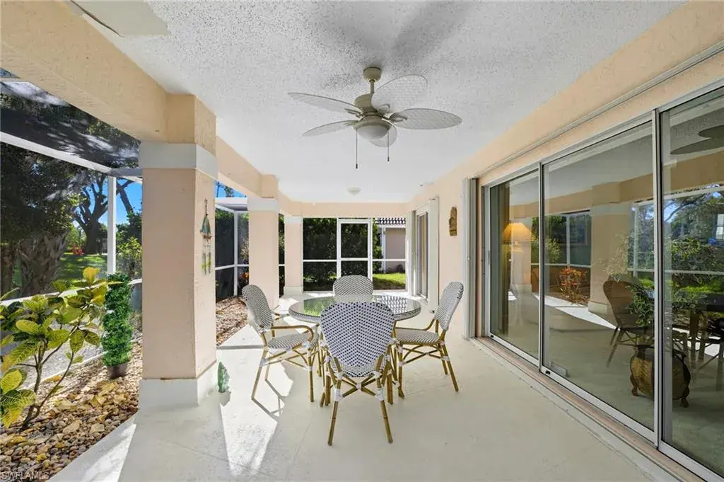 Welcome to Royal Wood, a rare bundled golf community in Naples where an immediate full golf membership is included with your purchase—no waitlist, no delays, just effortless access to the Florida golf lifestyle you’ve been dreaming of. This 3-bedroom, 2-bath, 2-car garage home offers 1,765 square feet under air and showcases a bright, open design with vaulted ceilings, spacious bedrooms, a formal dining area, and a roomy eat-in kitchen perfect for both casual mornings and entertaining evenings. The owner’s suite features private lanai access along with a well-appointed bath offering dual sinks, a soaking tub, and separate shower. Step outside to an oversized screened lanai and enjoy tranquil views that make every day feel like a retreat. Beyond the home, the community itself is a golfer’s paradise—an 18-hole championship course with multiple tees, two practice areas, a driving net, and walk-on privileges. Golf and social memberships are active the day you close, with seasonal reciprocals available and 70 brand-new golf carts making it easy to hit the course. Off the fairway, Royal Wood brings neighbors together with a vibrant social scene and an amenity-rich clubhouse featuring both fine and casual dining, a bar, pro shop, library, and fitness center with a variety of classes. Social life thrives here with live music, happy hours, karaoke nights, trivia, bingo, golf scrambles, card games, holiday dinner dances, and more—all designed to make every day as lively as you choose. Low HOA dues mean incredible value, while the location puts you close to everything that defines Naples living. Just six miles from 5th Avenue South, 3rd Street South, and the world-famous Gulf beaches, you’ll also find yourself minutes from Naples Pickleball Center, Celebration Park’s food truck hub, Tin City, Sugden Regional Park, Naples Botanical Gardens, and top-rated medical facilities. A short drive takes you to Marco Island or the Isles of Capri, where even more dining, boating, and water adventures await. Whether you’re teeing off on a championship course, enjoying dinner with friends at the clubhouse, biking through the community, or heading into town for a sunset stroll along the beach, this home offers not only the ideal Naples address but also the true essence of Florida lifestyle living—seamless, social, active, and relaxed all at once.