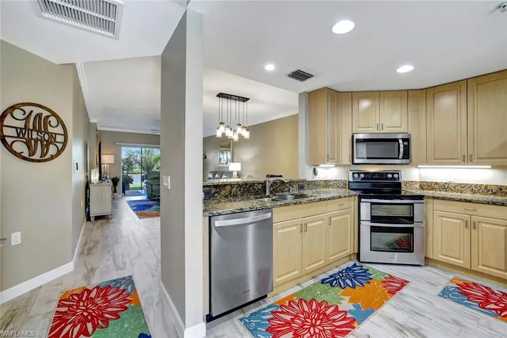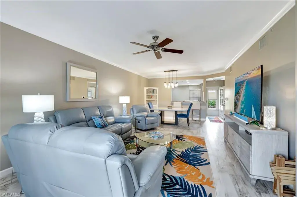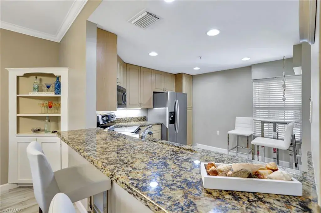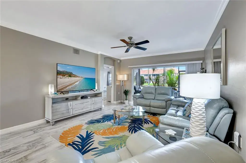 Welcome to your serene lakeside retreat in Bridgewater Bay where you will bask in relaxation on your waterfront lanai! This elegant 2-bedroom, 2-bath condo boasts timeless upgrades and a sought-after location. Step inside to discover wood-look tile floors that flow seamlessly through the open layout, showcasing modern touches like crown molding and large, contemporary baseboards. The kitchen is a chef’s delight, featuring granite countertops, stainless steel appliances, and custom cabinetry. Each bedroom is enhanced with custom closets, maximizing space and adding a touch of luxury. With storm shutters, you will enjoy peace of mind and with a detached one-car garage, you’ll have both convenience and extra storage. Bridgewater Bay is a beautiful, gated community which offers resort-style amenities, including a community pool, lap pool, fitness center, tennis courts, bocce, basketball, and a tot park, ensuring endless fun and physical pursuits. Conveniently located, you’ll have quick access to all of Naples’ beaches, dining, shopping, and entertainment destinations, including Mercato, Artis, Waterside Shops, and the iconic 5th Ave South in Olde Naples, which is just a short drive away. Don’t miss the chance to experience Naples living at its best. Schedule your showing today!