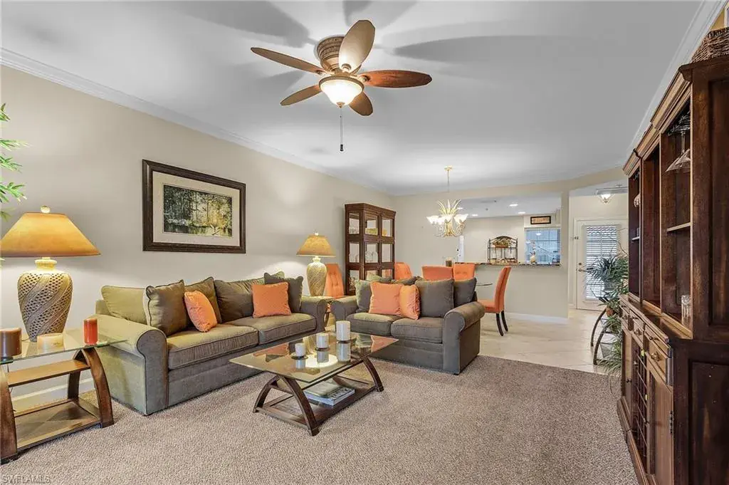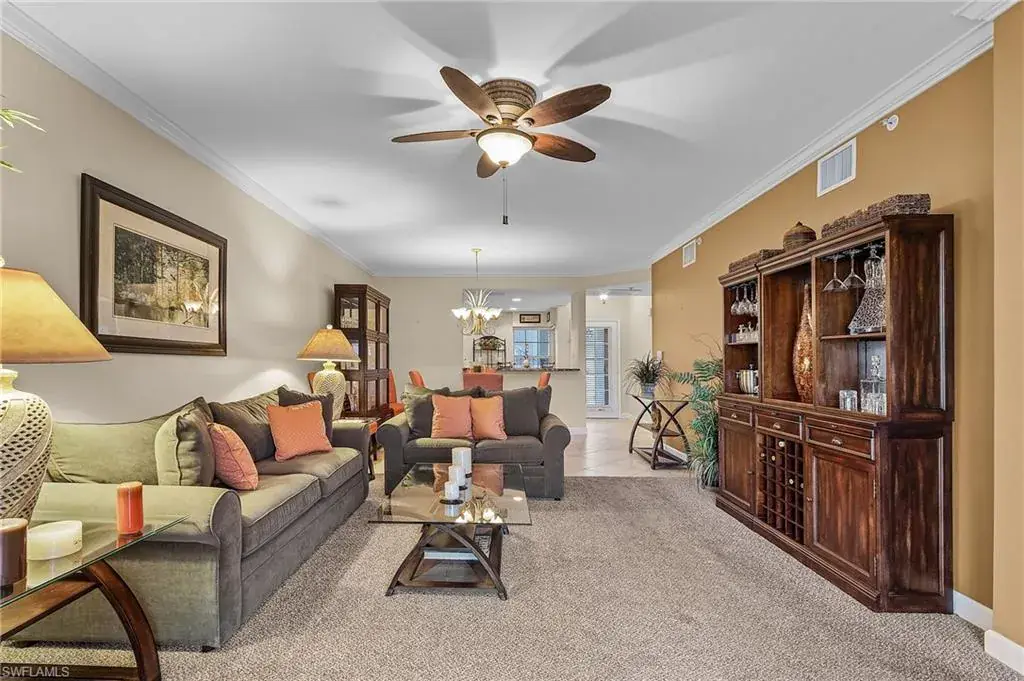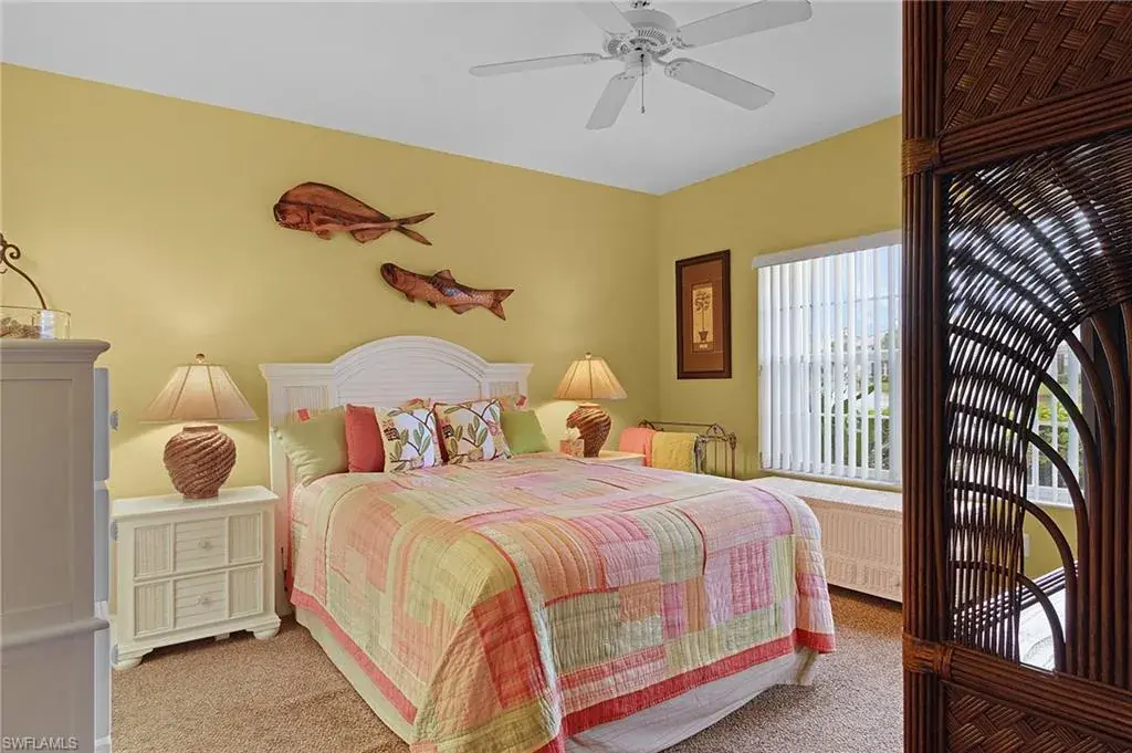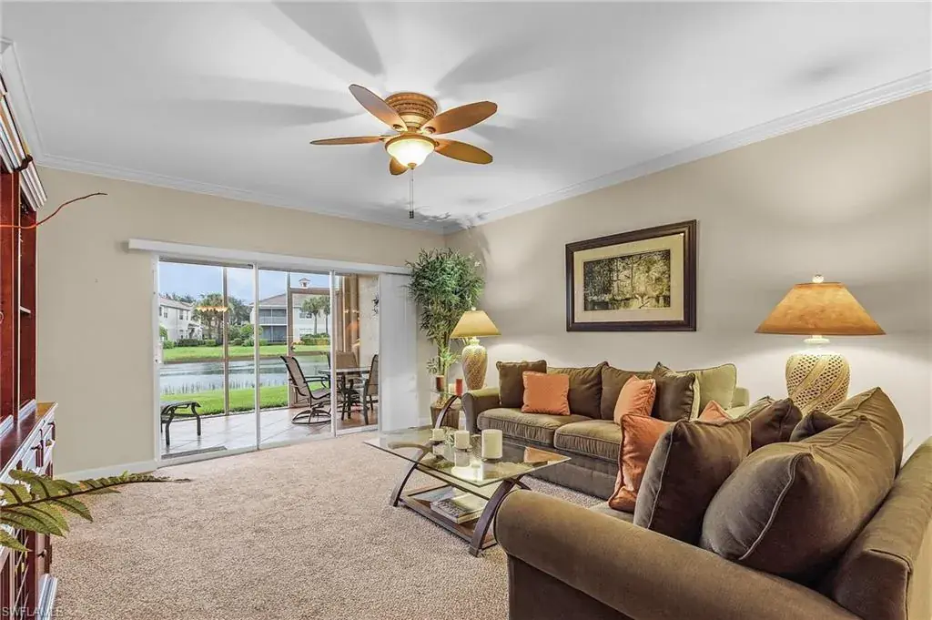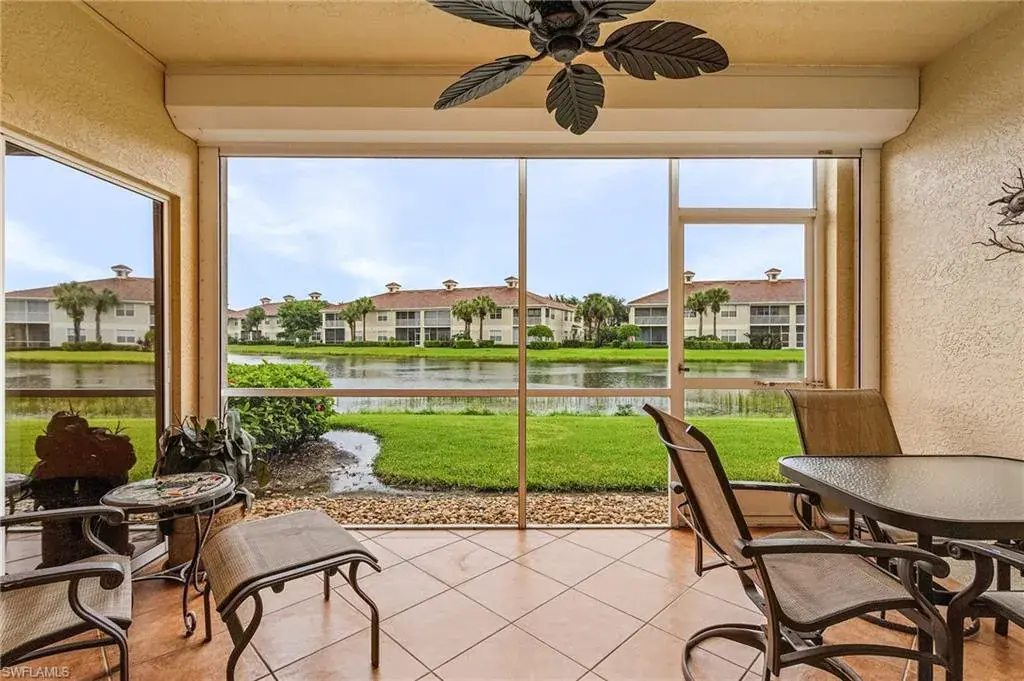 Paradise awaits you at this beautiful lake view 2 bedroom 2 bathroom home in the beautiful community of Bridgewater Bay. This first floor one owner condo features a spacious split floor plan and detached garage, with a beautiful lake view. The lanai rear exposure faces North and overlooks a beautiful lake always filled with many birds to keep you entertained while enjoy the outdoors. The spacious lanai also has electric roll down hurricane shutters. Bridgewater Bay offers many amenities such as: a large Clubhouse with fitness center including a sauna, a library, a community room with a catering kitchen, a billiard room, a resort-style heated pool and spa, a lap pool, a basketball court, a playground, tennis courts, pickleball courts, and a putting green. Bridgewater Bay is conveniently located close to many shopping centers, restaurants, and grocery stores. Bridgewater Bay is only 5 miles to Naples beautiful white sandy beaches. Schedule your private showing today.