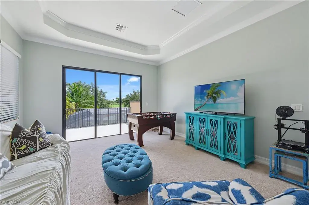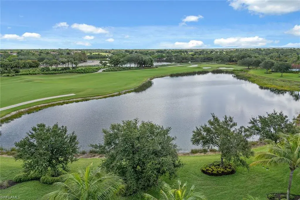 Are you searching for a home with expansive, unobstructed views of the lake and golf course, framed by lush tropical landscaping and designed for elevated coastal living? In the desirable Runaway Bay enclave of Fiddler’s Creek, this rarely available, two-story Lantana floor plan offers a spacious and refined lifestyle with four bedrooms, two dens, a family room, a bonus room that can serve as a fifth bedroom, three full baths and two half baths. This gracious single-family residence includes a side-entry three-car garage with epoxy flooring, a tankless water heater, all impact-resistant doors and windows, and a newer two-zone HVAC system for optimal comfort. A wide brick-paved driveway leads to a welcoming entrance, where travertine flooring spans the main level and is accented by tray ceilings, crown molding and arched walkways. The gourmet kitchen is a standout, featuring a center island, bar seating, pantry, tile backsplash, recessed lighting and stainless steel appliances, including a natural gas range with hood, built-in microwave, wall oven, dishwasher and a French-door refrigerator with icemaker. The kitchen opens to the family room and breakfast area, where a large corner window frames peaceful views of the lanai and pool. Adjacent, the living room transitions seamlessly to the screened outdoor space through sliding glass doors, creating an indoor-outdoor living experience. The formal dining room provides a sophisticated setting for entertaining. Go outside to the private lanai, a retreat with a heated pool and spa, and a tranquil waterfall feature. The outdoor kitchen includes a stainless steel grill, mini refrigerator, sink and convenient pool bath, all within a picture screen enclosure that maximizes the spectacular views. A den with French doors on the main level offers flexibility for a private office or study. The primary suite is a sanctuary, offering serene views, lanai access, dual walk-in closets, and a luxurious en-suite bath with dual vanities, full-width mirrors, a walk-in shower and a separate soaking tub. A wooden staircase leads to the upper level, where three guest bedrooms and a flexible bonus room await. This upper bonus room—with a kitchenette and balcony access overlooking the lake and golf course—can function as a media room, game room or fifth bedroom. Two additional baths serve the upstairs rooms—one with dual vanities and a walk-in shower, the other with a shower-tub combination. A second den, thoughtfully designed above the foyer in 2021, offers an additional private office or flex space. Completing the home is a well-equipped laundry room with washer, dryer, utility sink and upper cabinetry. Enjoy exclusive access to the award-winning Club & Spa with resort-style pools, fine/casual dining, a state-of-the-art fitness center, spa, sauna, tennis, pickleball, bocce and a full calendar of social activities. Optional memberships are available.