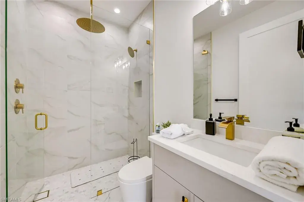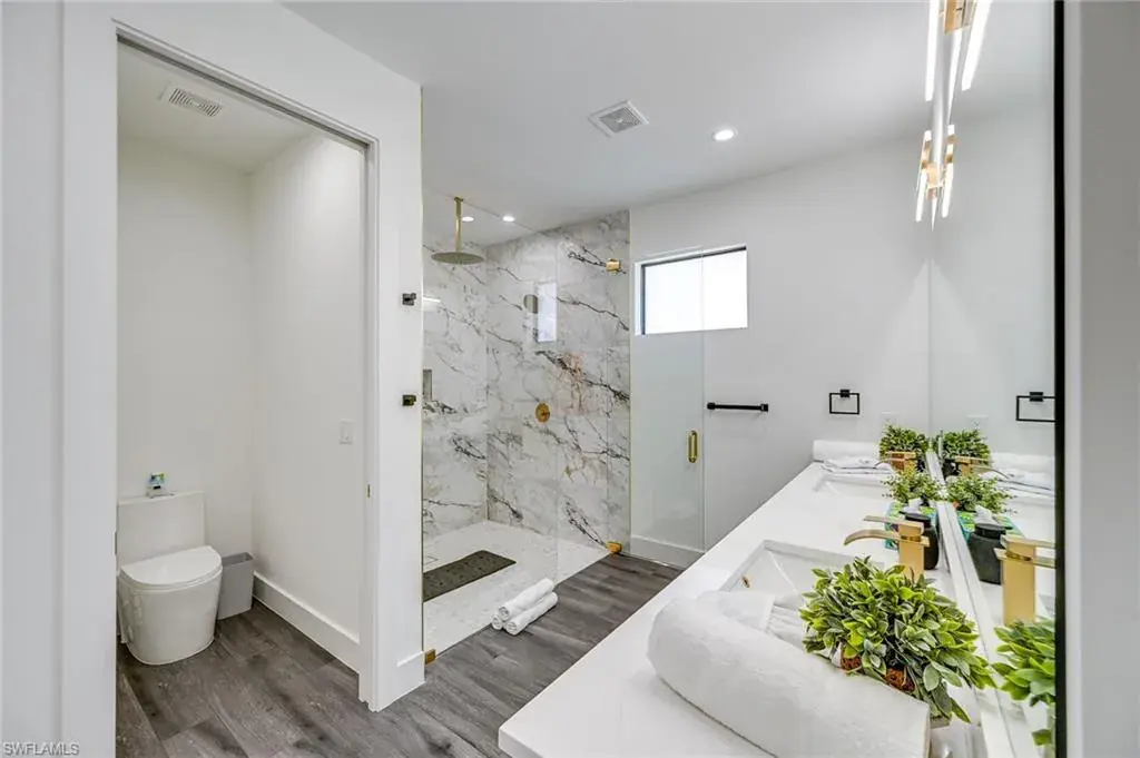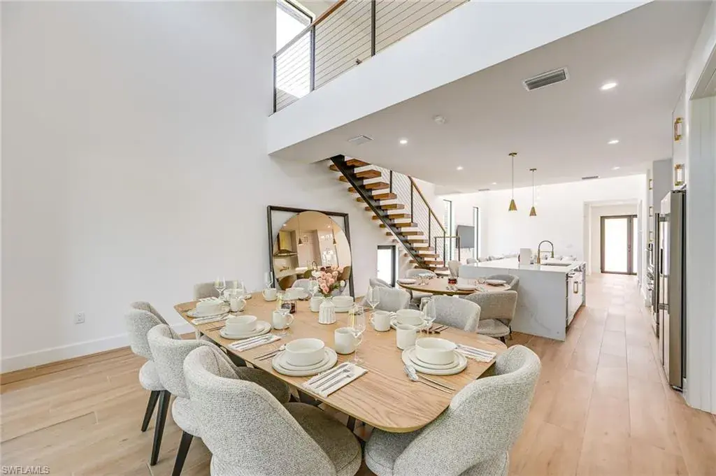 An Exceptional opportunity to own a custom home in the heart of Naples’ Bayshore District. This newly custom built home offers an incredible opportunity to invest in one of the most sought after and rapidly appreciating markets in Naples. Located 5 Minutes from 5th Ave, walking distance to Celebration Park and Rebeccas as well as 5 minutes from the Botanical Gardens. As you enter this home you will instantly be greeted by soaring 20-foot ceilings and an abundance of natural light flowing through expansive windows. The open-concept kitchen is an entertainer’s dream, featuring a striking waterfall island, top-of-the-line stainless steel appliances, and an inviting view of the pool and canal. The well-thought-out design includes a spacious master suite on the first floor, complete with his and her California closets and a luxurious master bath. A second-floor laundry room adds convenience to this home’s thoughtful layout. Additional features include two single-car garages, a mudroom, and a powder room on the first floor. Upstairs, a floating staircase leads to a large entertainment room and a second master bedroom, also with California closets and floor-to-ceiling tiles. Two additional generously sized bedrooms complete the upper level, each offering ample closet space and abundant natural light. Outdoor living is equally impressive, with a serene and tranquil setting that takes full advantage of the property’s prime location. Don’t miss this incredible opportunity to secure your place in one of Naples’ most exciting emerging markets.