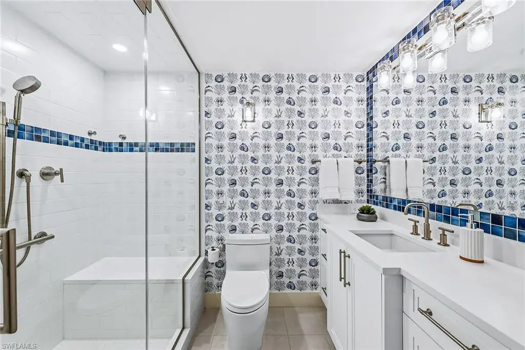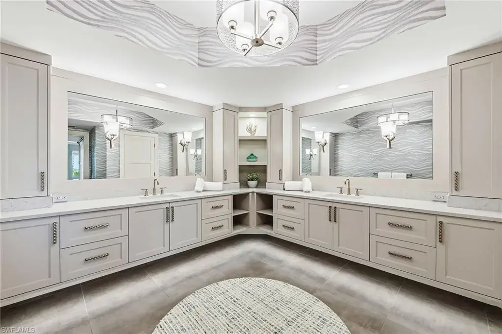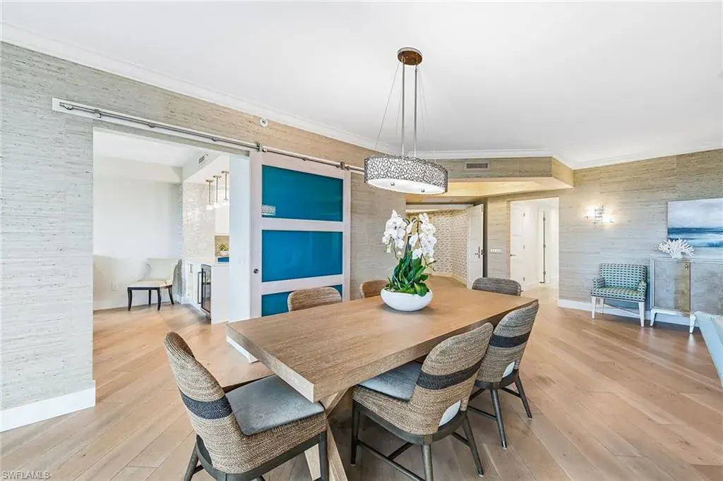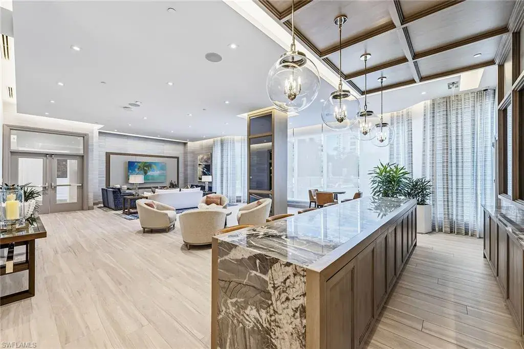 In the heart of Bay Colony, Naples exclusive beachfront enclave, this elegant residence in Salerno captures the essence of refined coastal living. Every detail has been carefully considered in this furnished three-bedroom, three-bath residence, reflecting timeless sophistication and quiet luxury throughout its spacious design. Wide-plank white oak flooring unites the open, light-filled living spaces, while designer wall treatments and bespoke finishes lend warmth and character. The great room unfolds to a wrap-around lanai through an expansive wall of sliding glass doors, framing tranquil views and the golden hues of Naples celebrated sunsets. The kitchen has been meticulously reimagined with solid-wood cabinetry, quartz countertops, and a professional suite of Wolf and Sub-Zero appliances, offering beauty and performance. The private primary suite serves as a tranquil sanctuary, featuring a spa-inspired bath and a custom-fitted walk-in closet. Two additional bedrooms, each with an elegantly updated bath, provide comfort and privacy for guests. In addition, a private elevator foyer and two parking spaces in the under-building garage provide convenience and privacy. Within Salerno, residents enjoy beautifully renovated common spaces, a resort-style pool and sun deck, and a well-appointed fitness center. Beyond the building, the Bay Colony experience unfolds with unrivaled privileges such as a private beach club with elegant dining, beachfront pool and full-service beach attendants, as well as a dedicated racquet center. A short distance away, The Ritz-Carlton Naples extends five-star dining options, while Pelican Bay invites exploration with its scenic recreational and biking paths, two beachfront restaurants, and more. This residence offers a rare opportunity to live in one of Naples desired coastal communities, where privacy, elegance and a world-class lifestyle come seamlessly together.