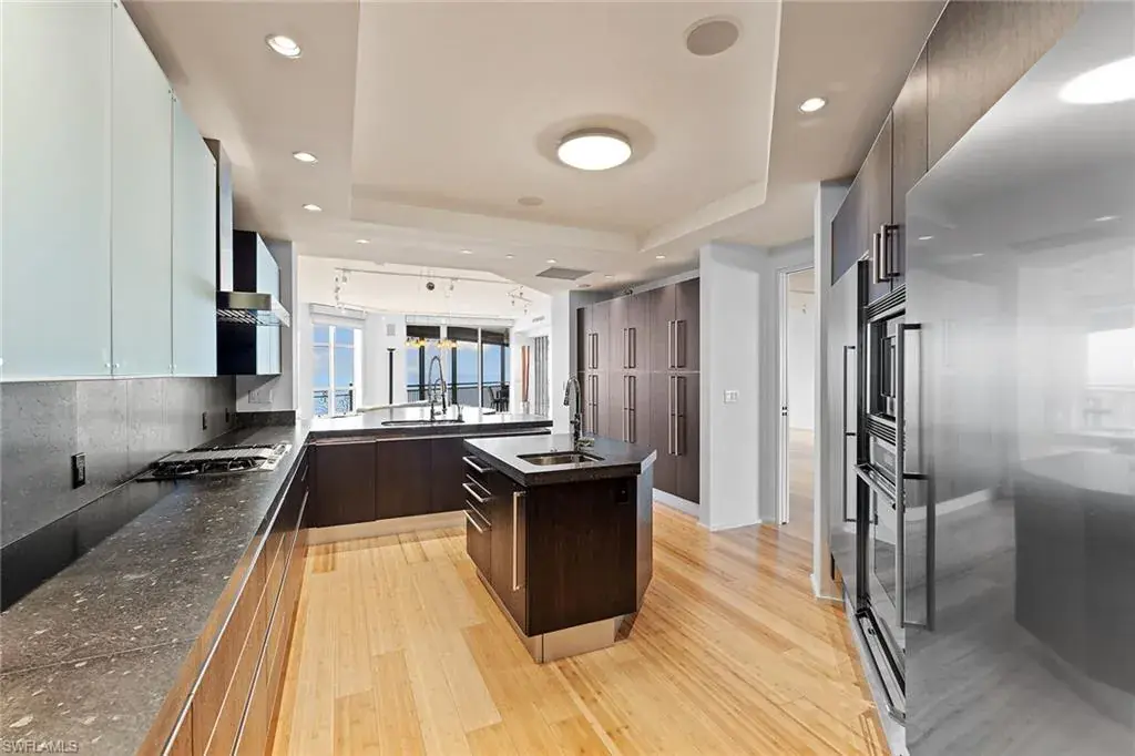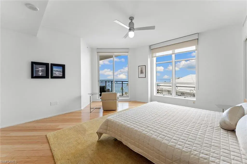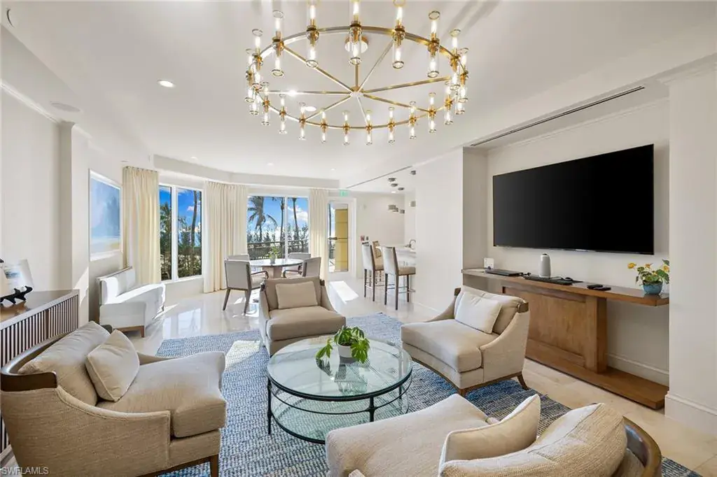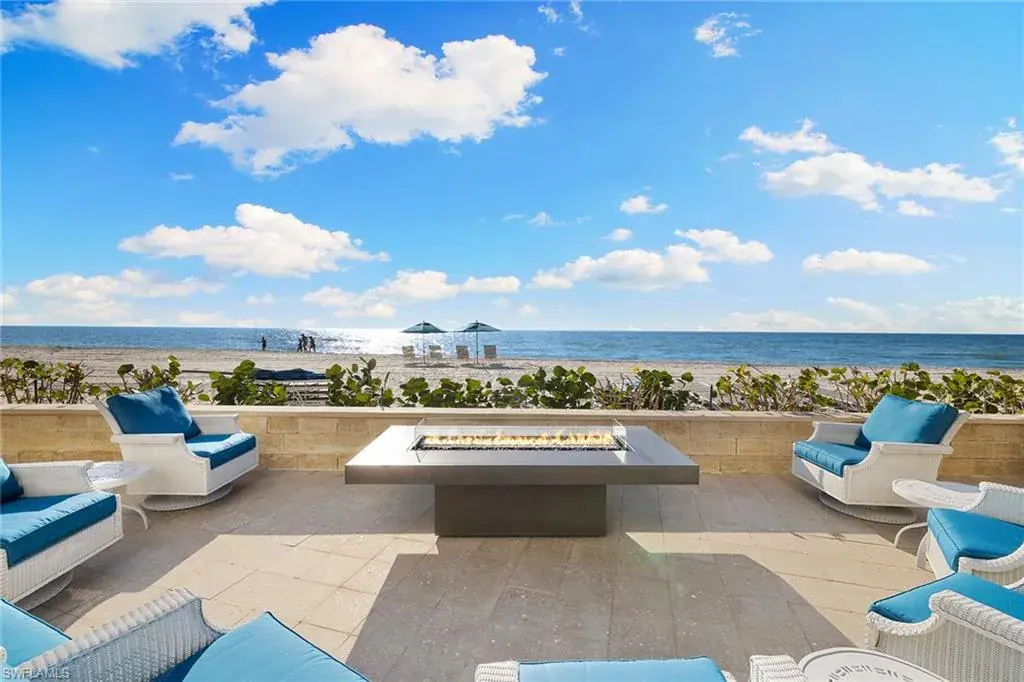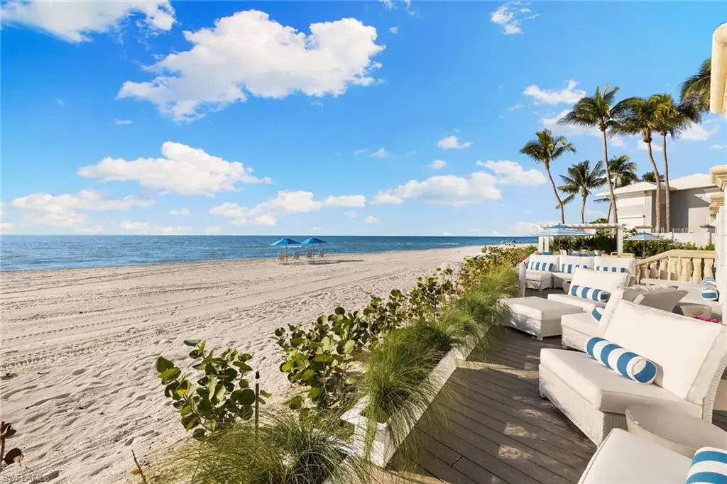 Experience breathtaking views of the Gulf of Mexico’s turquoise waters by day and the city’s sparkling lights by night from this exquisite beachfront Sancerre condominium. Spanning 4,306 square feet, this residence combines refined modern aesthetics with warm, contemporary elegance. The spacious four-bedroom layout includes a grand living and dining area, bathed in natural light, opening onto a beachfront lanai that creates a seamless indoor-outdoor living experience. The primary suite offers a tranquil retreat with direct lanai access, while three additional guest suites, each with a private bath, provide a luxurious space for family and friends. Thoughtful design touches include bamboo flooring and Bartels wood doors and hardware, adding to the home’s sophistication. Additional features include two parking spaces, one fully air-conditioned indoor spot and one outdoor, along with in-garage and air-conditioned storage. Residents enjoy exclusive amenities such as concierge-floor guest suites, massage and exercise rooms, a private boardroom, a beachside pergola with a grilling area and a spacious swimming pool. Sancerre’s prime location, just south of Doctor’s Pass in Naples, offers easy access to the world-class shopping and dining of Old Naples and the upcoming Naples Four Seasons Resort. With only 23 residences and an unparalleled suite of concierge services, Sancerre redefines exclusive luxury living in Naples.