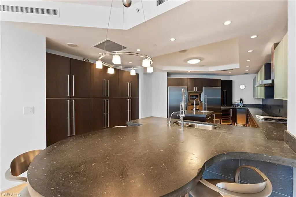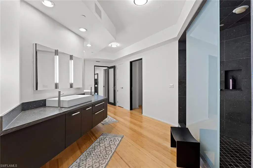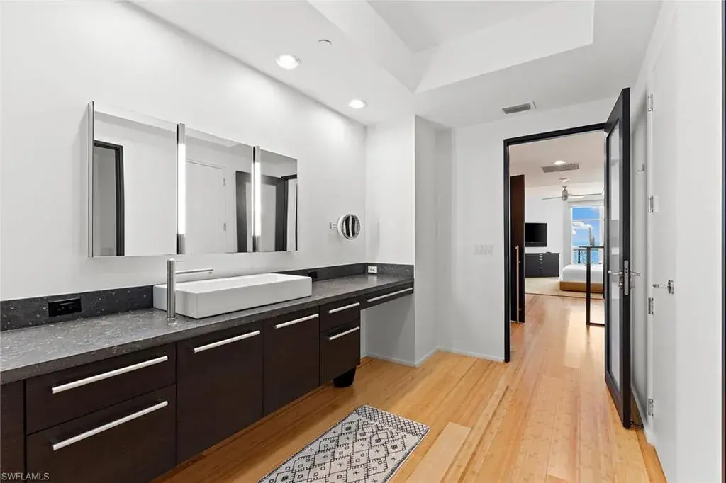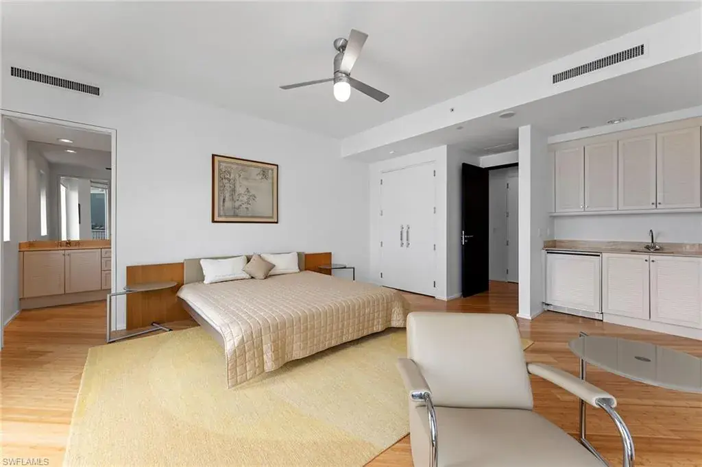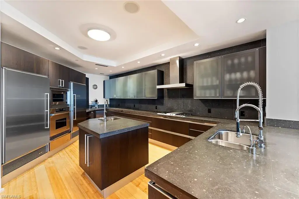 Experience breathtaking views of the Gulf of Mexico’s turquoise waters by day and the city’s sparkling lights by night from this exquisite beachfront Sancerre condominium. Spanning 4,306 square feet, this residence combines refined modern aesthetics with warm, contemporary elegance. The spacious four-bedroom layout includes a grand living and dining area, bathed in natural light, opening onto a beachfront lanai that creates a seamless indoor-outdoor living experience. The primary suite offers a tranquil retreat with direct lanai access, while three additional guest suites, each with a private bath, provide a luxurious space for family and friends. Thoughtful design touches include bamboo flooring and Bartels wood doors and hardware, adding to the home’s sophistication. Additional features include two parking spaces, one fully air-conditioned indoor spot and one outdoor, along with in-garage and air-conditioned storage. Residents enjoy exclusive amenities such as concierge-floor guest suites, massage and exercise rooms, a private boardroom, a beachside pergola with a grilling area and a spacious swimming pool. Sancerre’s prime location, just south of Doctor’s Pass in Naples, offers easy access to the world-class shopping and dining of Old Naples and the upcoming Naples Four Seasons Resort. With only 23 residences and an unparalleled suite of concierge services, Sancerre redefines exclusive luxury living in Naples.