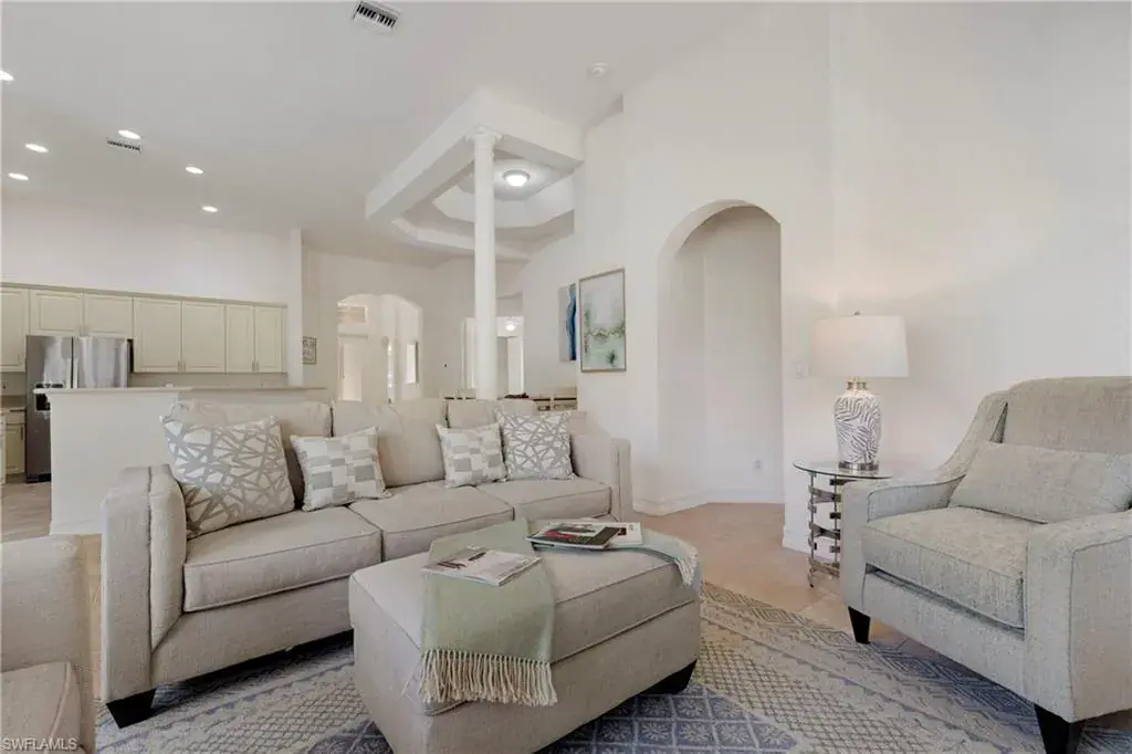 Fantastic opportunity to own a single family home in a great location in Naples with a large yard big enough for a pool and your pets. Fresh new paint on exterior!! This three bedroom two bath home also has a brand new roof! Open floor plan with a large kitchen overlooking the family room and dining room. Plenty of cabinet and counter space plus new stainless steel appliances. Fresh paint through out, new carpet in bedrooms and an extended screened in lanai overlooking part of the 100 acre protected Audubon preserve. Location is within minutes drive to four beautiful white sandy beaches, shopping, restaurants and every other amenity imaginable. Enjoy resort pools, a cabana bar where you can enjoy lunch and a cold beverage, happy hours, bocci and pickle ball, fitness center with locker rooms, sauna, a restaurant for special occasions and holidays plus Friday night dinners, walking paths, a kids play area all in a very social environment. There is also an optional tennis membership that offers 12 Har Tru tennis courts, a USTA teaching pro for clinics and private lessons and team play at a very reasonable monthly rate.