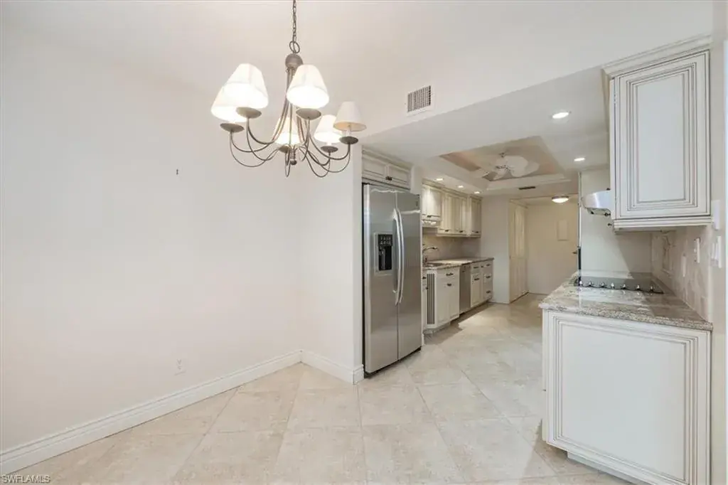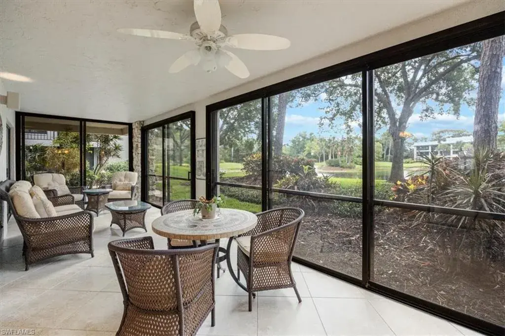 Exceptional value in Pelican Bay! Experience effortless coastal living in this beautifully appointed ground-floor end unit at the Sanctuary at Pelican Bay. Spanning over 2,000 square feet, this spacious residence offers generously sized bedrooms and 3 full bathrooms, thoughtfully designed for both comfort and privacy. Step inside to discover an open, flowing layout that seamlessly connects the expansive living and dining areas to a glass-enclosed lanai—perfect for relaxing or entertaining while enjoying the peaceful, lushly landscaped surroundings. The updated kitchen features sleek countertops, modern appliances, and ample cabinetry, complemented by neutral tile flooring that creates a fresh, clean design palette throughout. The serene primary suite offers a spacious walk-in closet, dual vanities, and a beautiful tiled walk-in shower. Each guest room has its own dedicated full bath, ensuring convenience and privacy for visitors. Residents of Sanctuary enjoy access to a heated pool and spa, lush tropical landscaping, and an inviting outdoor dining area ideal for gathering with friends and neighbors. Just a short stroll away, the Pelican Bay beach tram provides effortless access to the private beaches and exclusive amenities of the community.