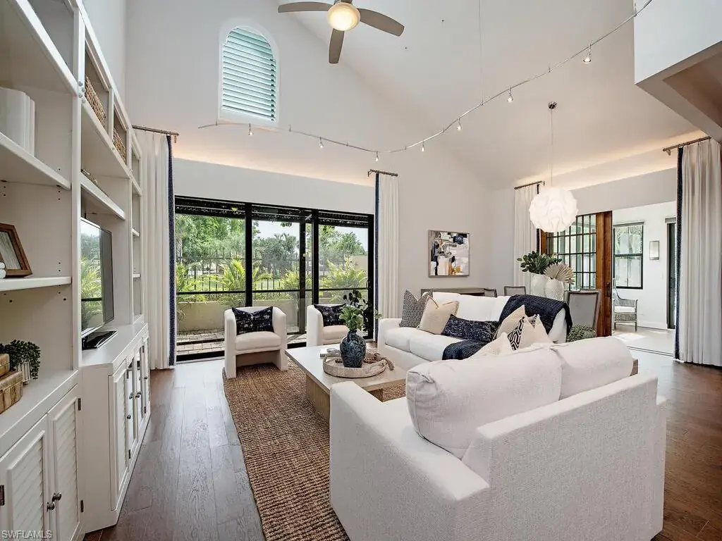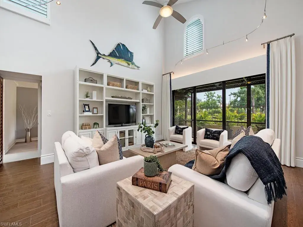 This upgraded Pelican Bay detached villa is a stunning gem located within Sand Pointe, a charming community of 21 single-family villas. Soaring ceilings reach a height of 20 feet & the open floor plan spans an impressive 2585 SF of interior living with 3 bedrooms, a den/sunroom, 2.5 bathrooms & a 2-car garage. A fabulous 2525 SF private backyard courtyard with lake views, a salt-water pool, a screened-in area & lush landscaping provides a serene retreat. Situated on elevated ground within the low-risk FEMA Zone X, this home did not flood during Hurricane Ian. With predominantly southern & slightly western exposure, the villa is soaked in an abundance of natural light throughout the year. Impeccably maintained and thoughtfully updated with several enhancements including 3 Tesla Powerwall batteries for emergency power. As a resident of Pelican Bay, you’ll enjoy 3 miles of beach to explore and exclusive access to 2 private beach clubs complete with restaurants and chair/umbrella service, kayaks/sailboats, a community center with events, classes, an art studio, a full-service fitness center, wellness center, 18 tennis courts & 20 new pickleball courts coming soon.