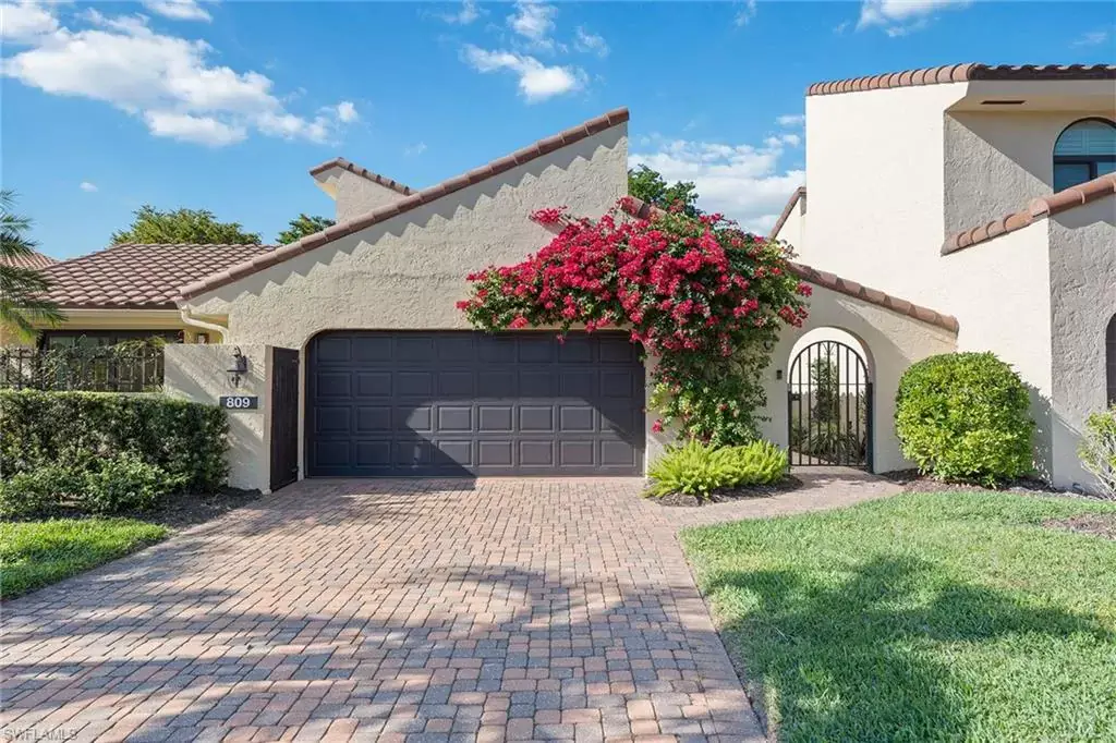 A soaring ceiling and multitude of windows illuminate this charming renovated villa in the Sand Pointe neighborhood of Pelican Bay. The beautiful kitchen was opened up to the main living area with stainless steel appliances, custom wood cabinetry and quartzite countertops. The main floor primary suite has a large shower, soaking tub, dual vanities and is completely private from the guest suite. This peaceful setting offers a tropical garden with landscape lighting and a pool, perfect for a seamless indoor-outdoor Florida lifestyle. New roof (2021), hurricane-impact sliding doors and windows and landscape lighting are just a few of the special features. Pelican Bay villas provide a great alternative to condominiums with private pools, attached garages and low fees while still being very low maintenance. Enjoy exclusive amenities such as two private beach pavilions (only the South Beach is currently open), full-service fitness center, professionally staffed tennis facilities and more. Excellent schools and location close to Waterside Shops and Mercato.